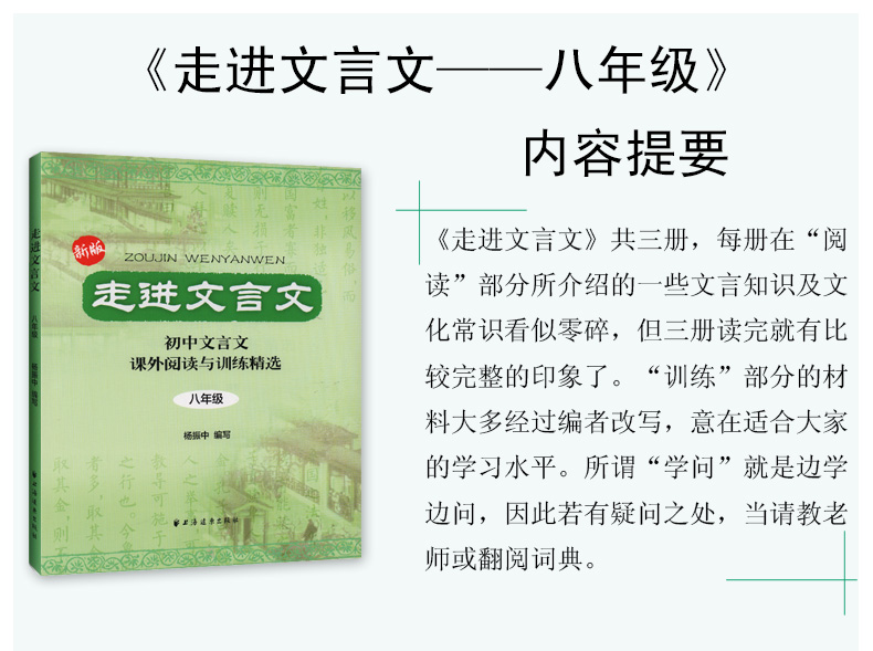 新版走进文言文(8年级初中文言文课外阅读与训练精选) 语文 中学初二教材教辅 上海远东出版社 杨振中
