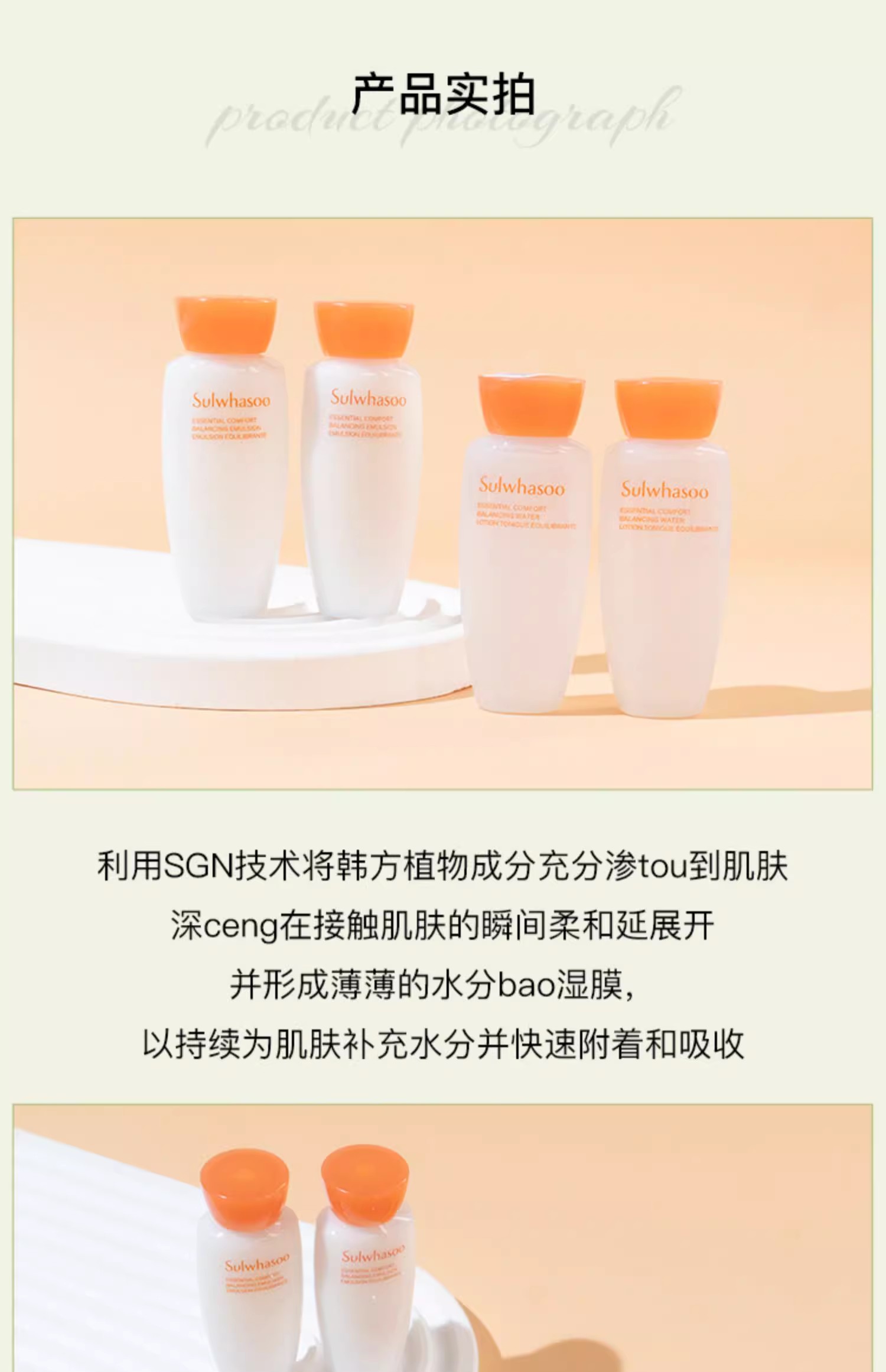 【超值满减】sulwhasoo雪花秀 滋阴水乳中小样各15ml 补水保湿水油平衡去黄改善肤色