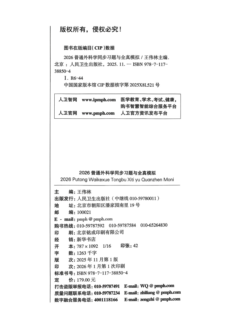 书名:2026普通外科学同步习题与全真模拟