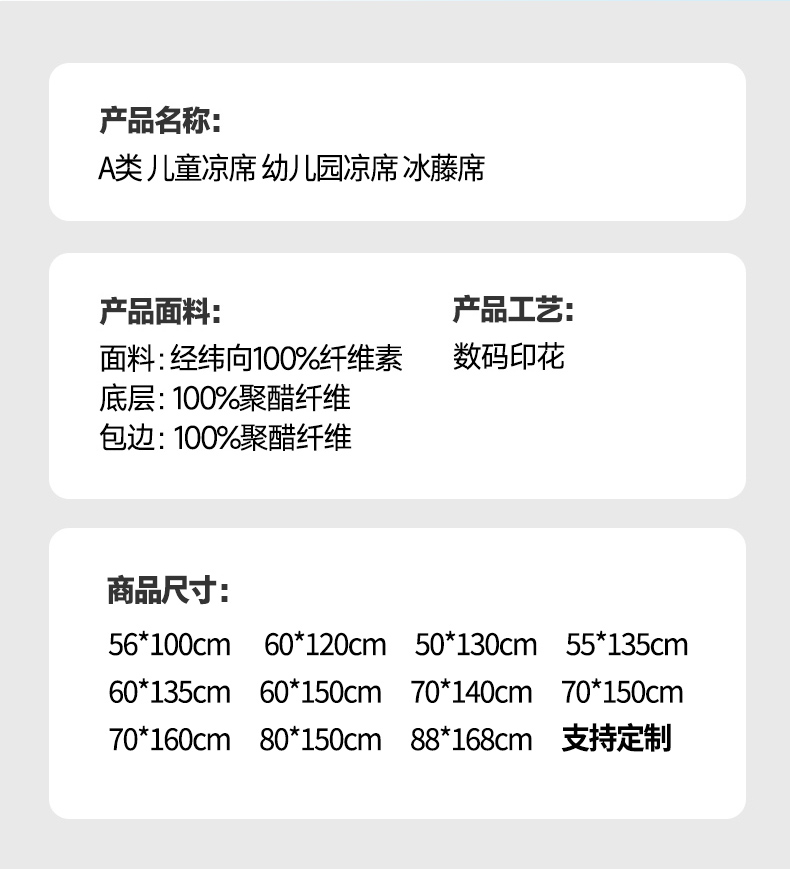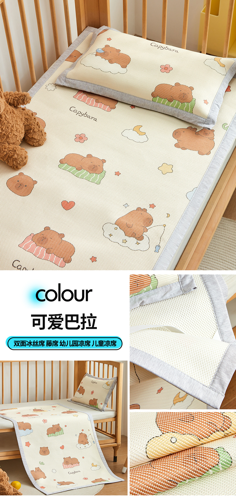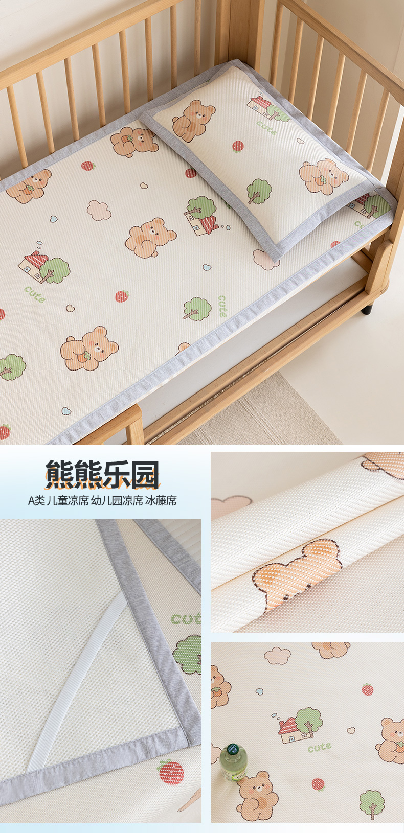 A类儿童冰藤软席 幼儿园专用凉席两件套
