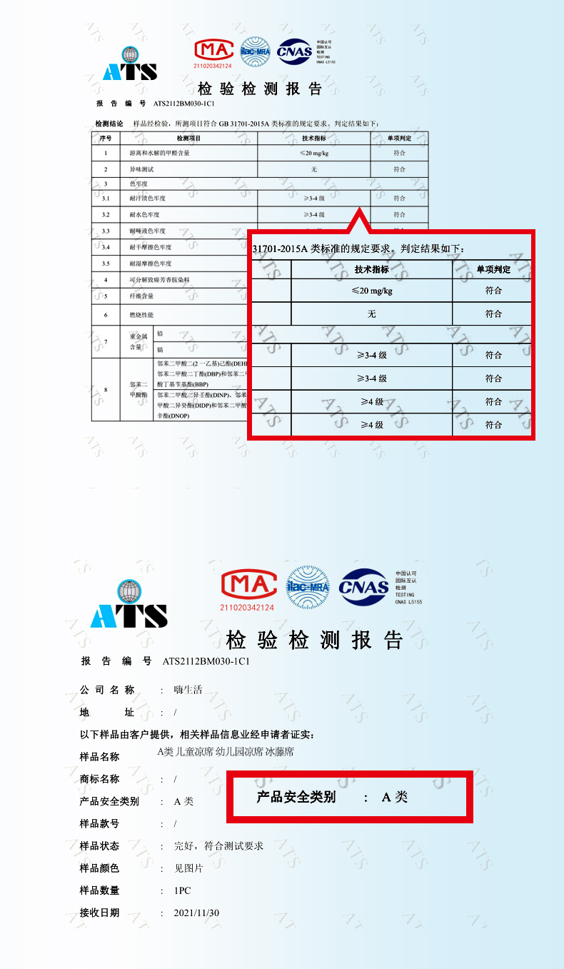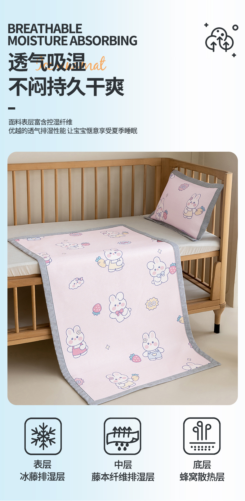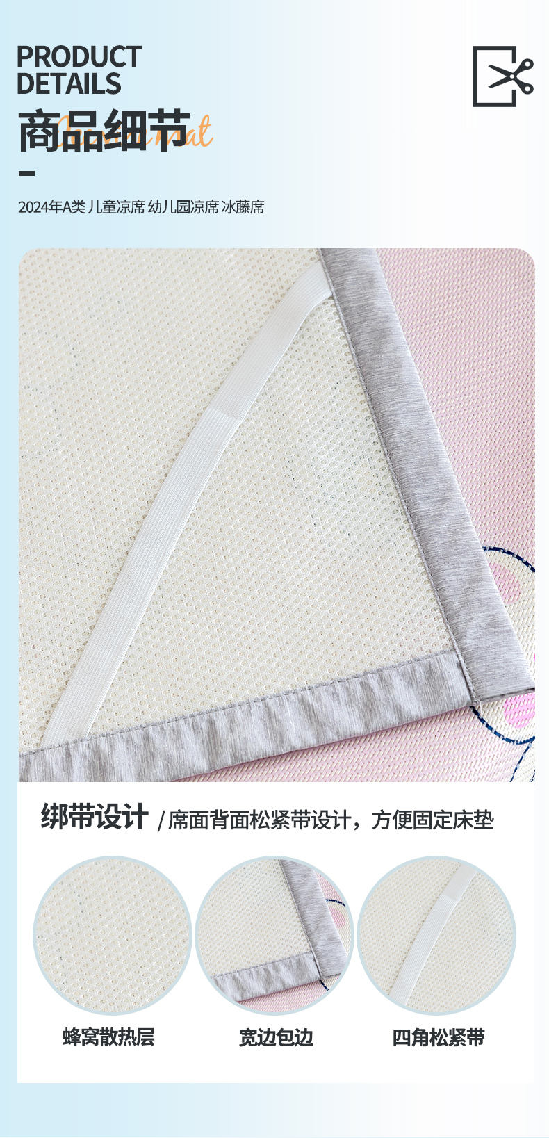 A类儿童冰藤软席 幼儿园专用凉席两件套
