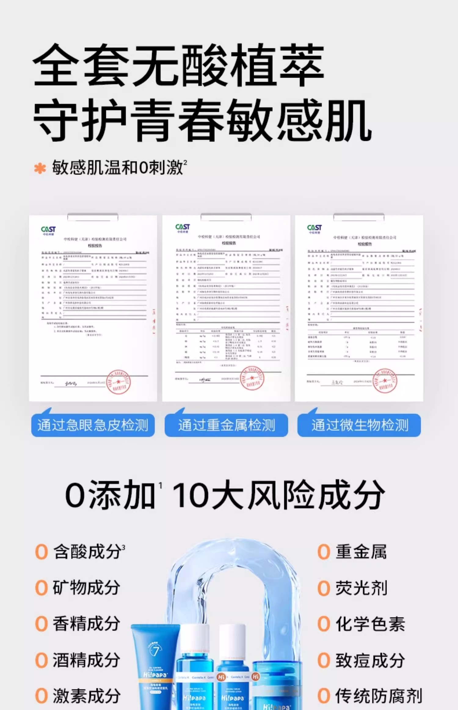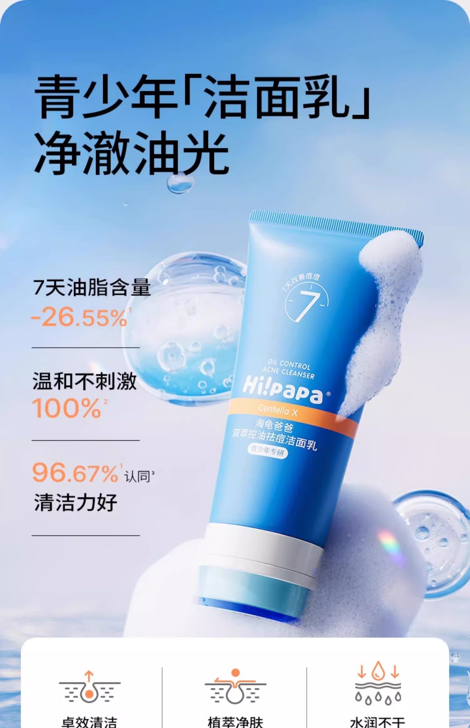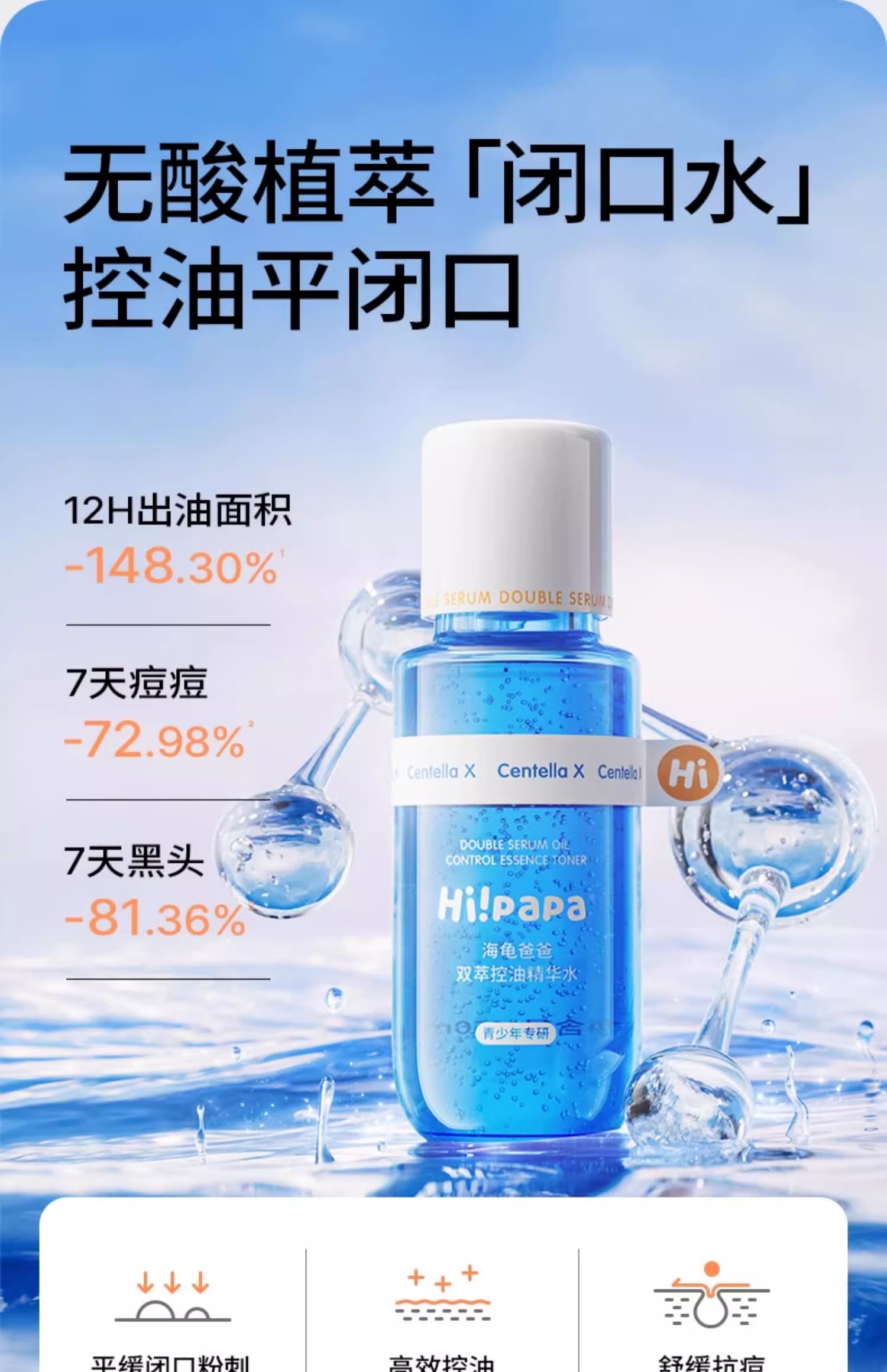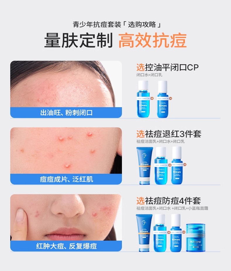 【品牌直发】Hi!papa海龟爸爸青少年祛痘水乳护肤套装男学生青春期女孩控油儿童洗面奶