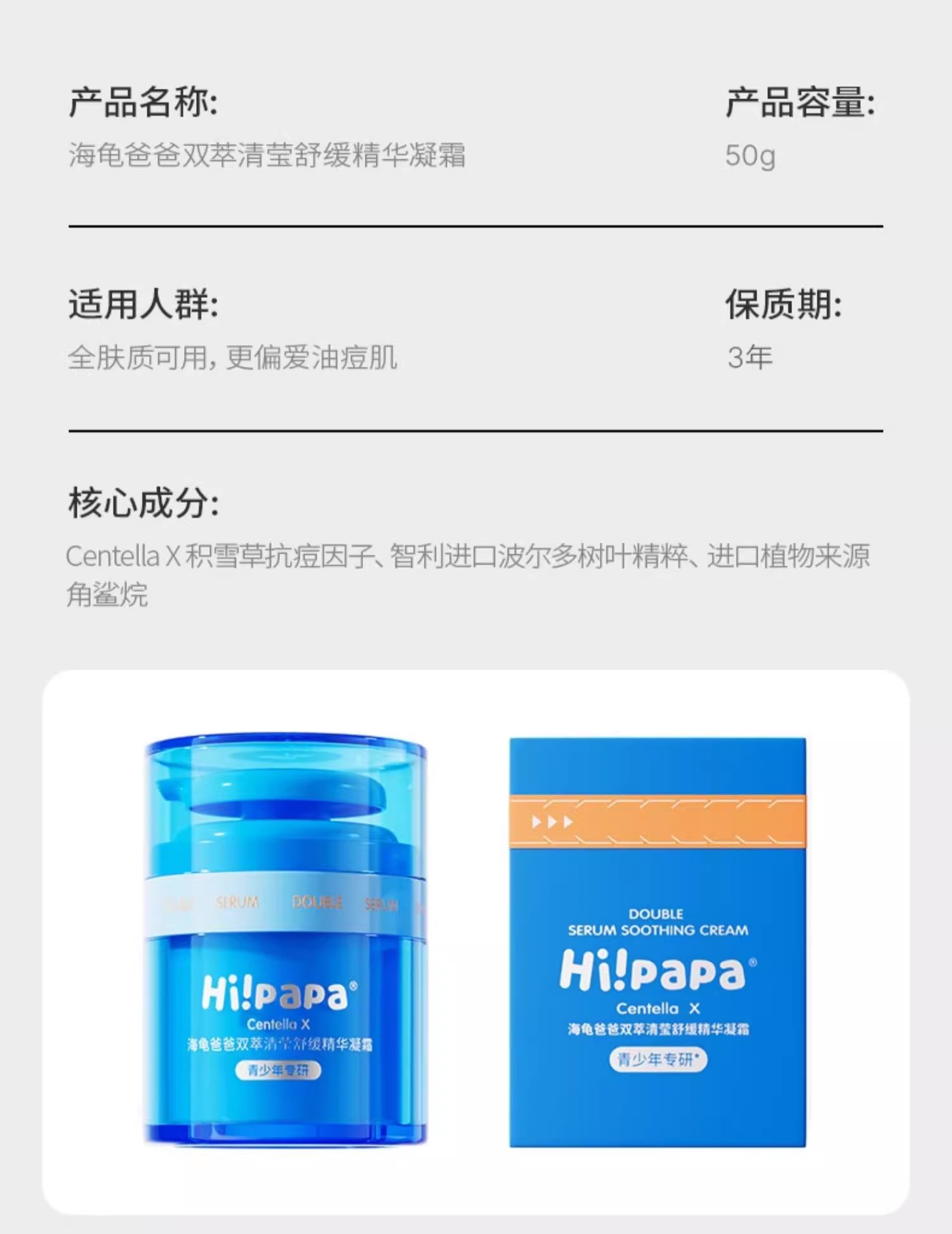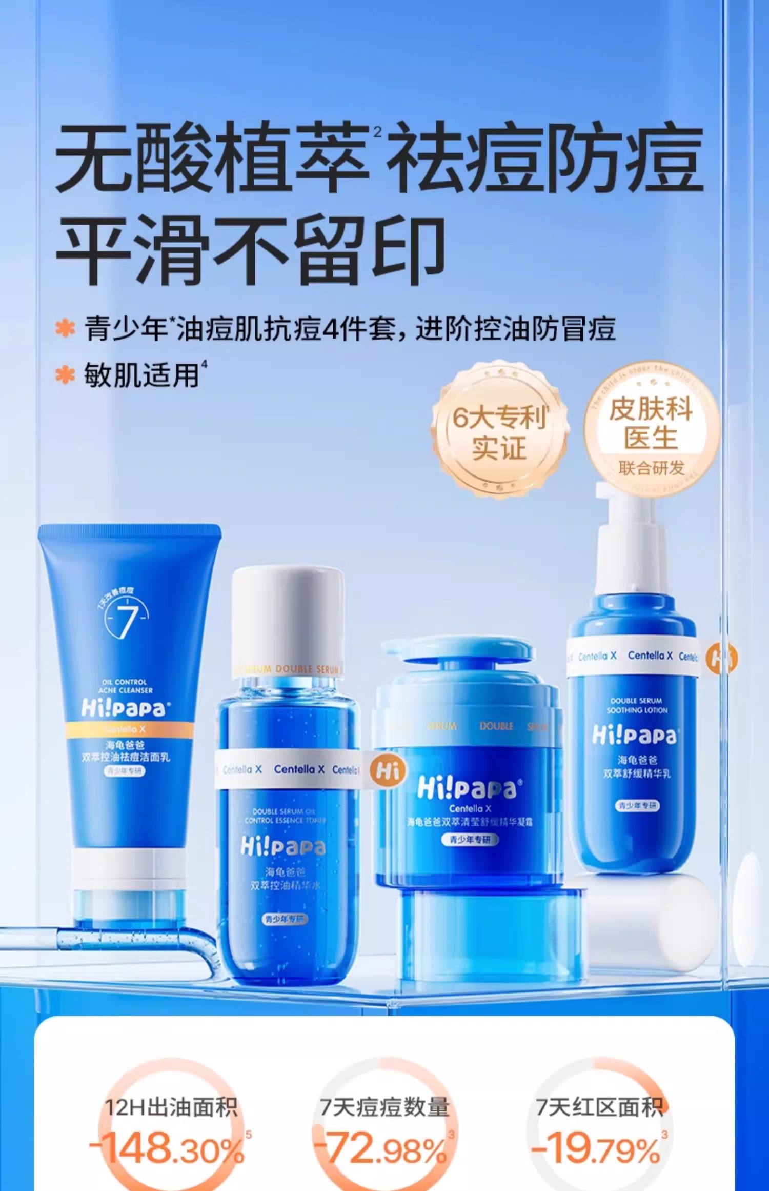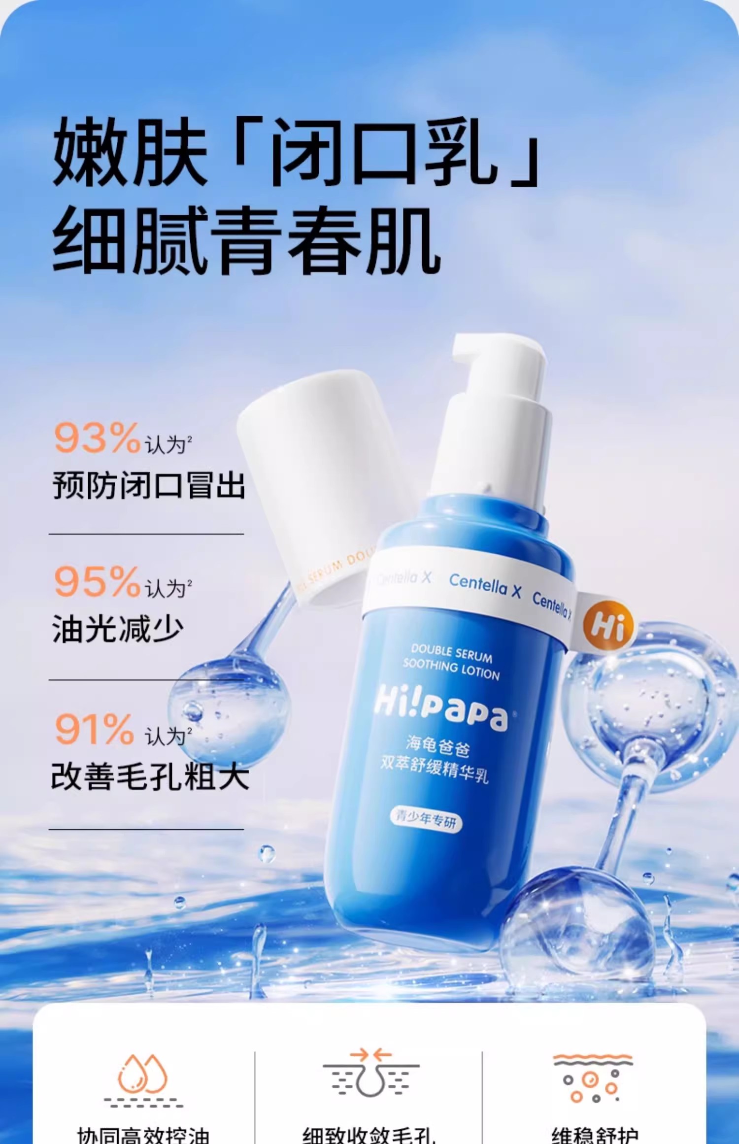 【品牌直发】Hi!papa海龟爸爸青少年祛痘水乳护肤套装男学生青春期女孩控油儿童洗面奶