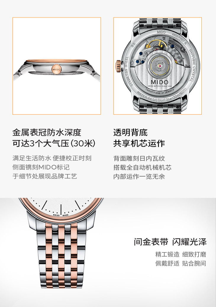 | 机芯 | 自动机械 MIDO1192 瑞士天文台认证 | 表径 | 33 mm |