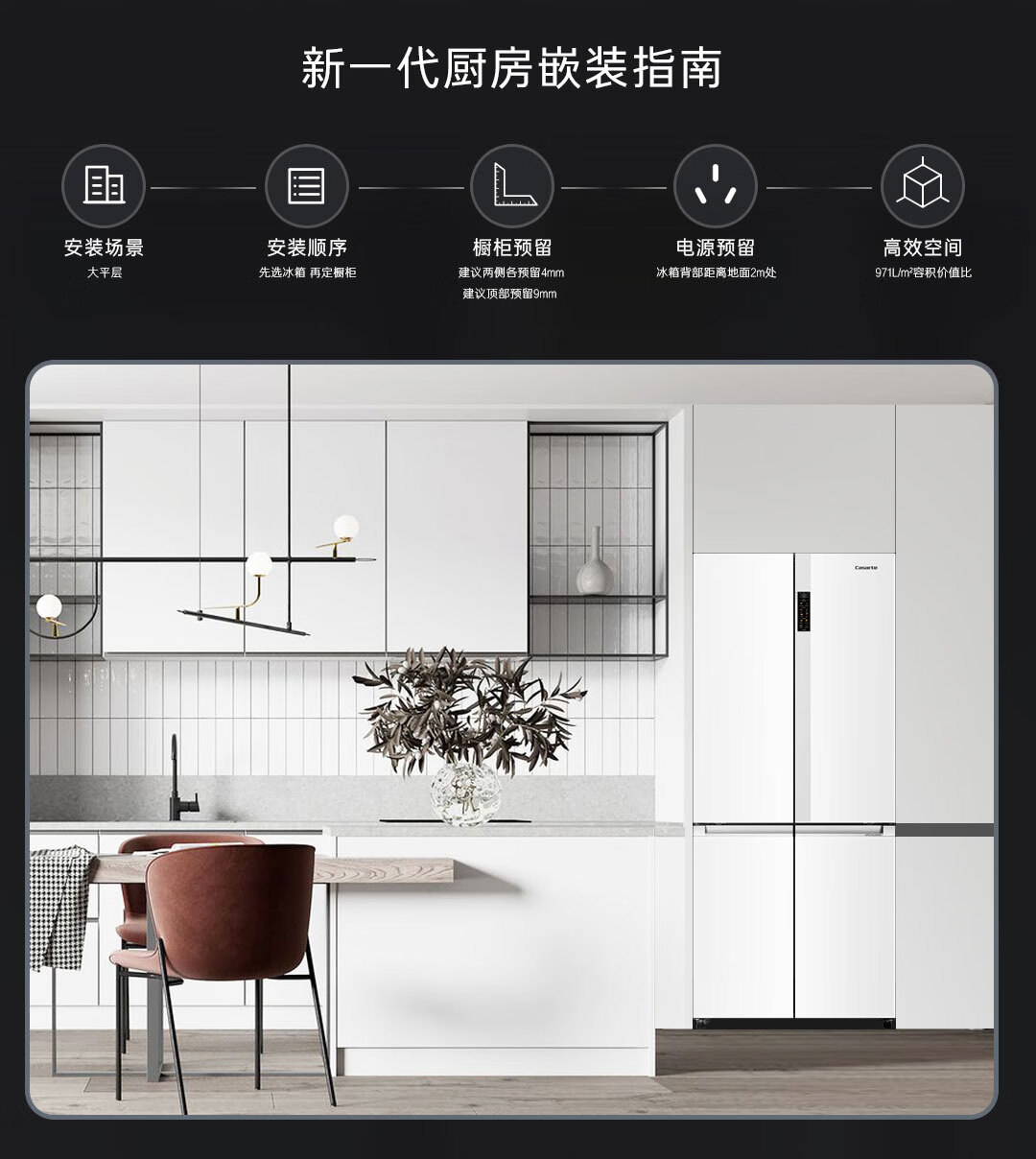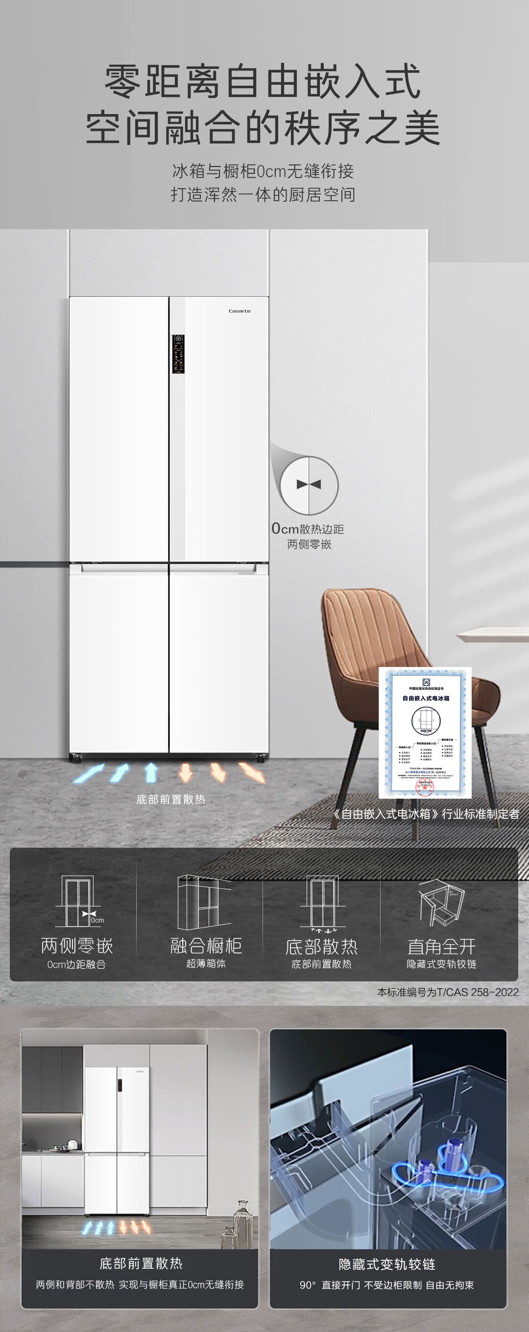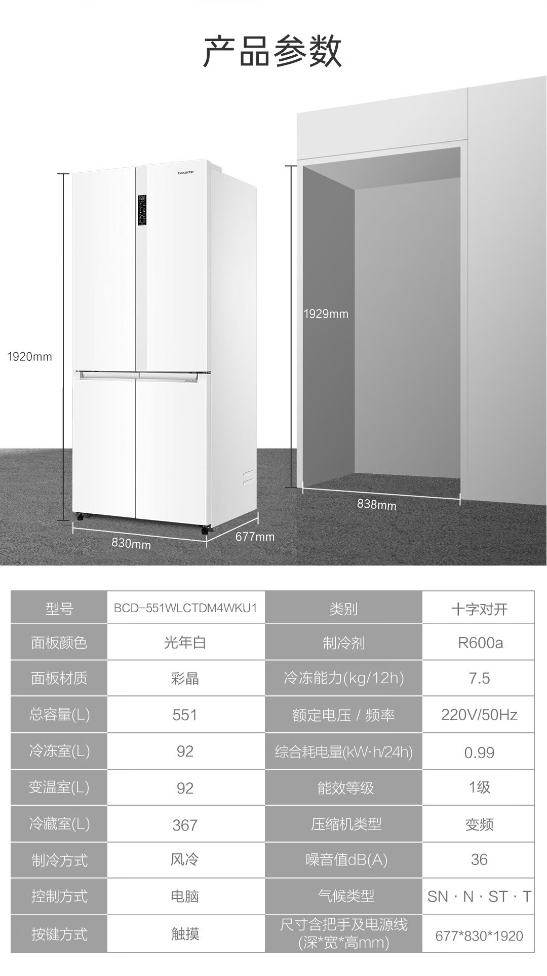 卡萨帝(Casarte)551升零距离自由嵌入式十字四开门超薄白色电冰箱一级能效BCD-551WLCTDM4WKU1