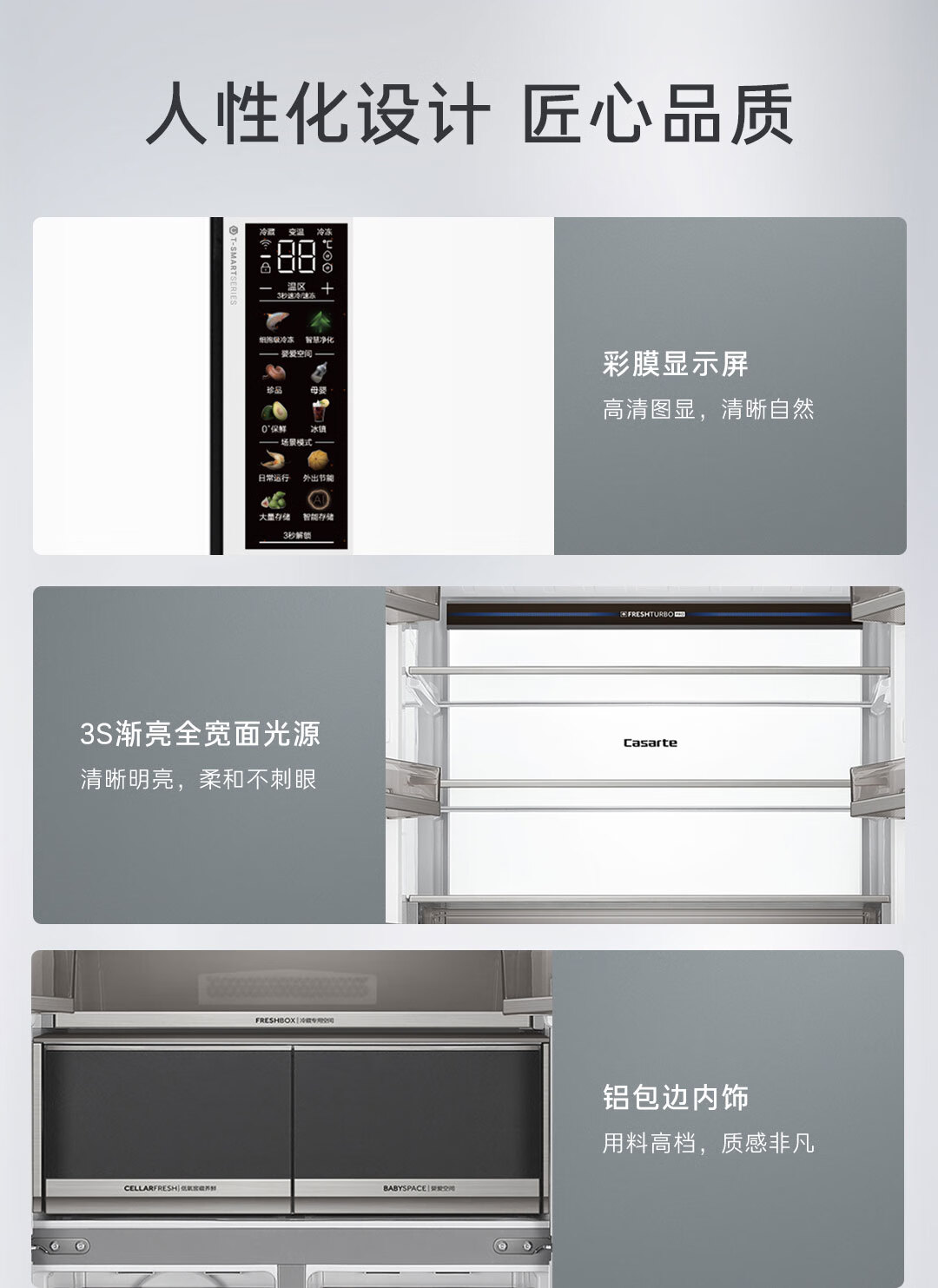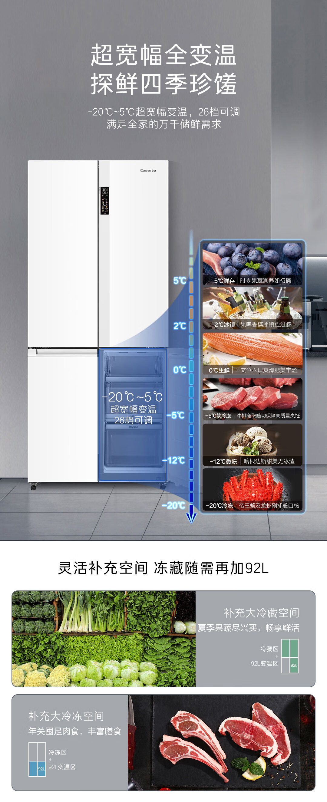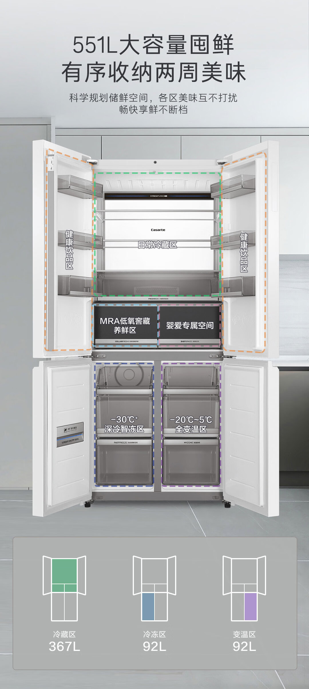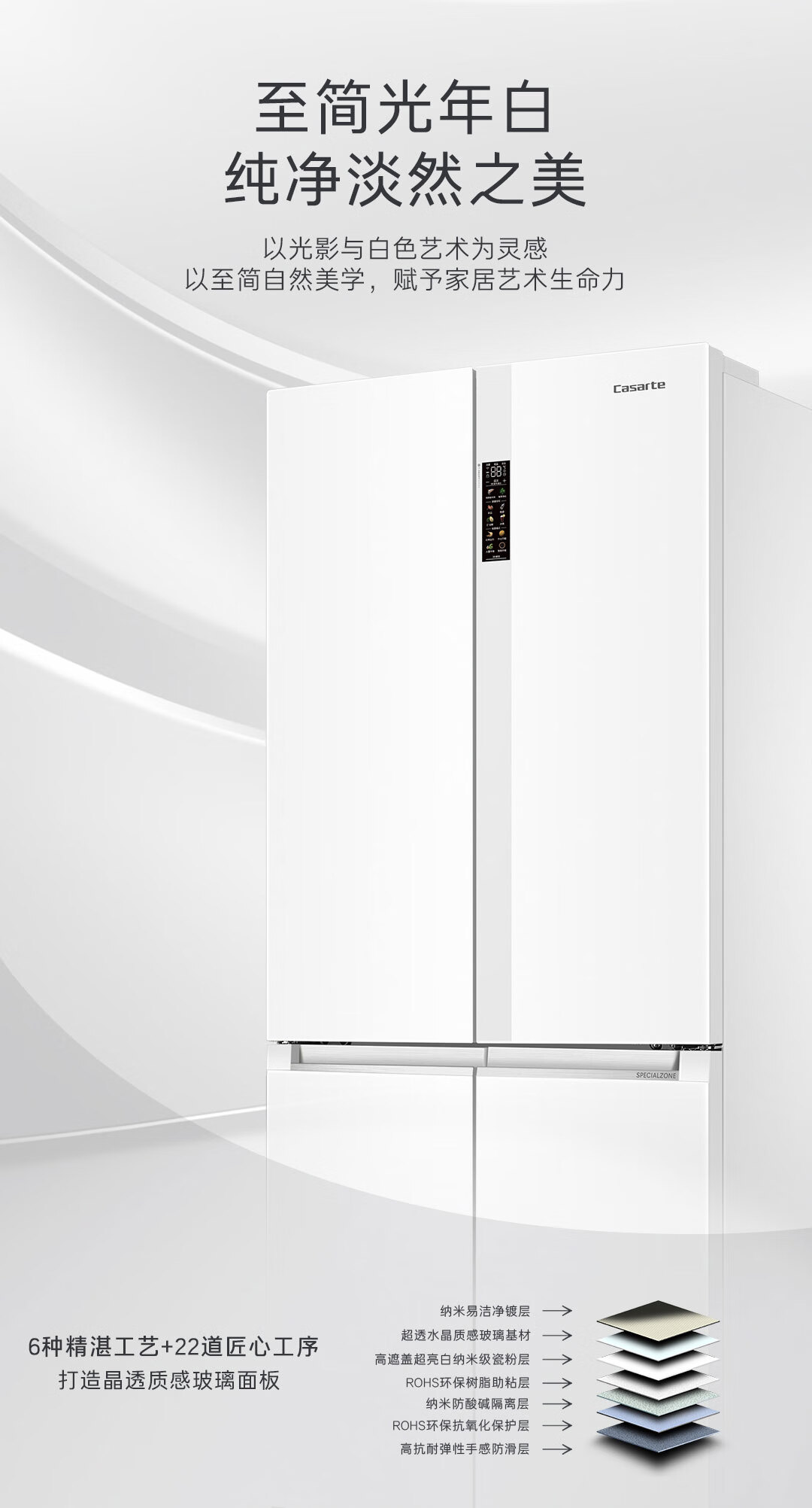 卡萨帝(Casarte)551升零距离自由嵌入式十字四开门超薄白色电冰箱一级能效BCD-551WLCTDM4WKU1