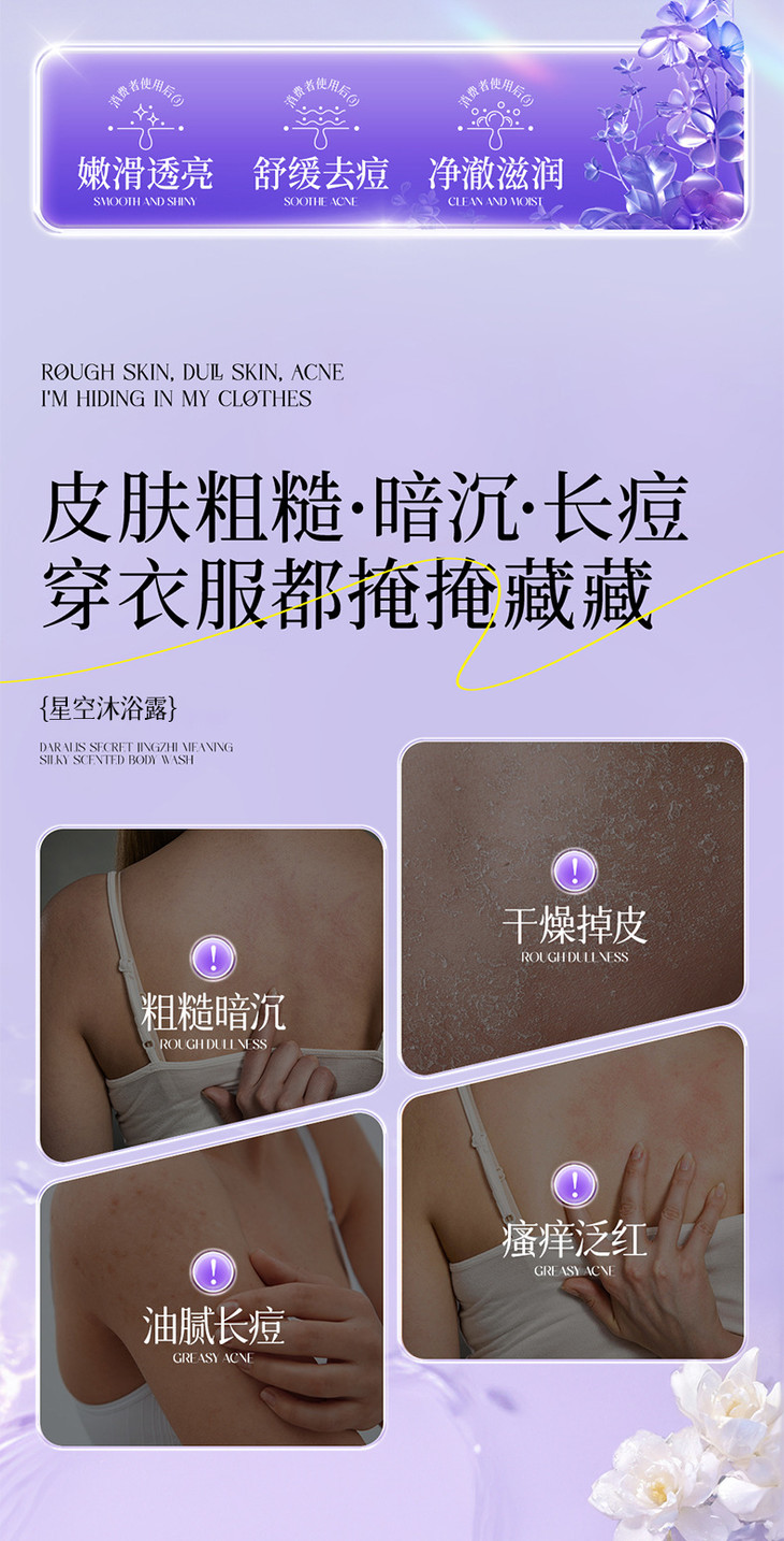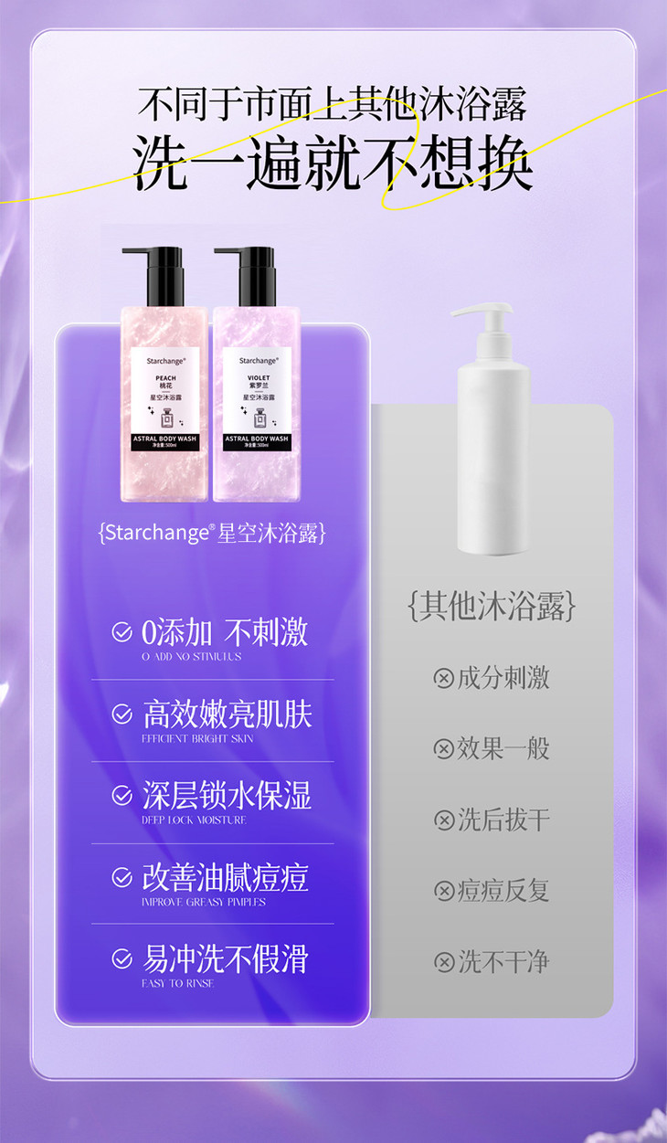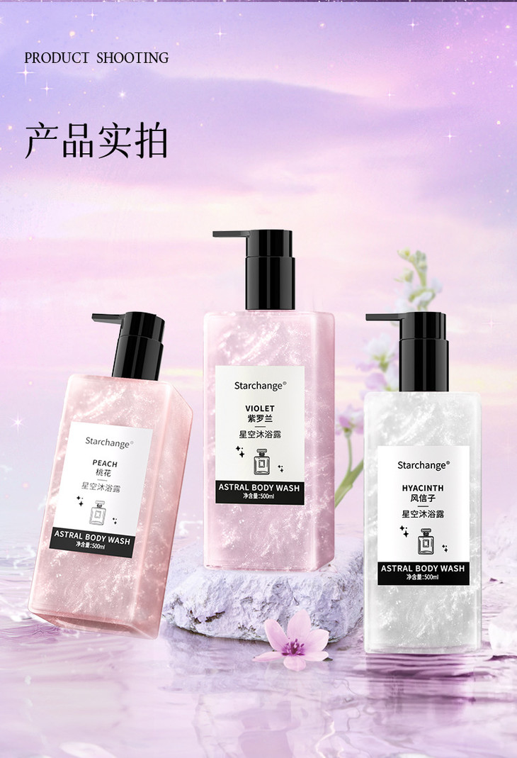 【桃花星空流沙沐浴露】保湿滋润紫罗兰香氛持久留香清爽护肤沐浴露500ml