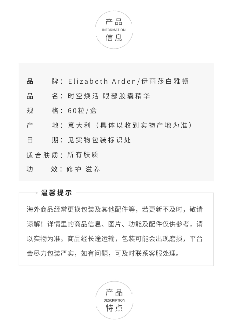 ElizabethArden伊丽莎白雅顿眼胶 30粒/60粒 眼部精华液约60粒淡化细纹神经酰胺