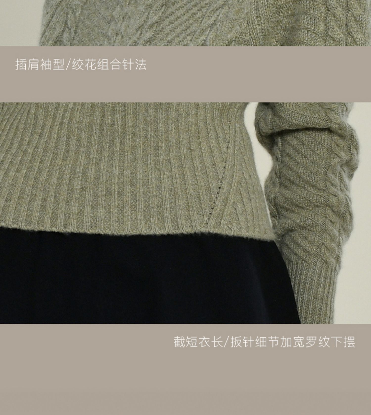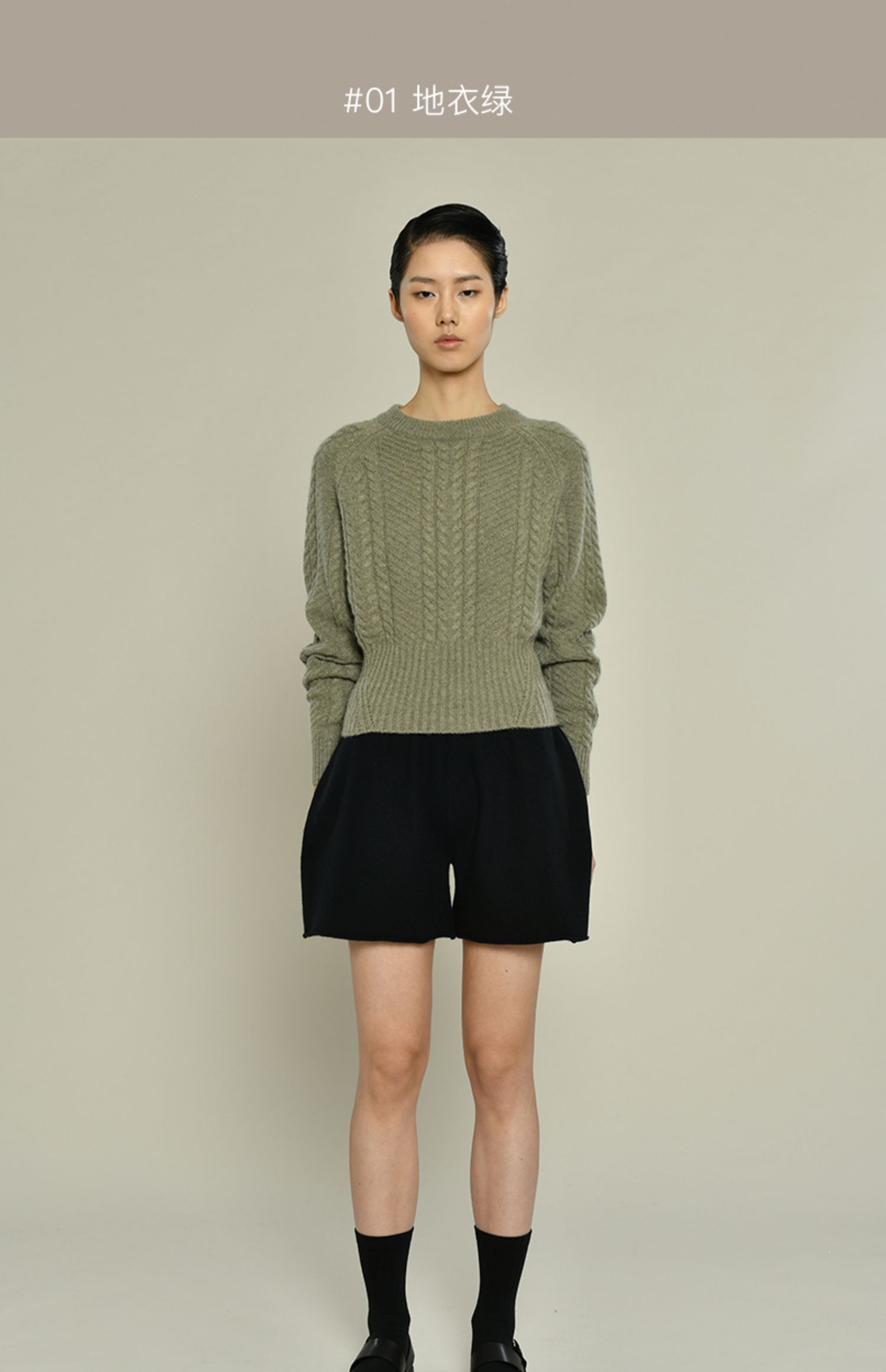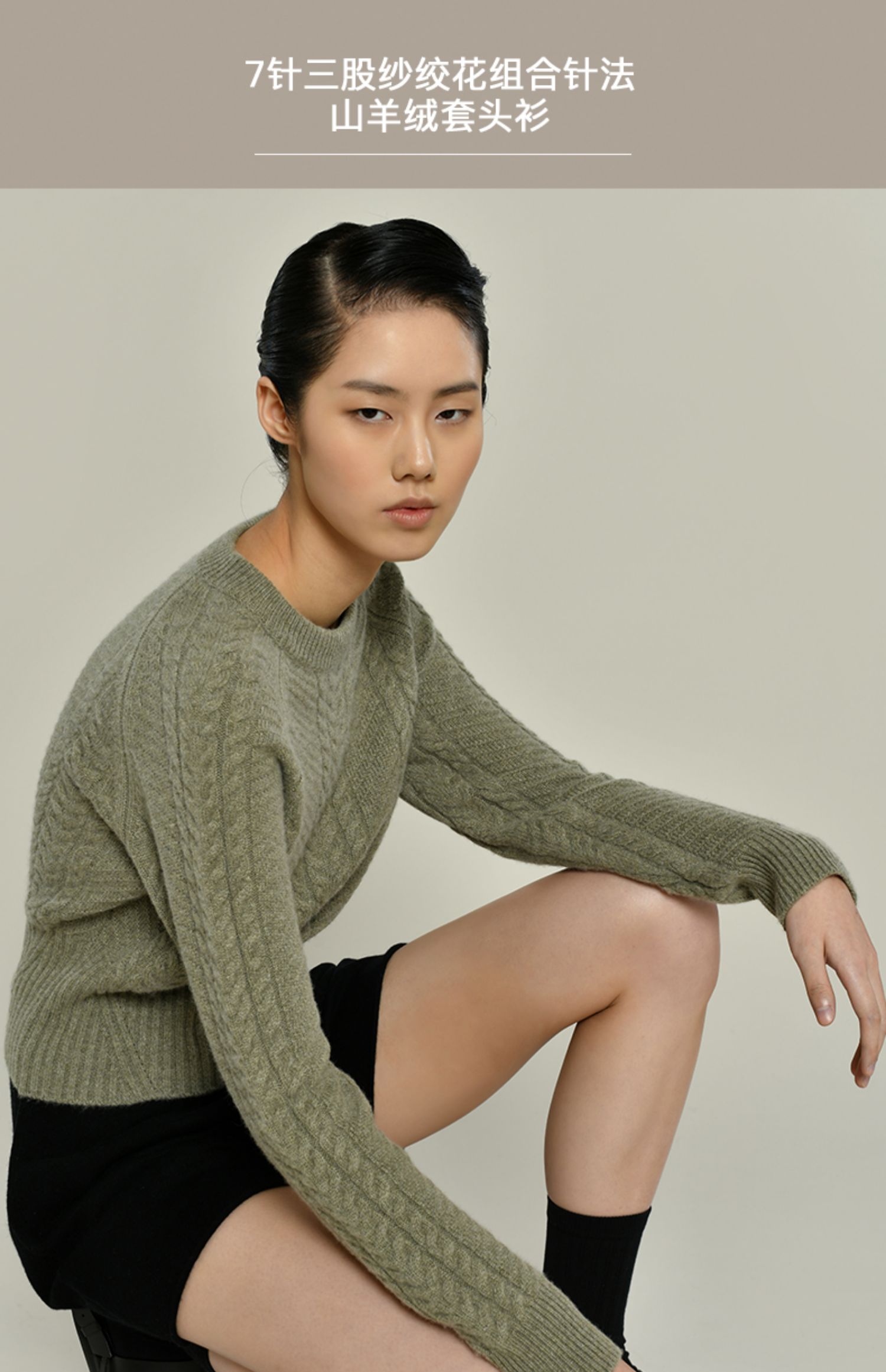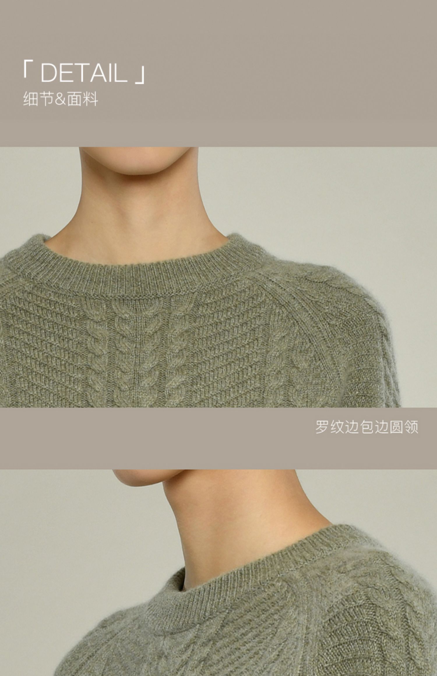 女士2021新款纯山羊绒衫圆领短款绞花套头衫