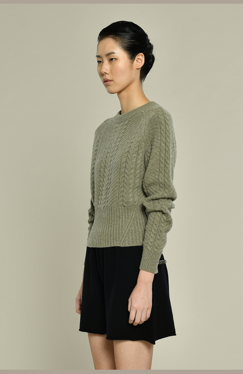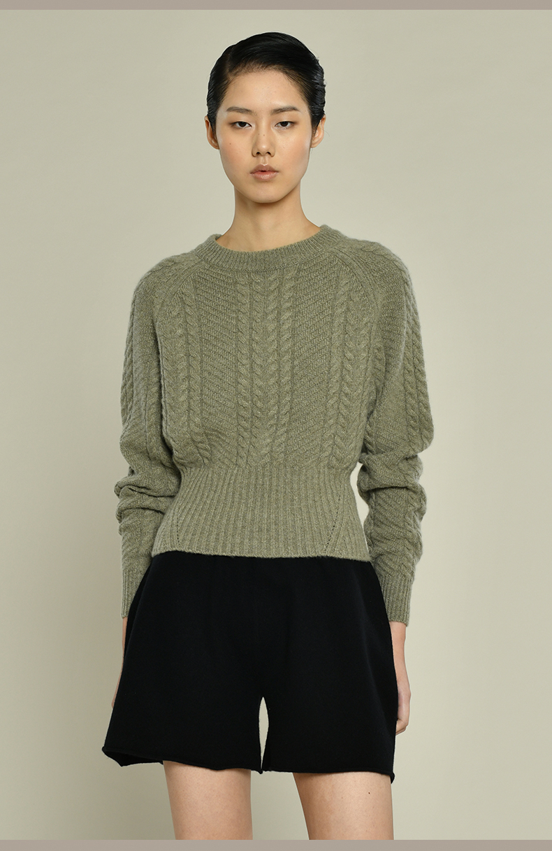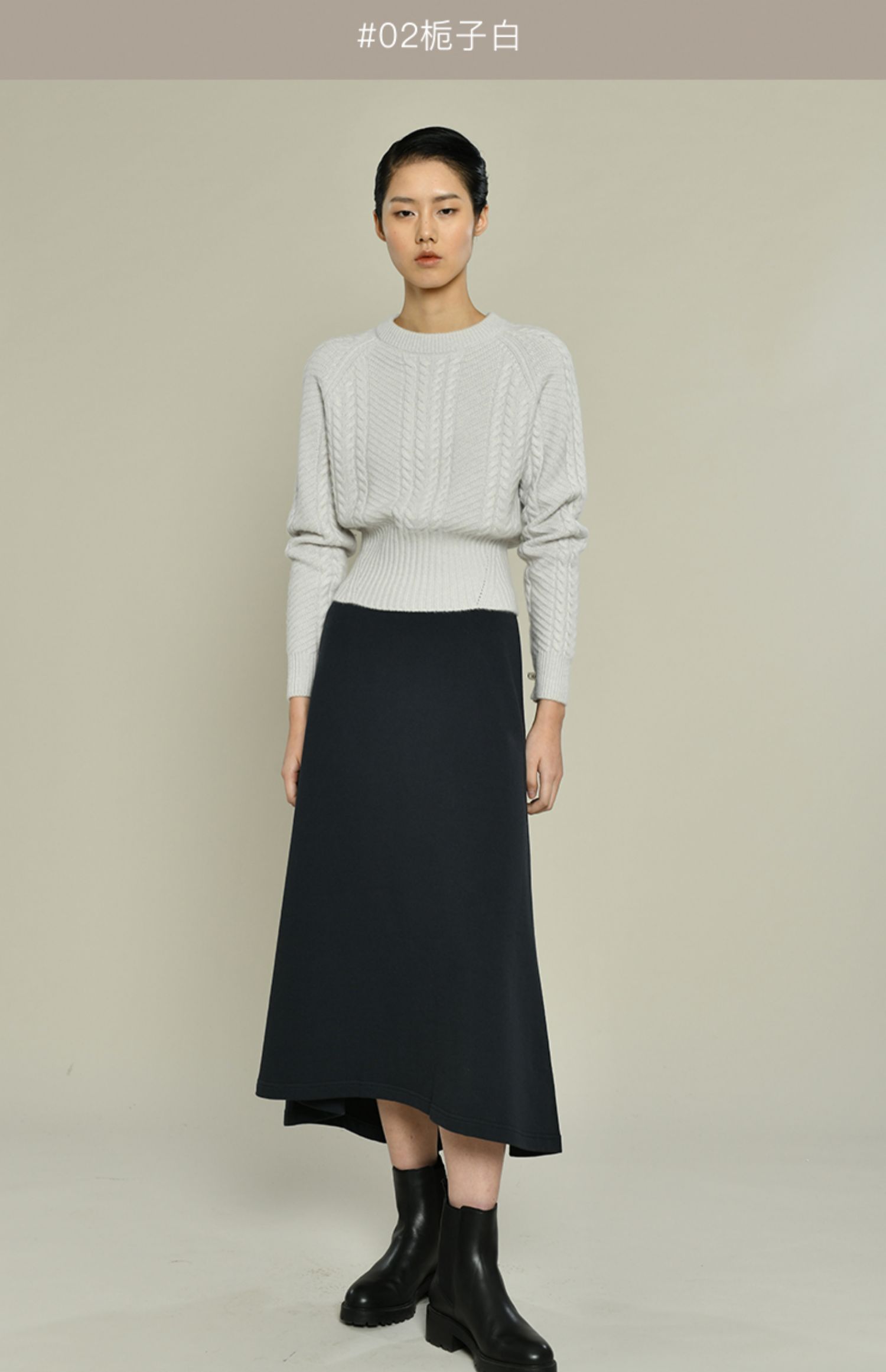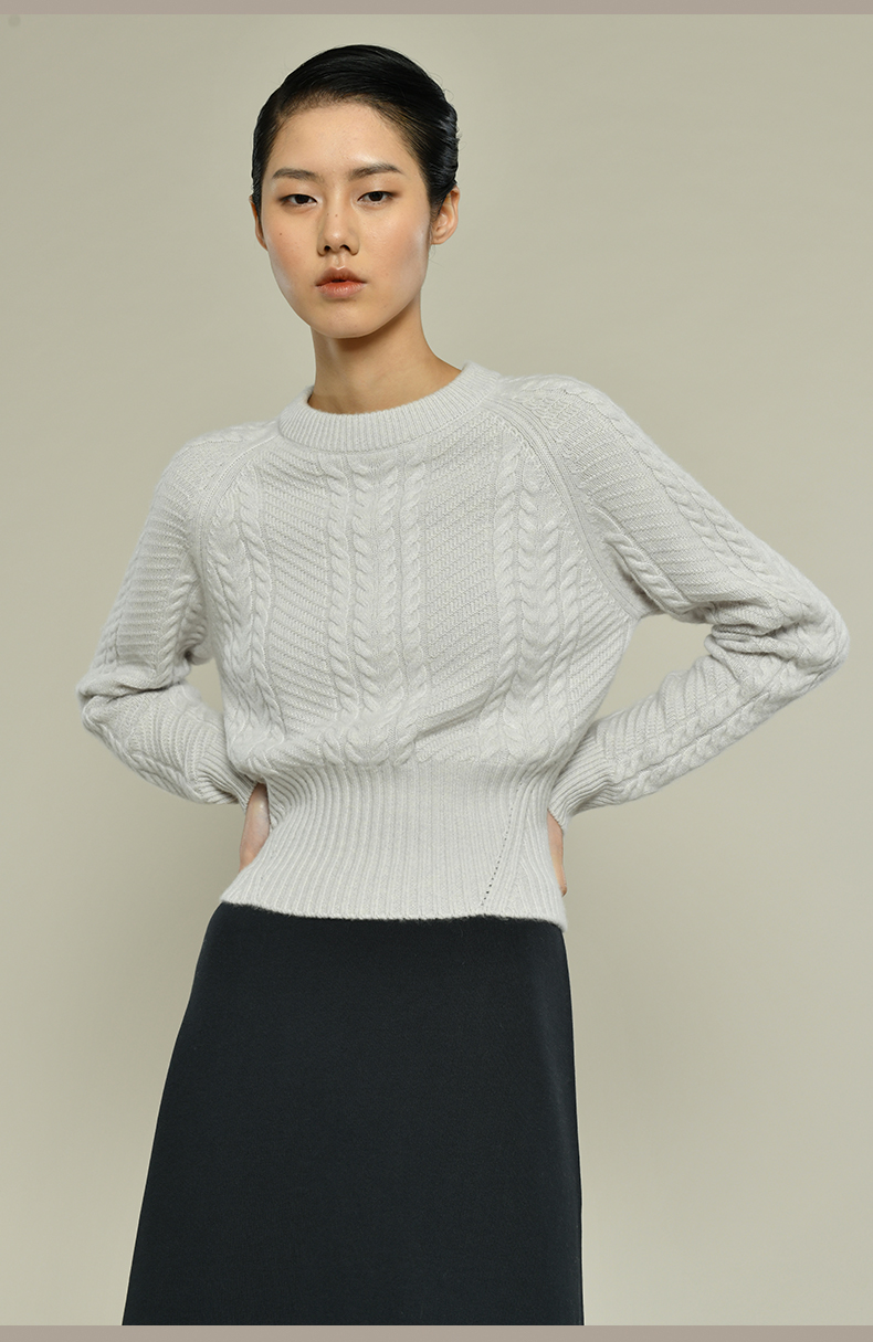 女士2021新款纯山羊绒衫圆领短款绞花套头衫