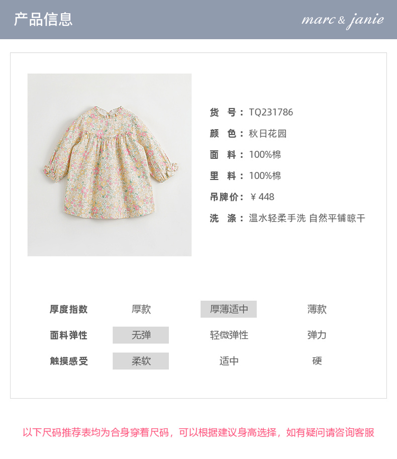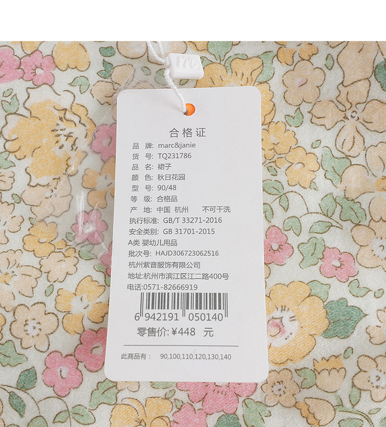 马克珍妮秋装新款 女童秋日花园纯棉连衣裙 儿童裙子231786