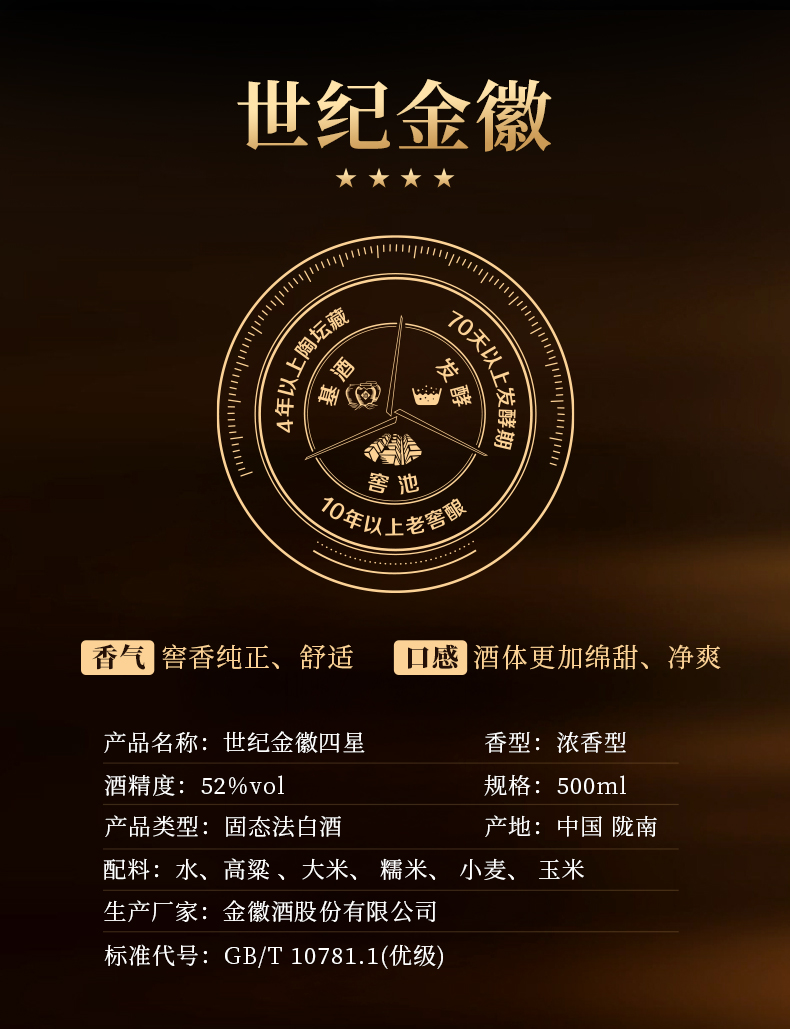 金徽酒 52度世纪金徽四星 浓香型白酒
