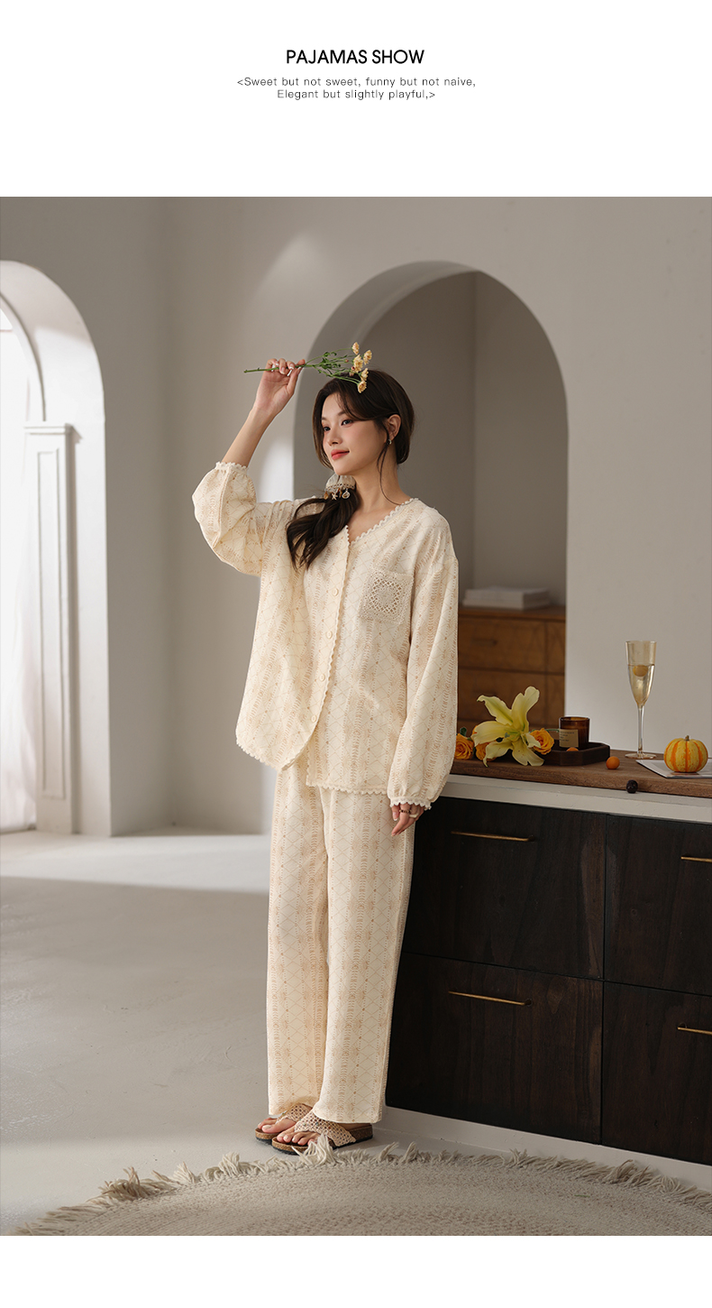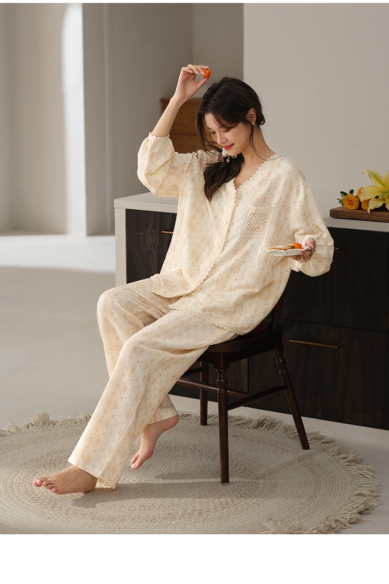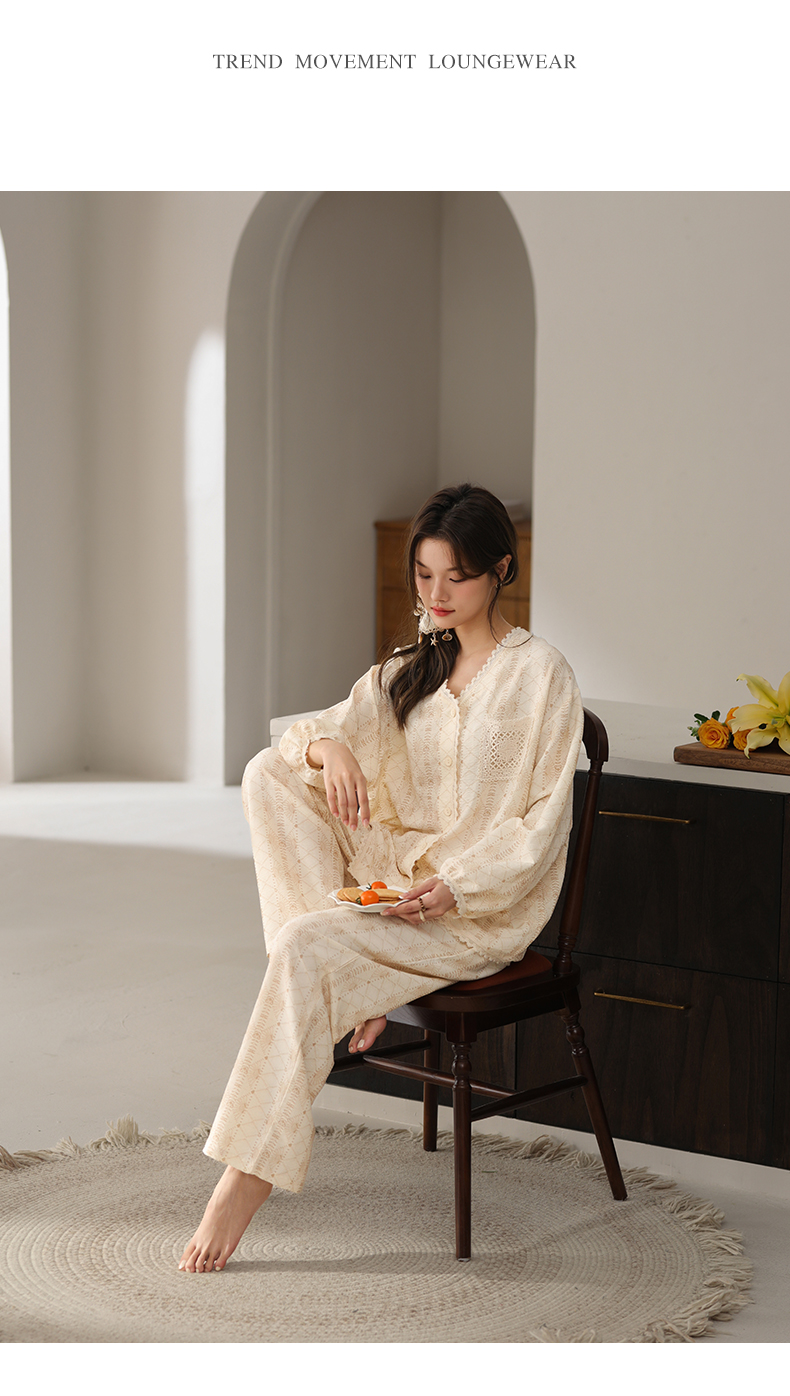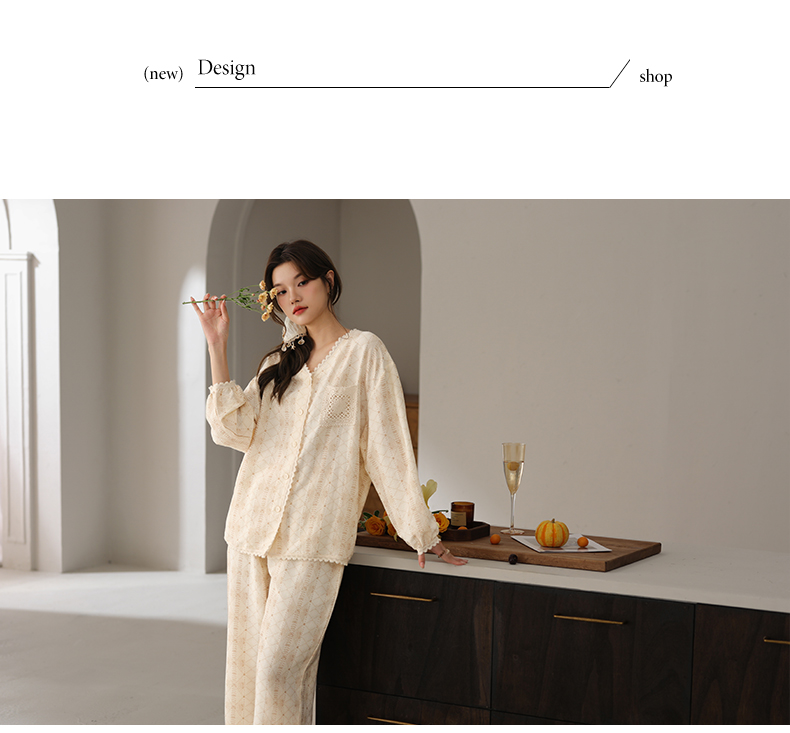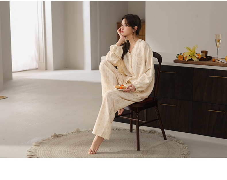 可人儿小众设计师新款奥力绵女士睡衣春秋长袖时尚可外出家居服