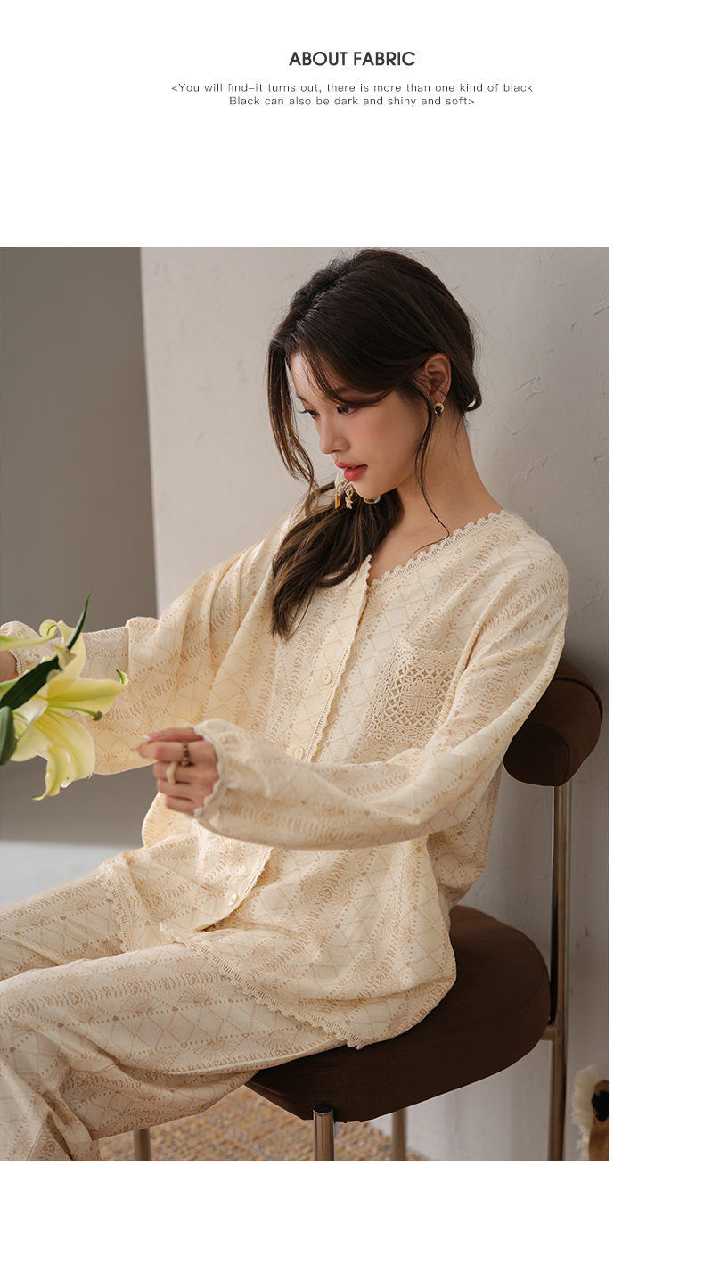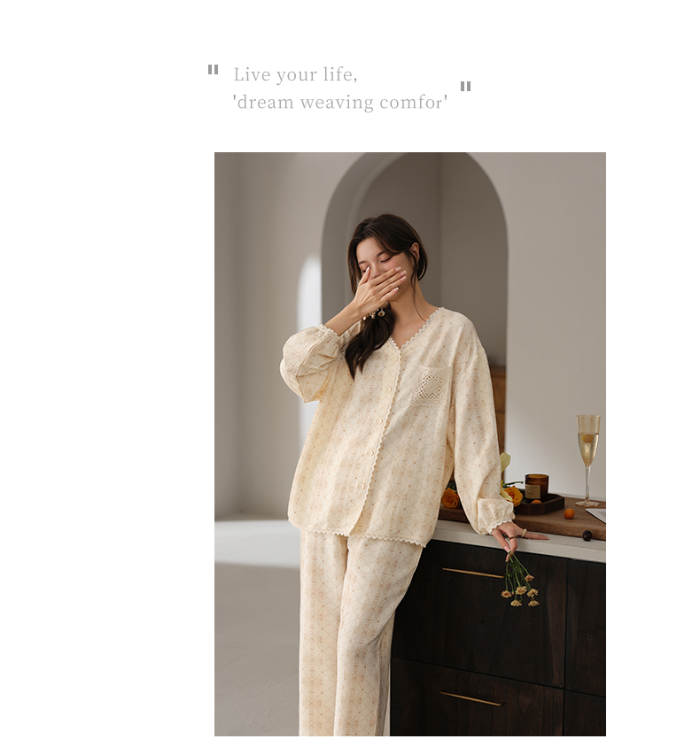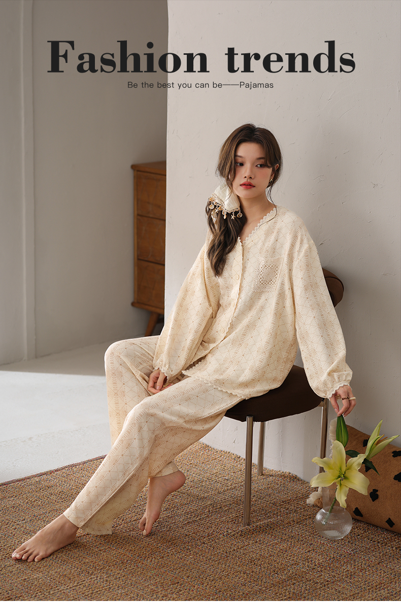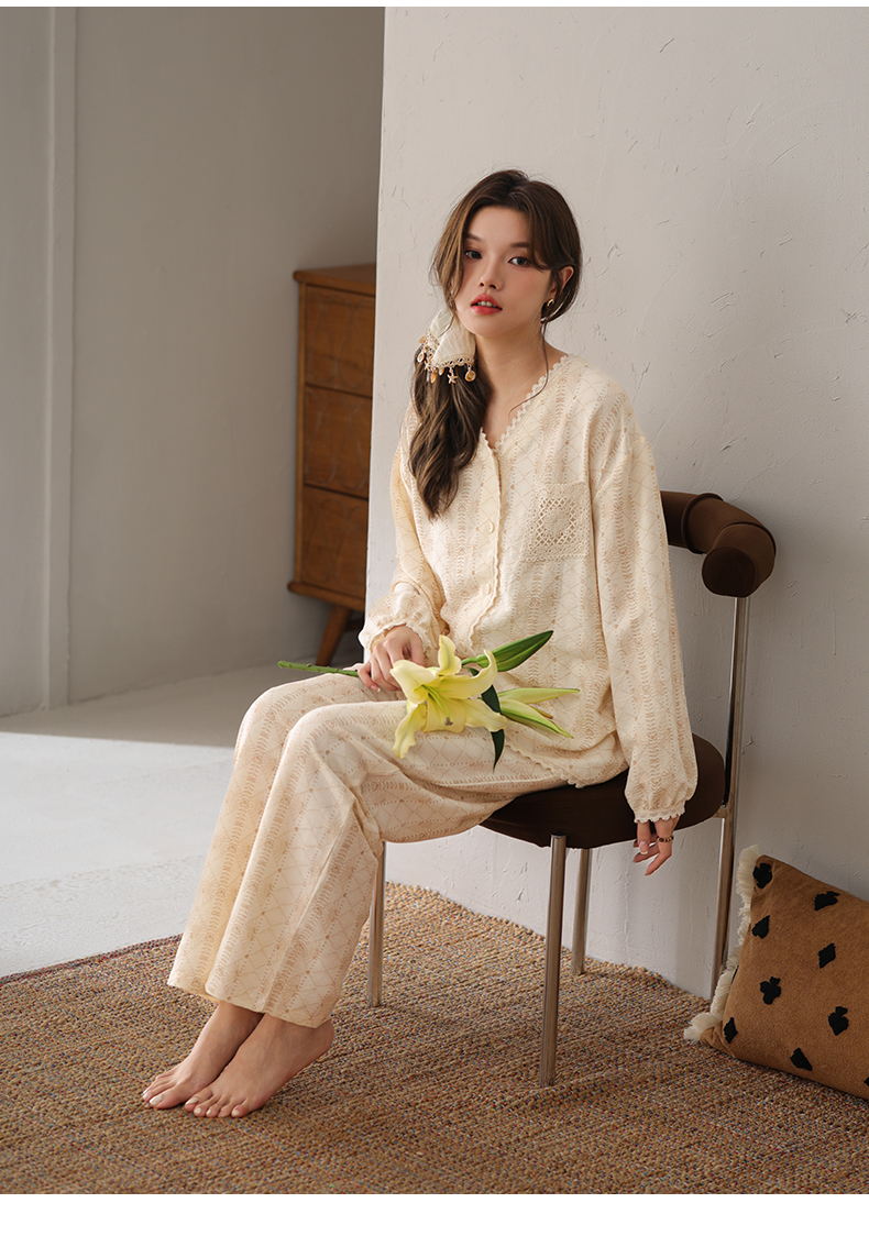 可人儿小众设计师新款奥力绵女士睡衣春秋长袖时尚可外出家居服