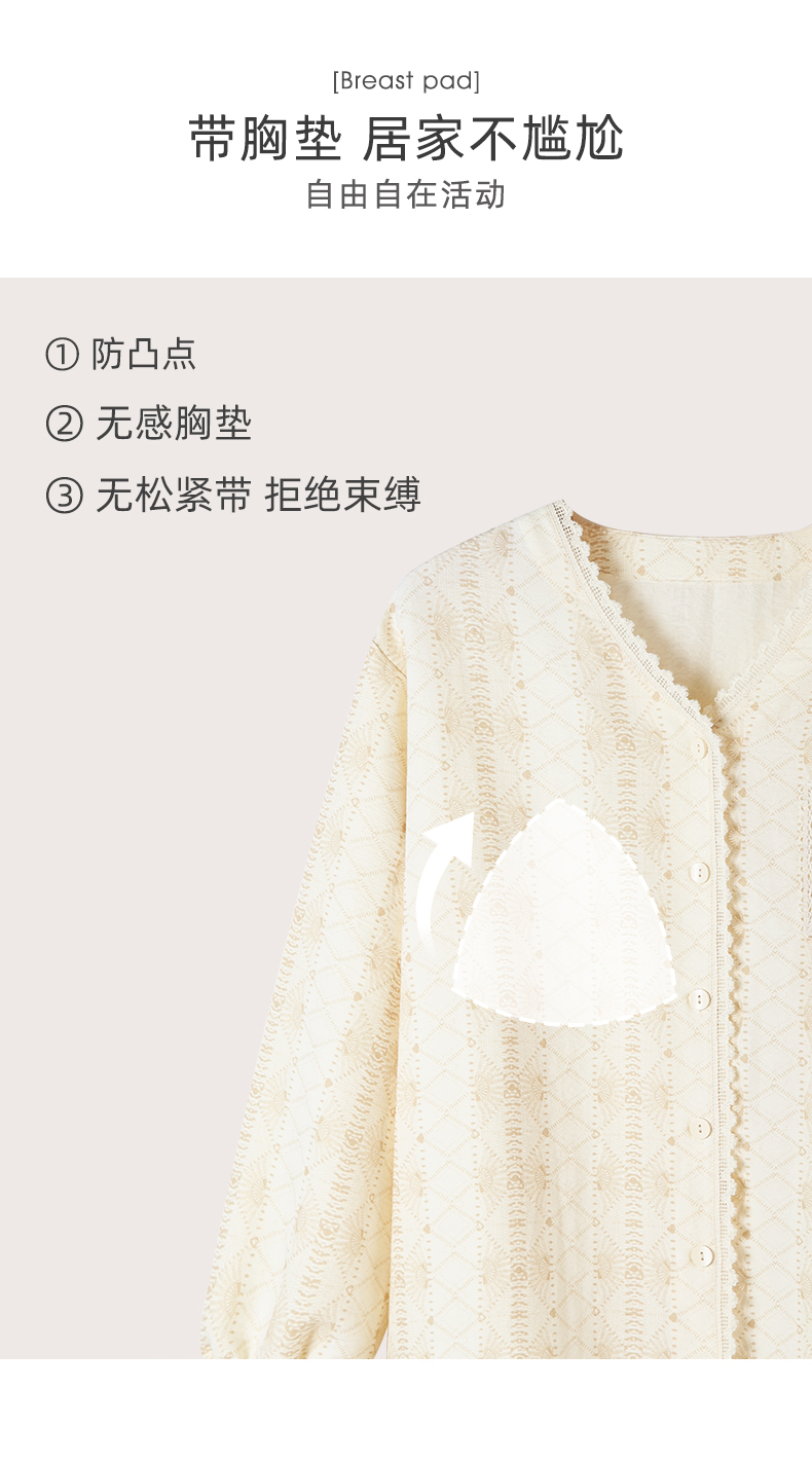 可人儿春秋季带胸垫泡泡绵女士长袖长裤睡衣可外出小众家居服套装