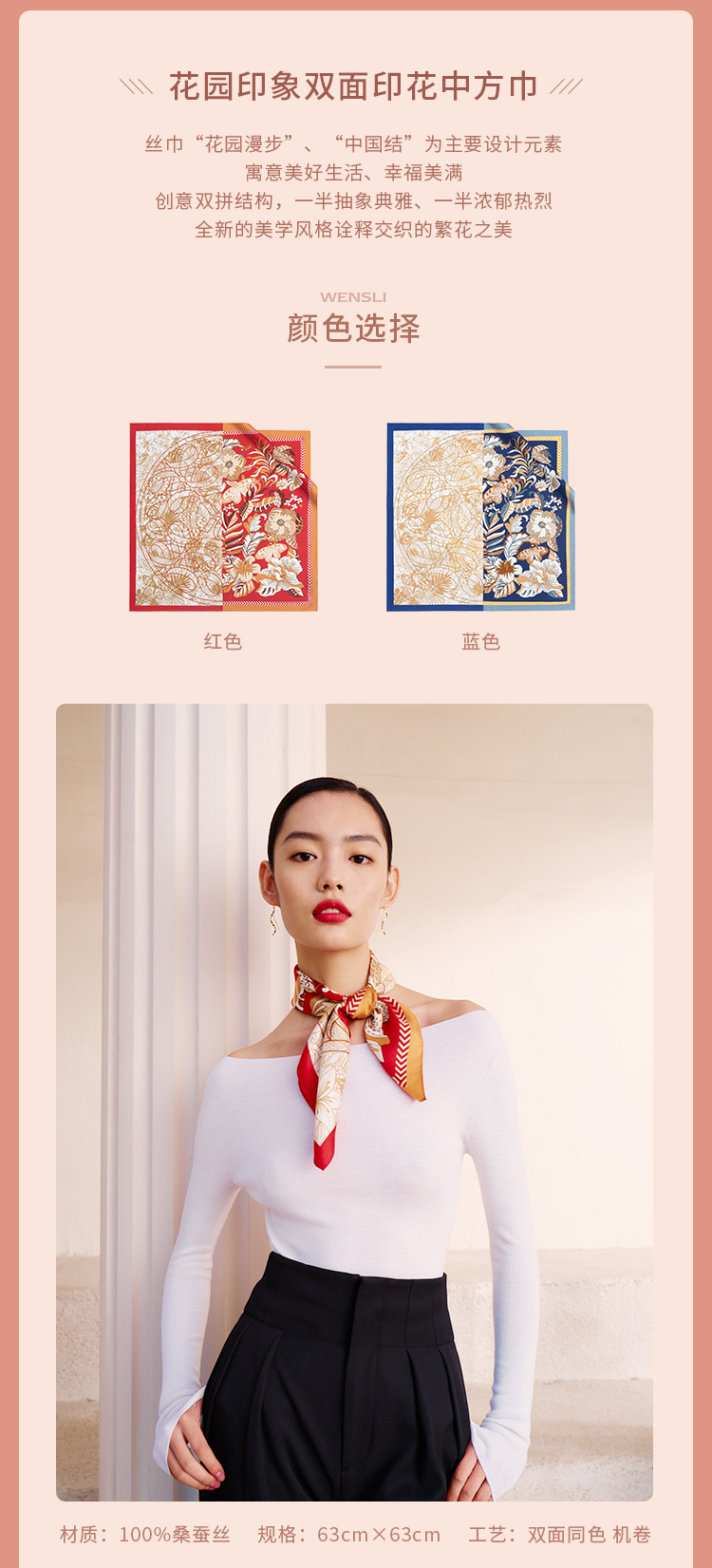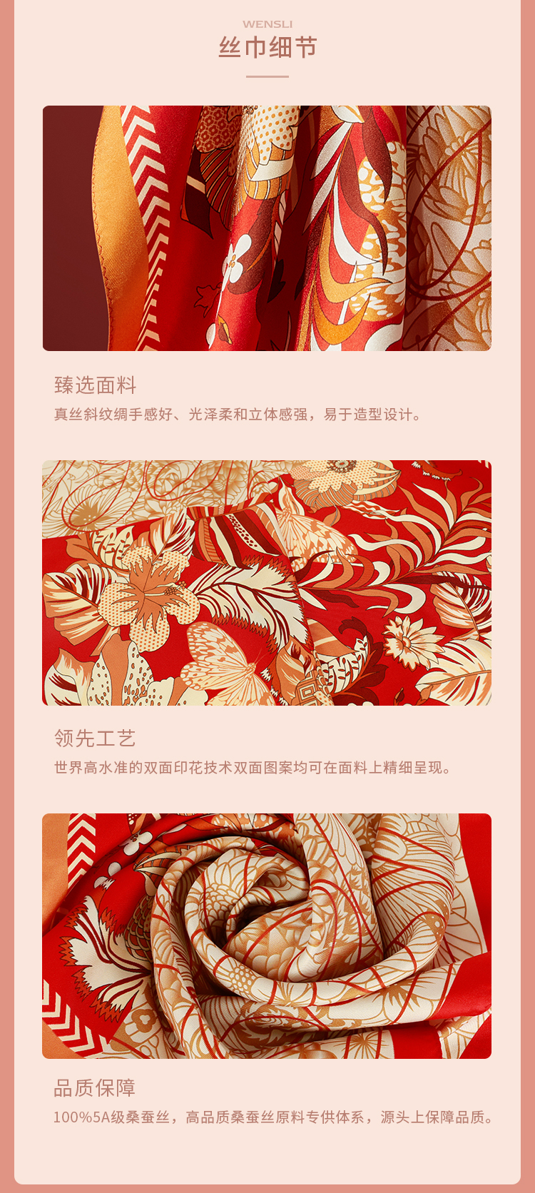 万事利-幸福礼•繁花似锦 方巾 100%桑蚕丝