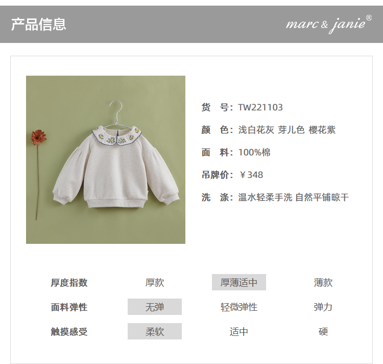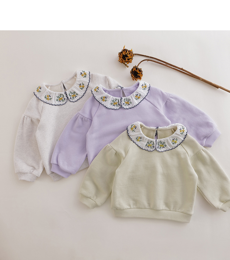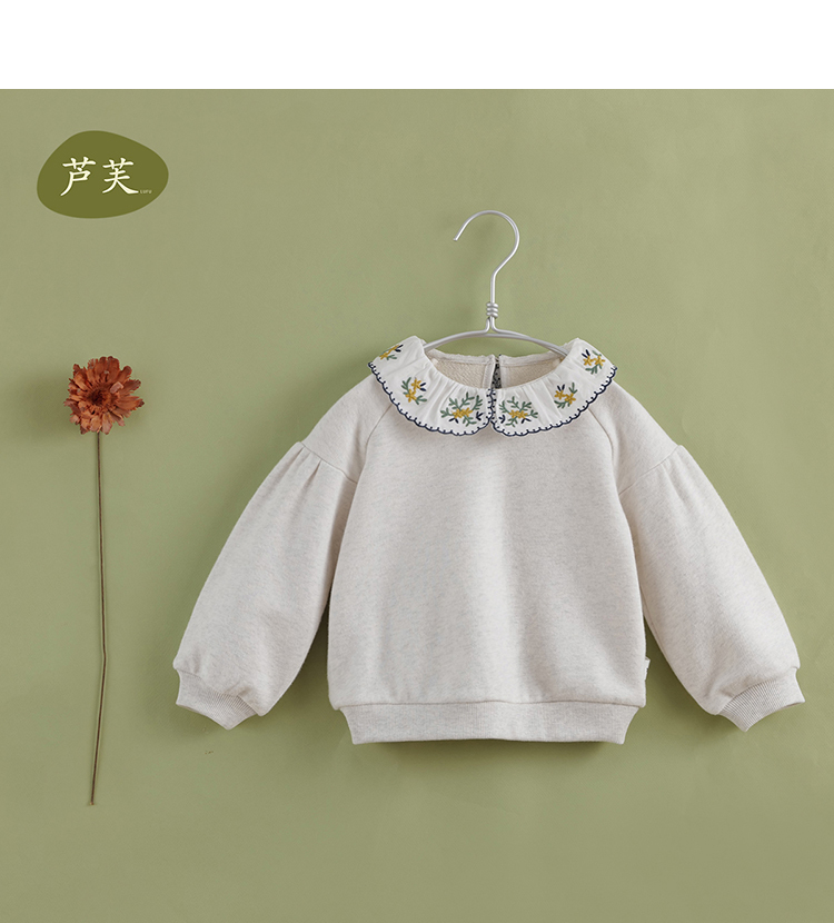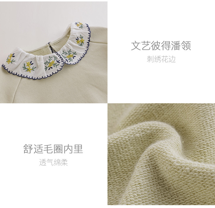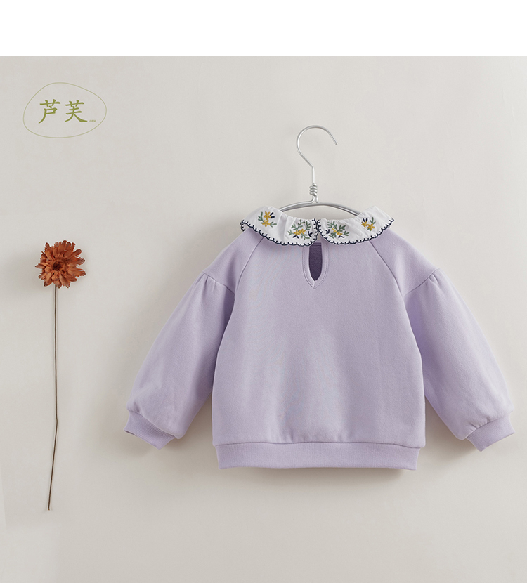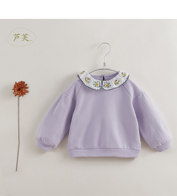 【马克珍妮 芦芙】秋装新款 女童刺绣花边领纯棉卫衣221103