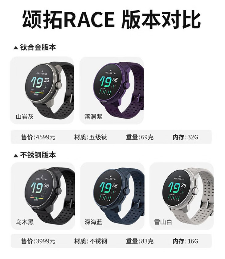 颂拓 (SUUNTO)Race 运动智能手表 户外多功能腕表 健身跑步 钛合金 数据监测