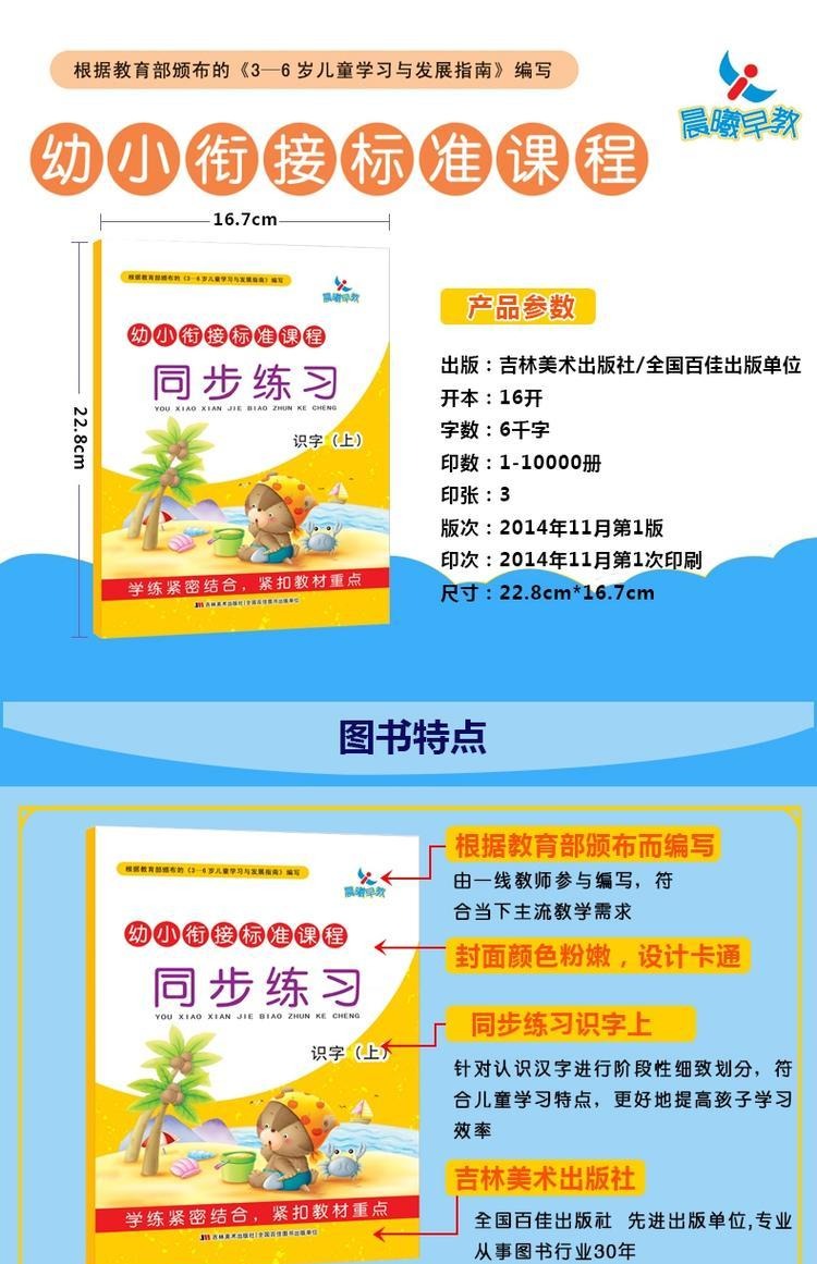 识字练习册 幼小衔接标准课程同步练习(上) 一日一练整合学前班教材语文 3-6岁幼儿园中班大班升一年级语言拼音识字练习册