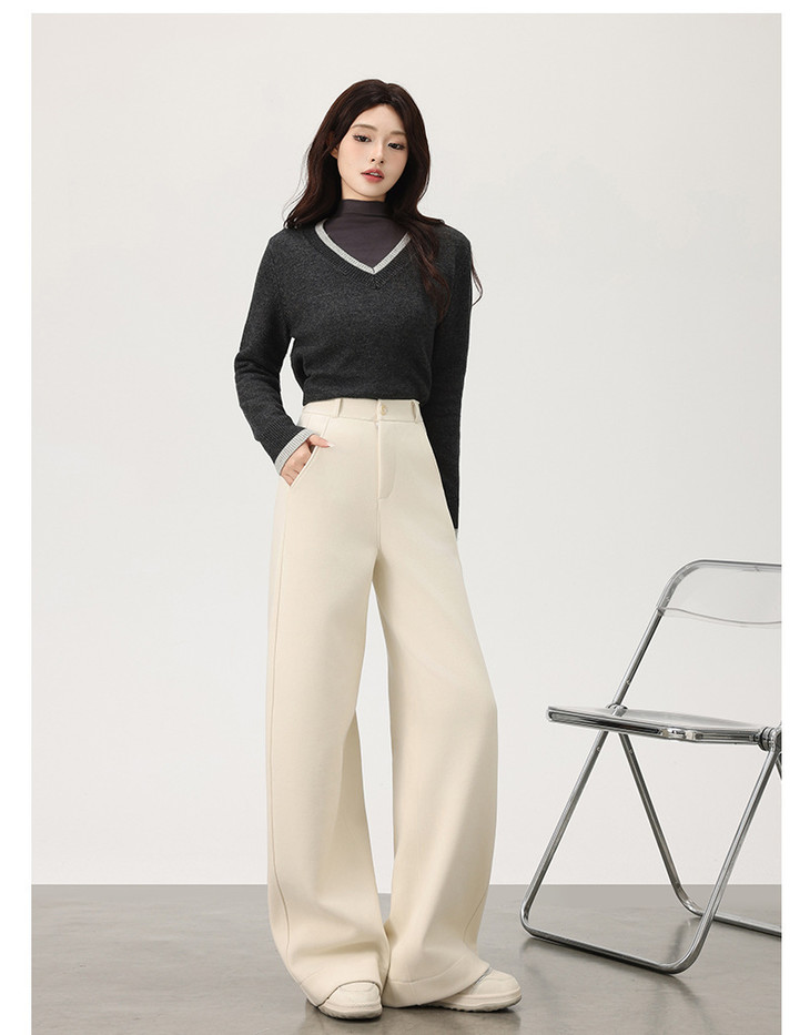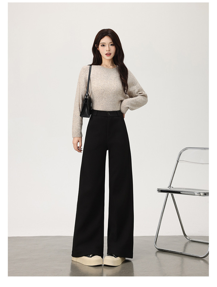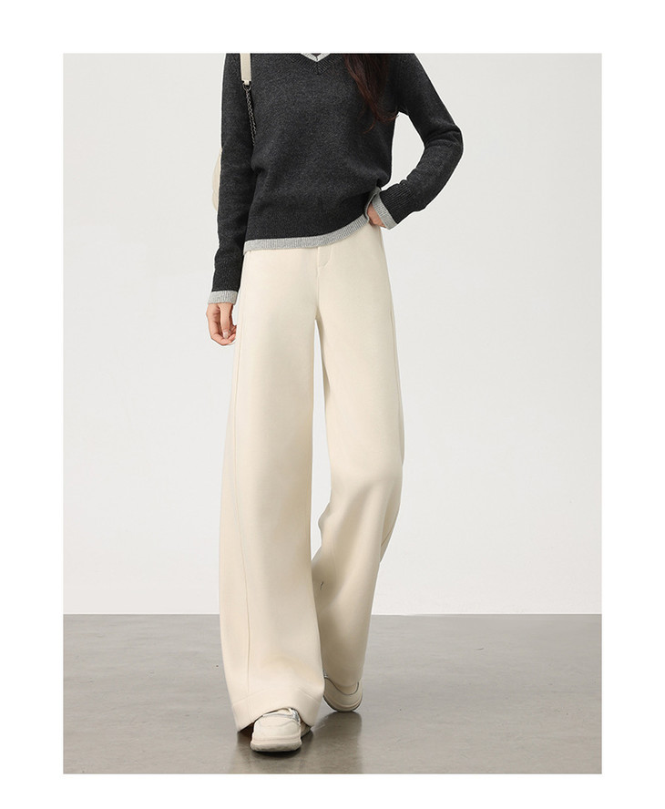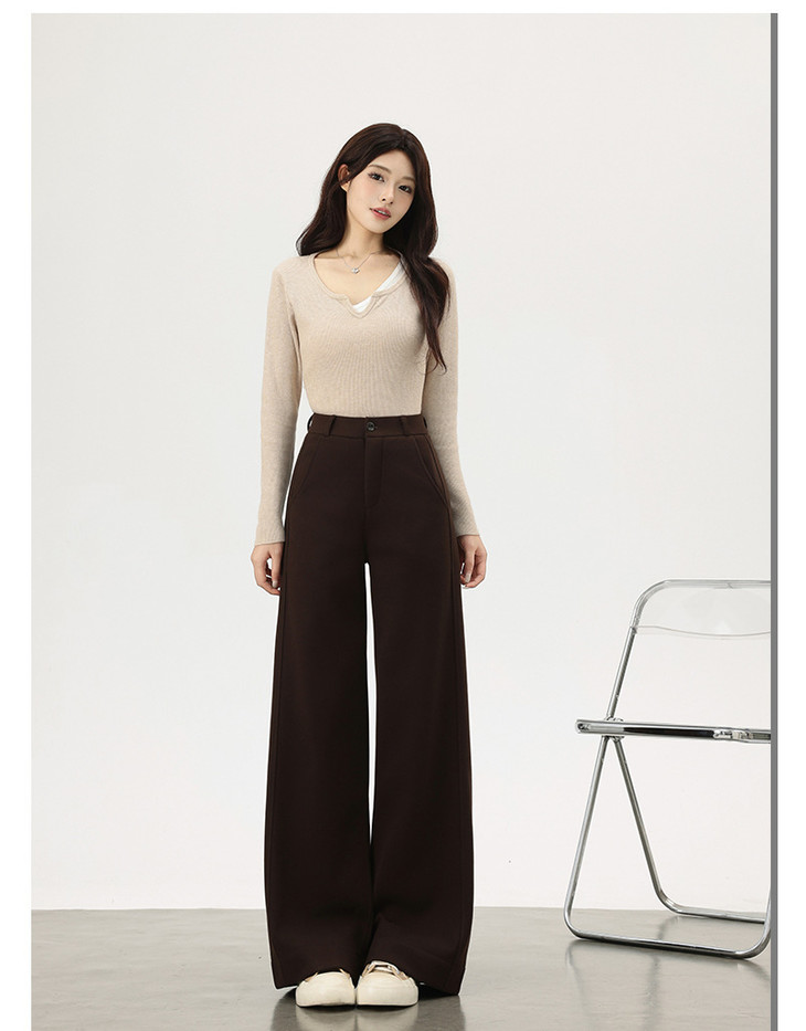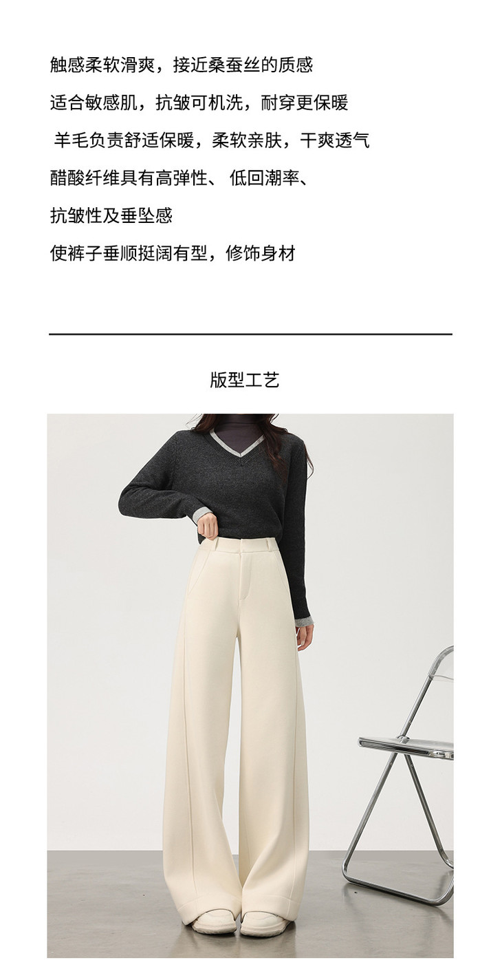 美拉德羊绒裤女秋冬高腰显瘦直筒裤可可棕高个子西装休闲阔腿裤女