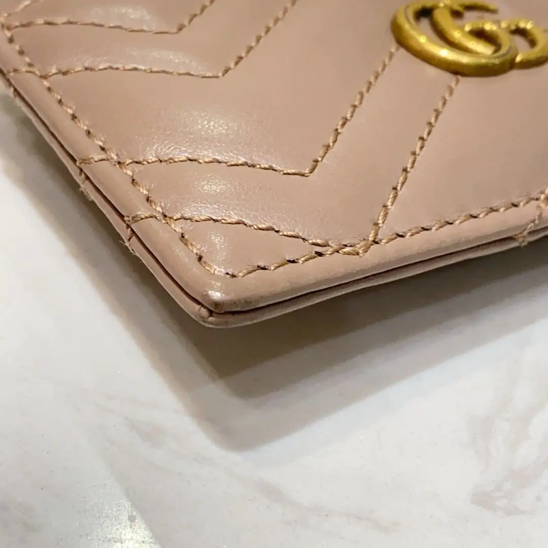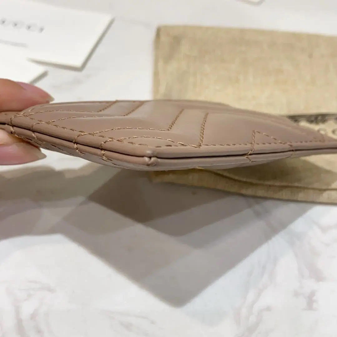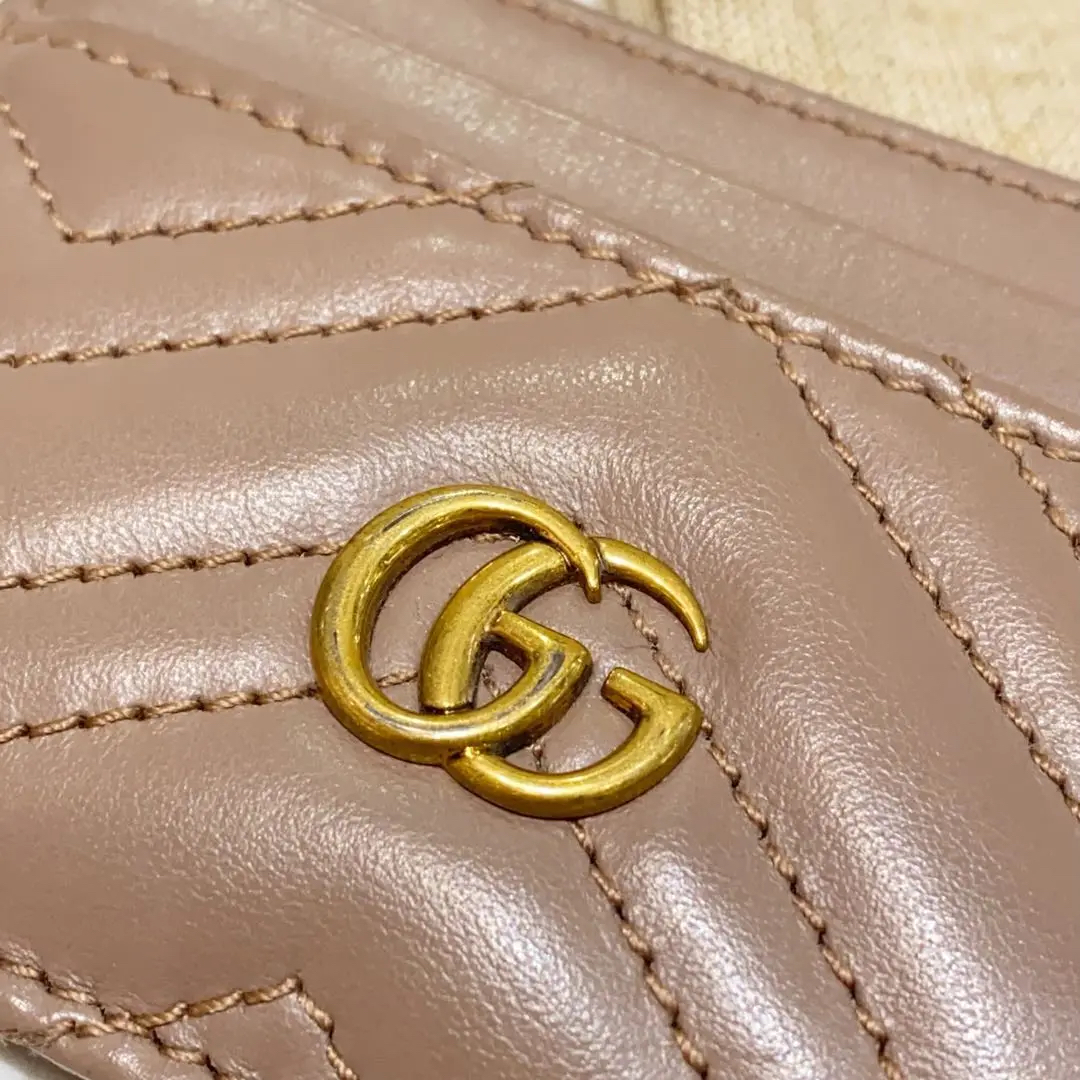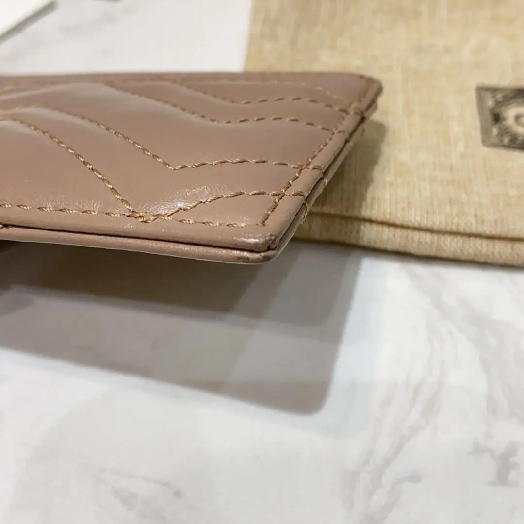 【商品详情】正品二手 GUCCI 马蒙 双G 奶茶色 牛皮 小卡包💸 95新 10x7 配件:说明书 防尘袋。金属正常使用感。可爱又温柔