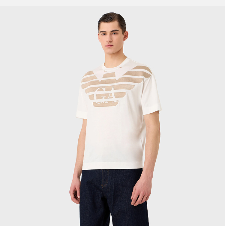 EMPORIO ARMANI 阿玛尼 男士老鹰徽标印花圆领短袖T恤 白色 3R1TZ2 1JUVZ 01G0