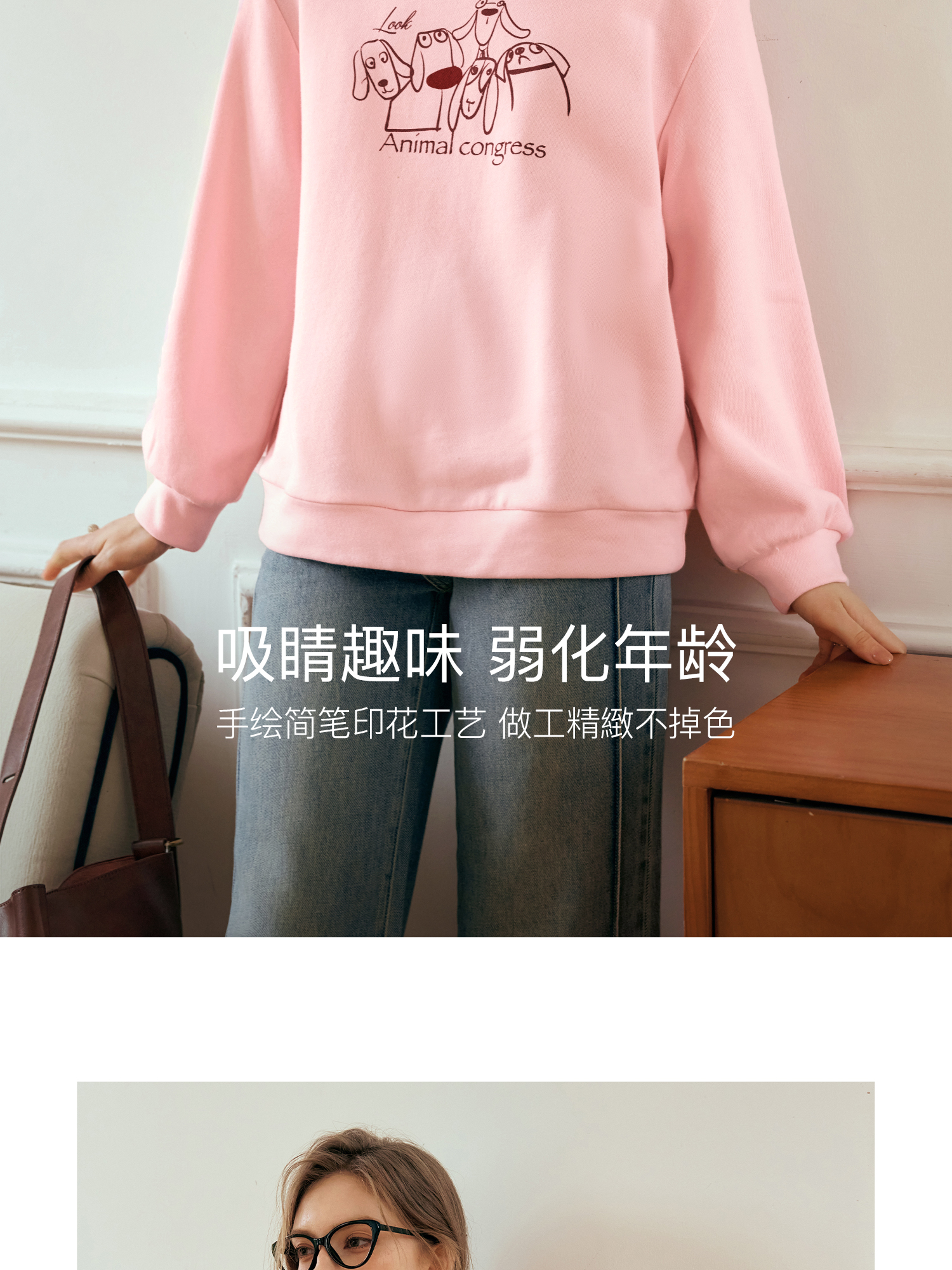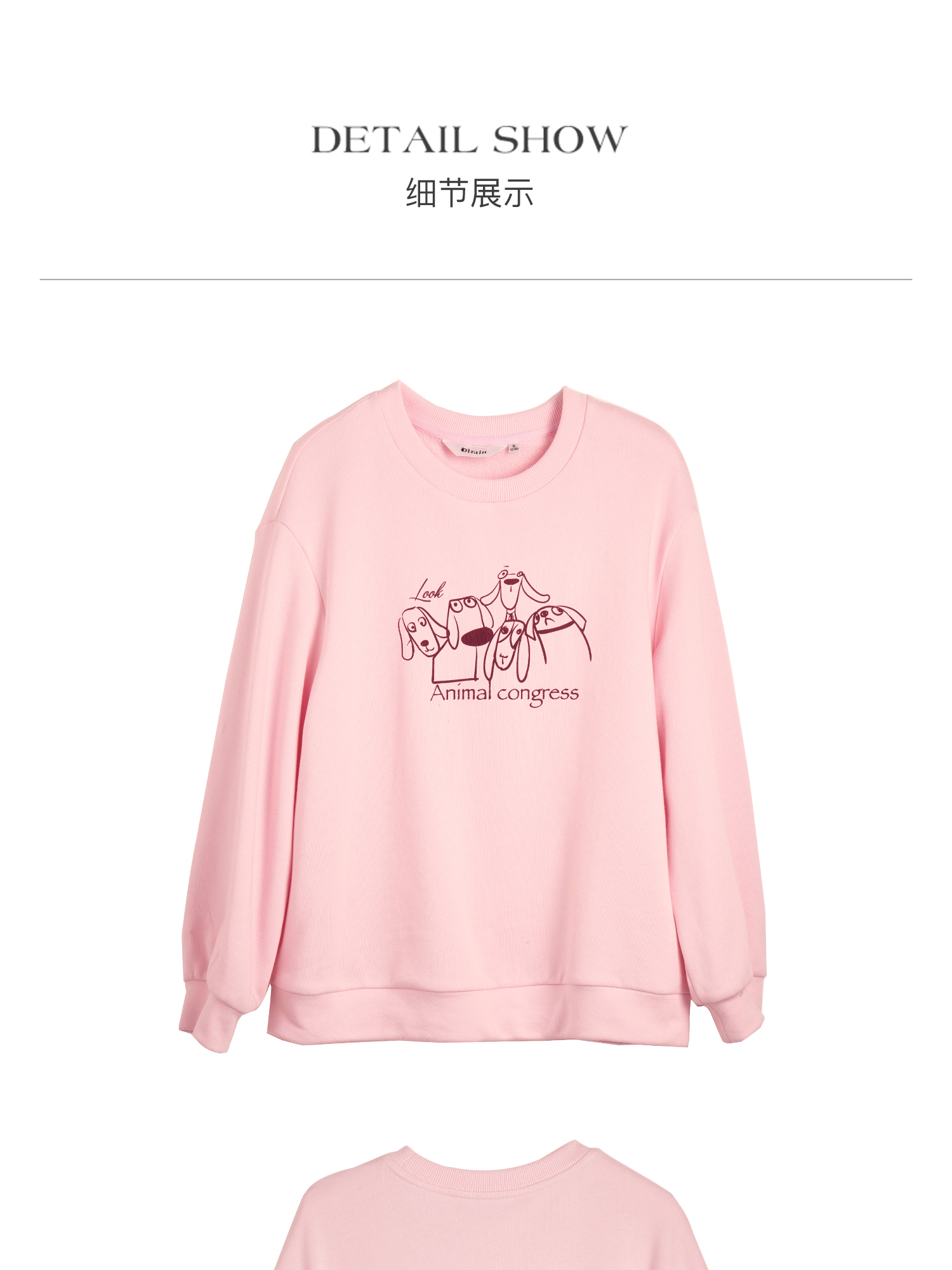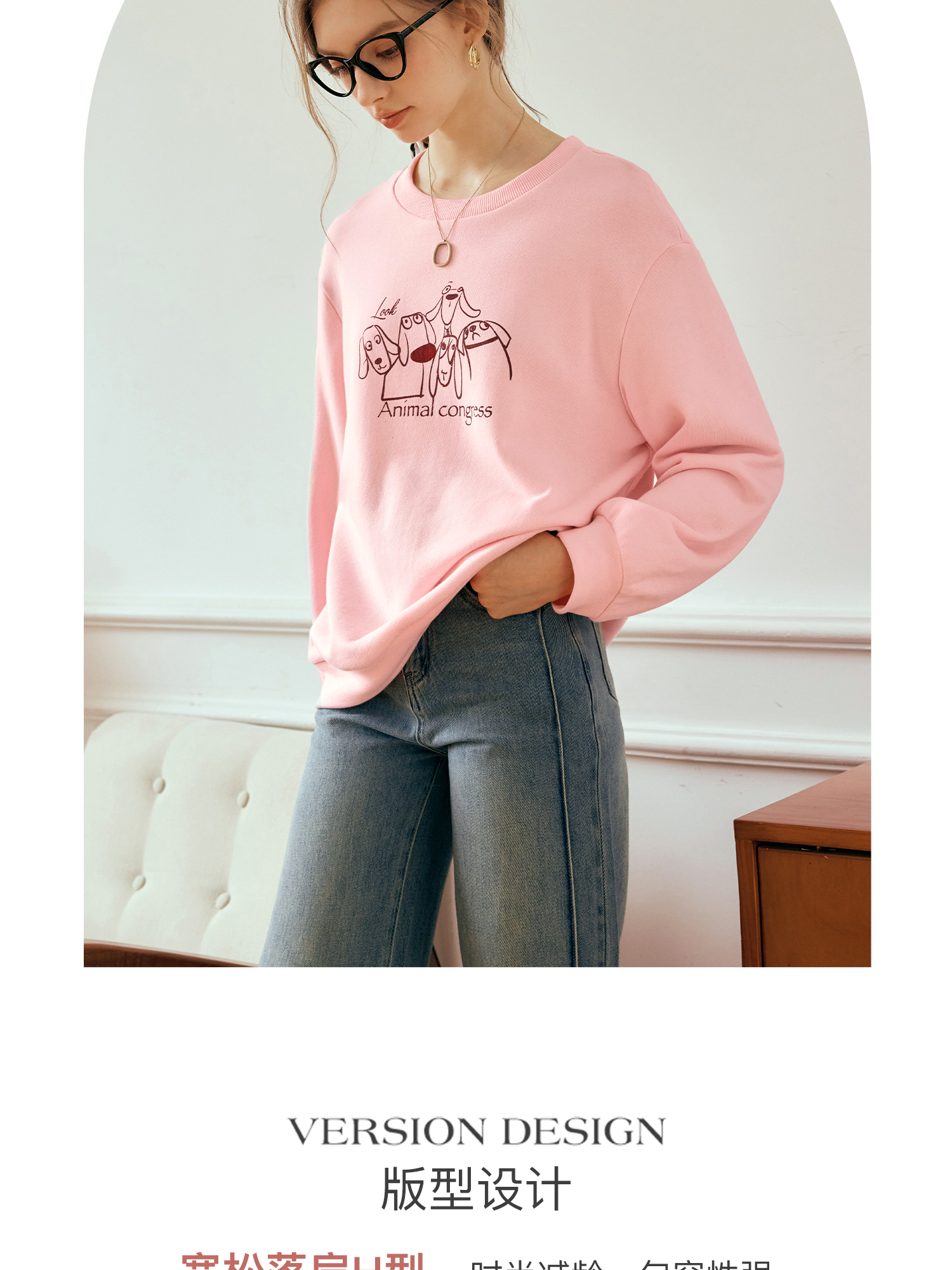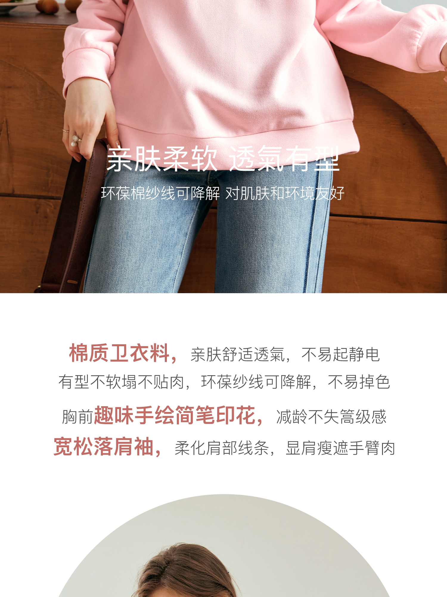 OLrain欧芮儿粉色套头卫衣女秋季2024年新款休闲宽松趣味印花上衣