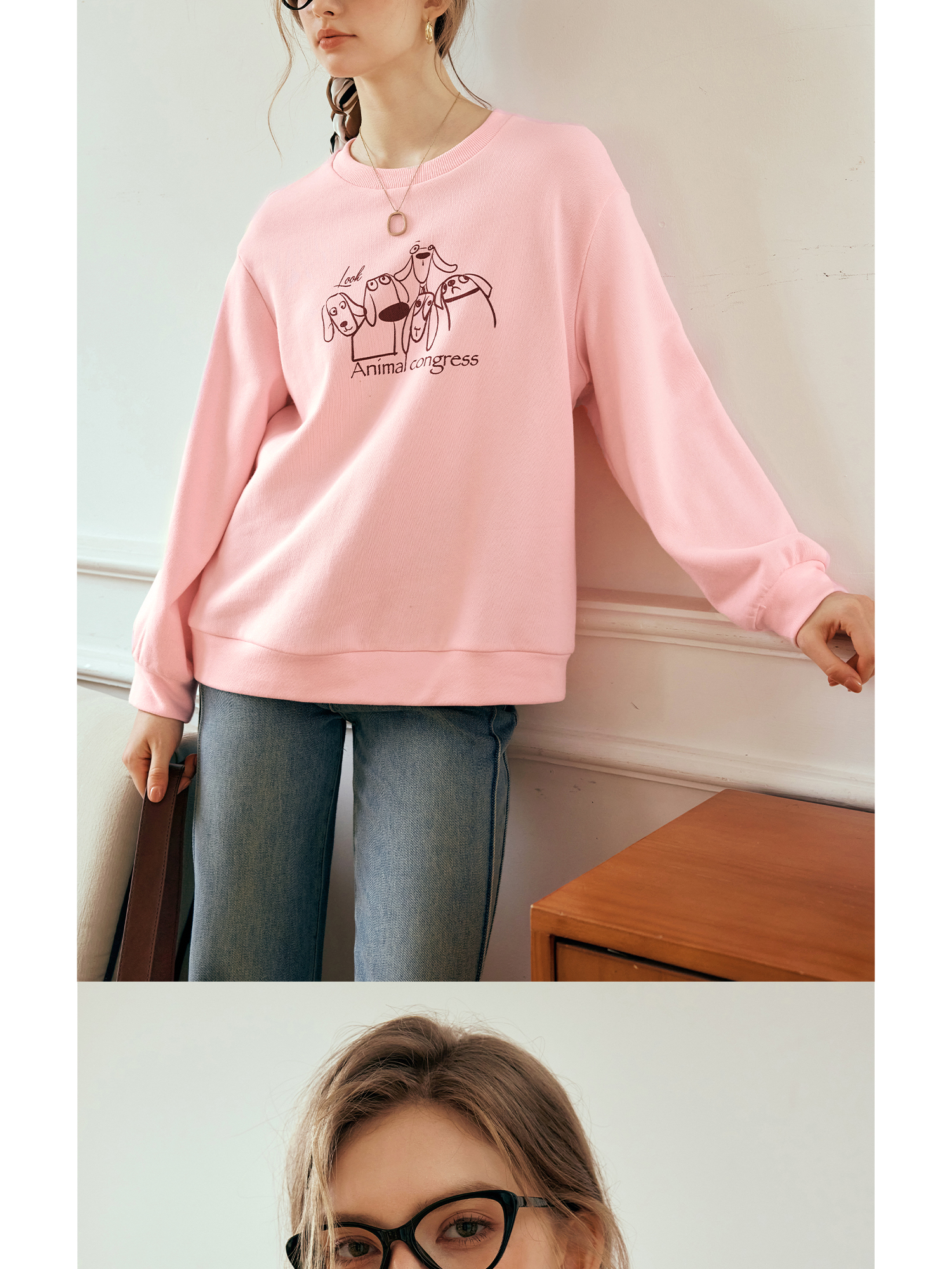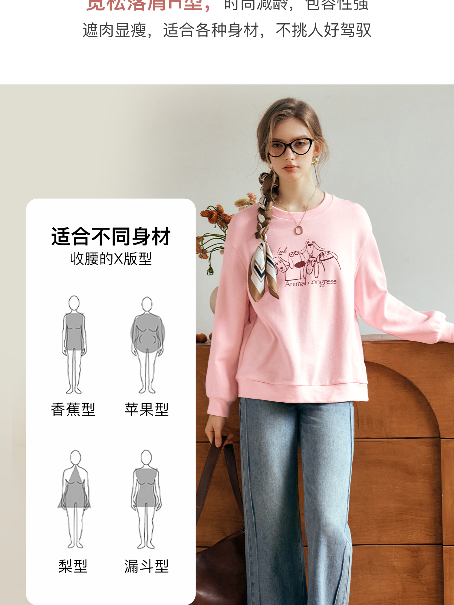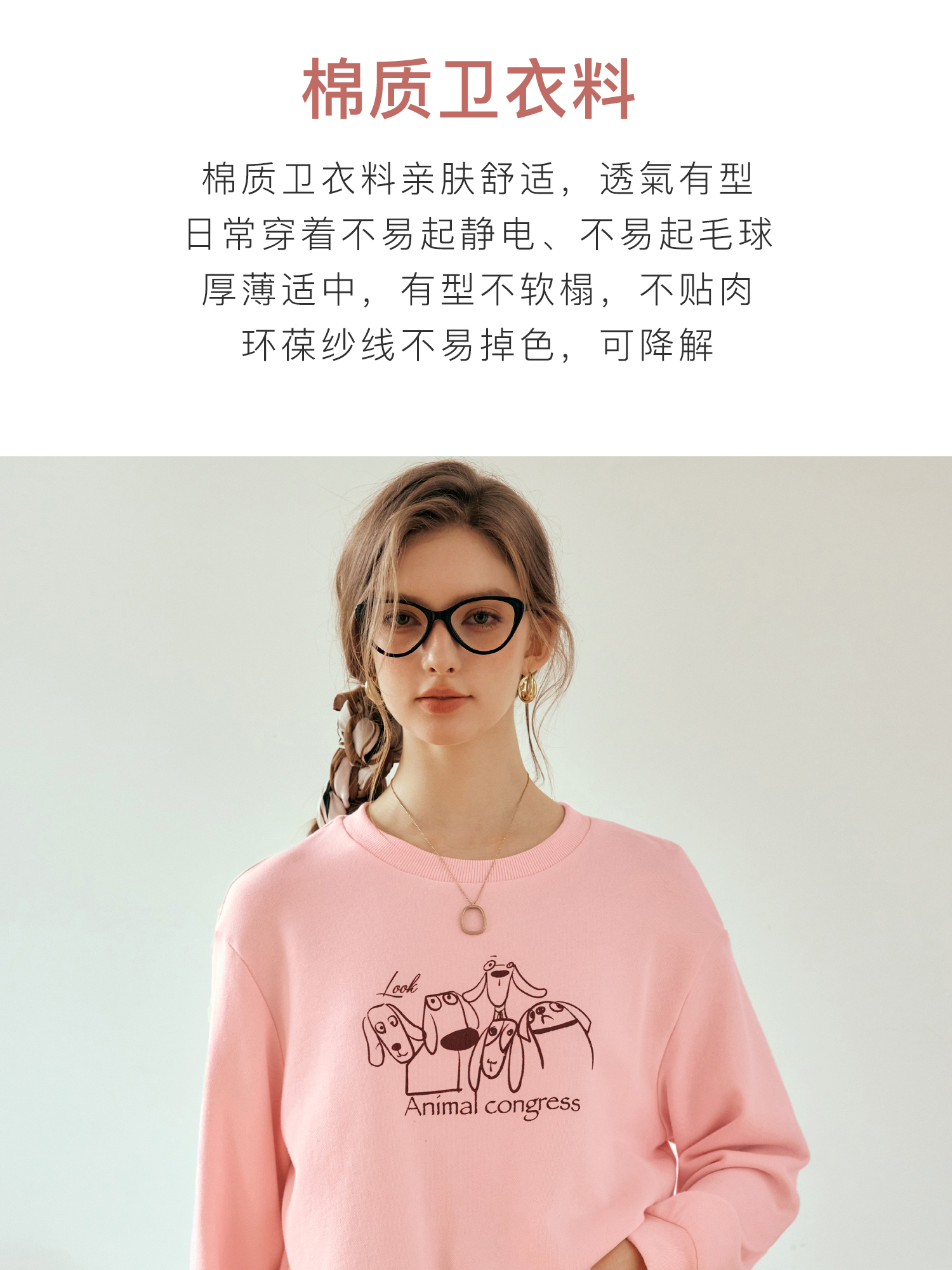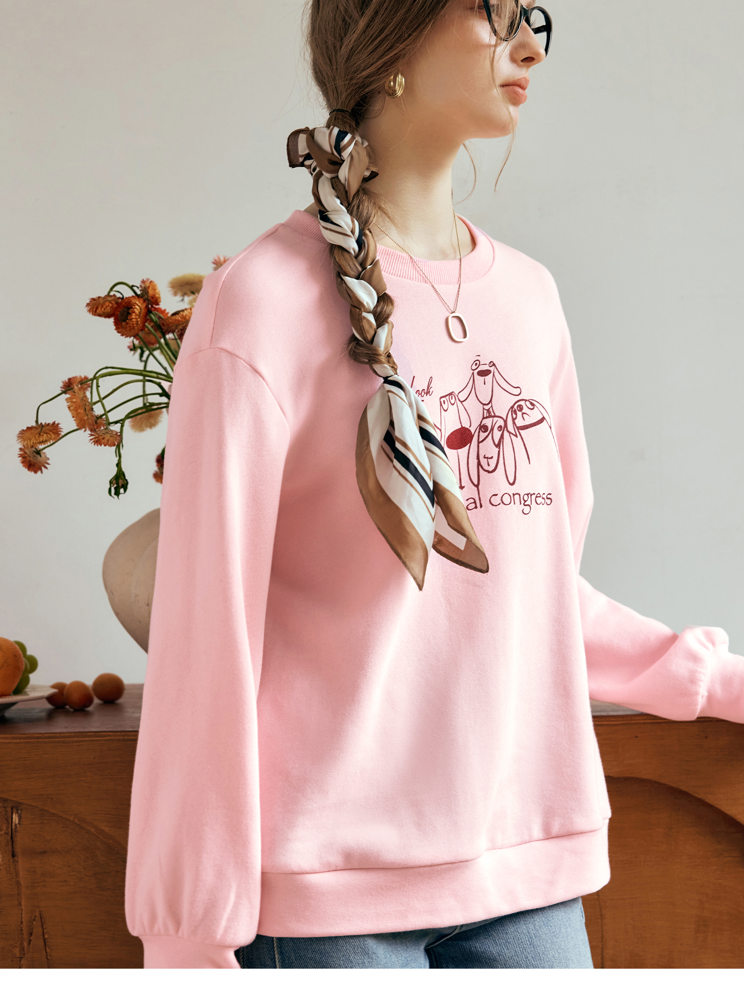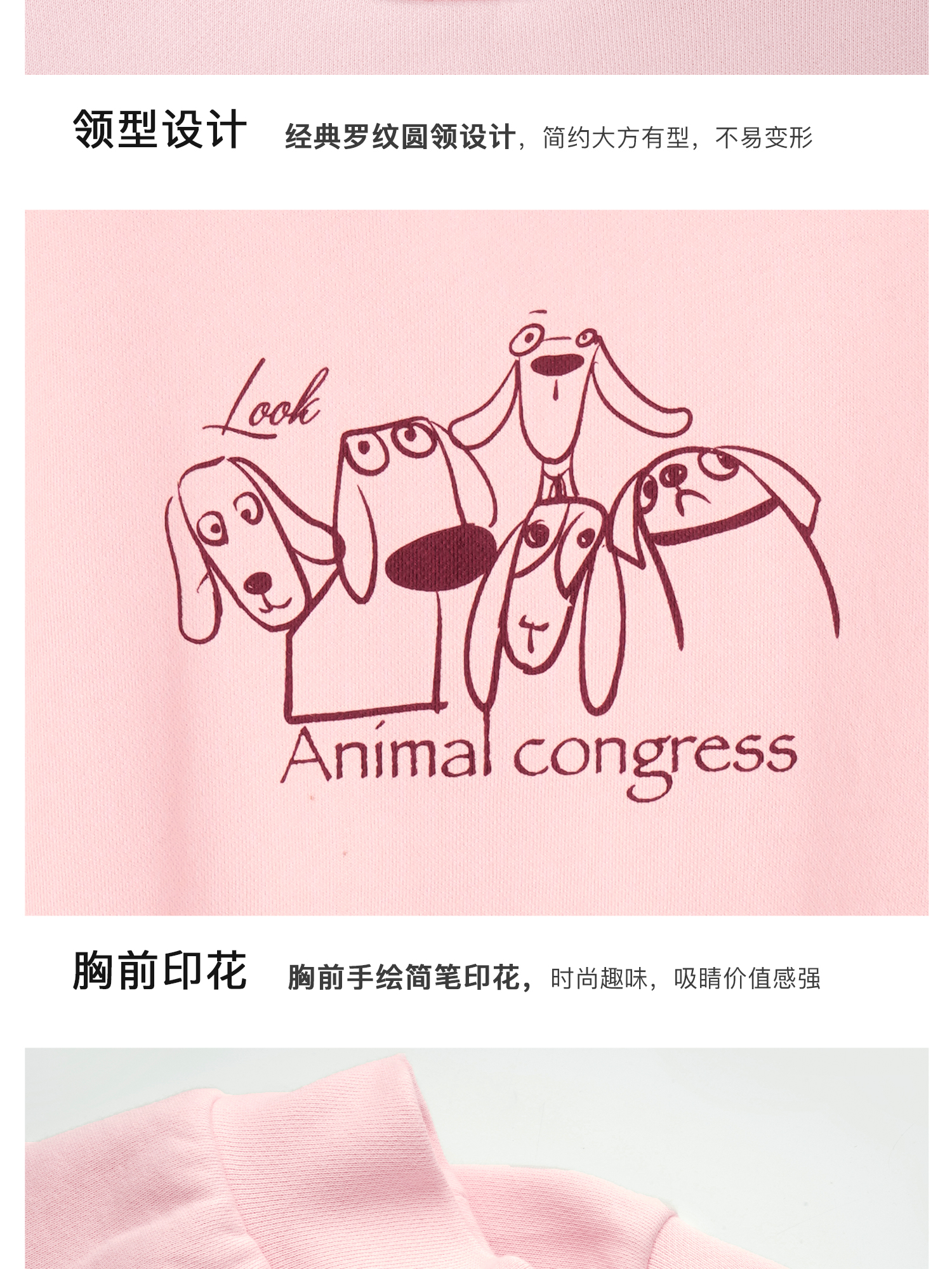 OLrain欧芮儿粉色套头卫衣女秋季2024年新款休闲宽松趣味印花上衣