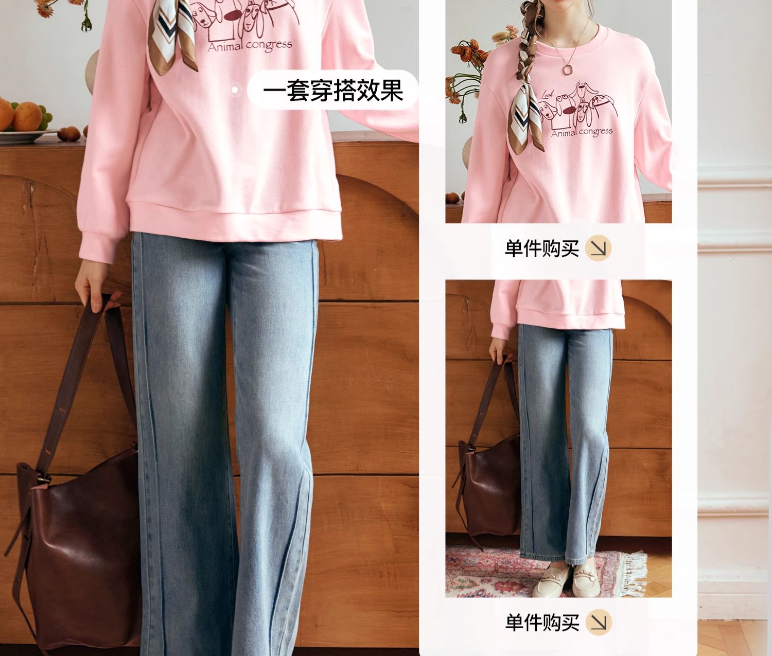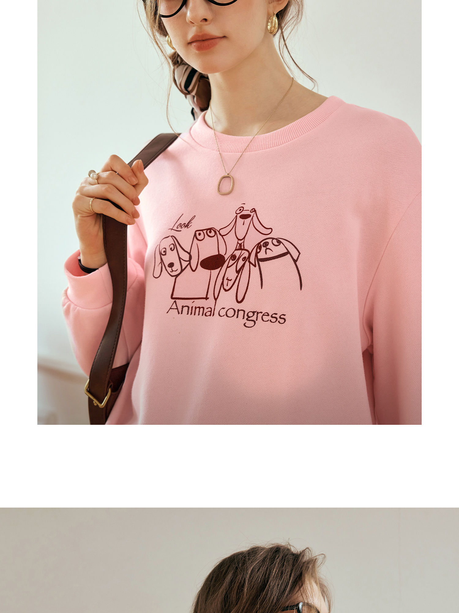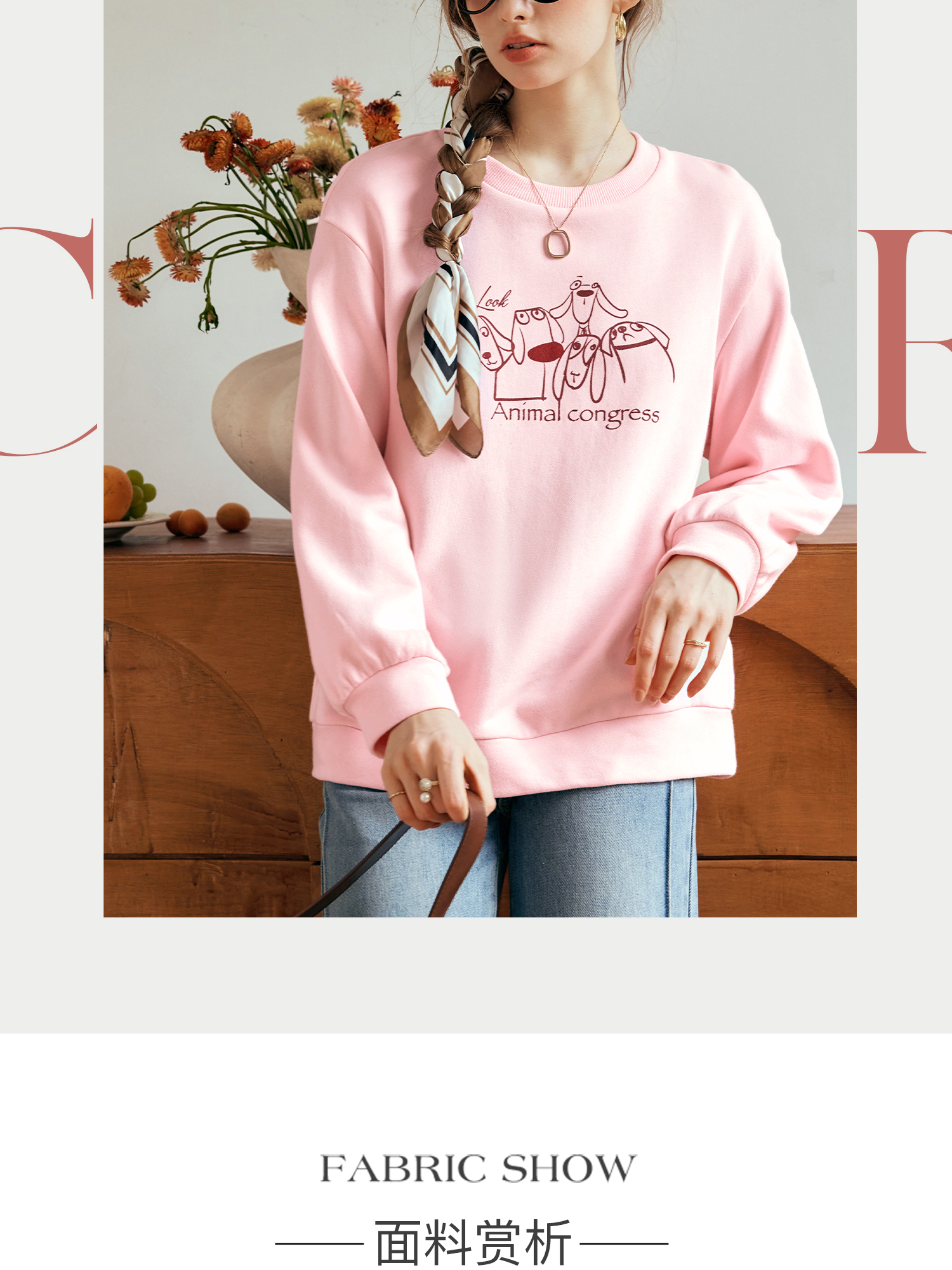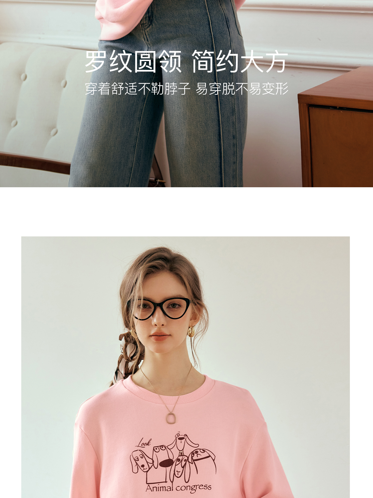 OLrain欧芮儿粉色套头卫衣女秋季2024年新款休闲宽松趣味印花上衣