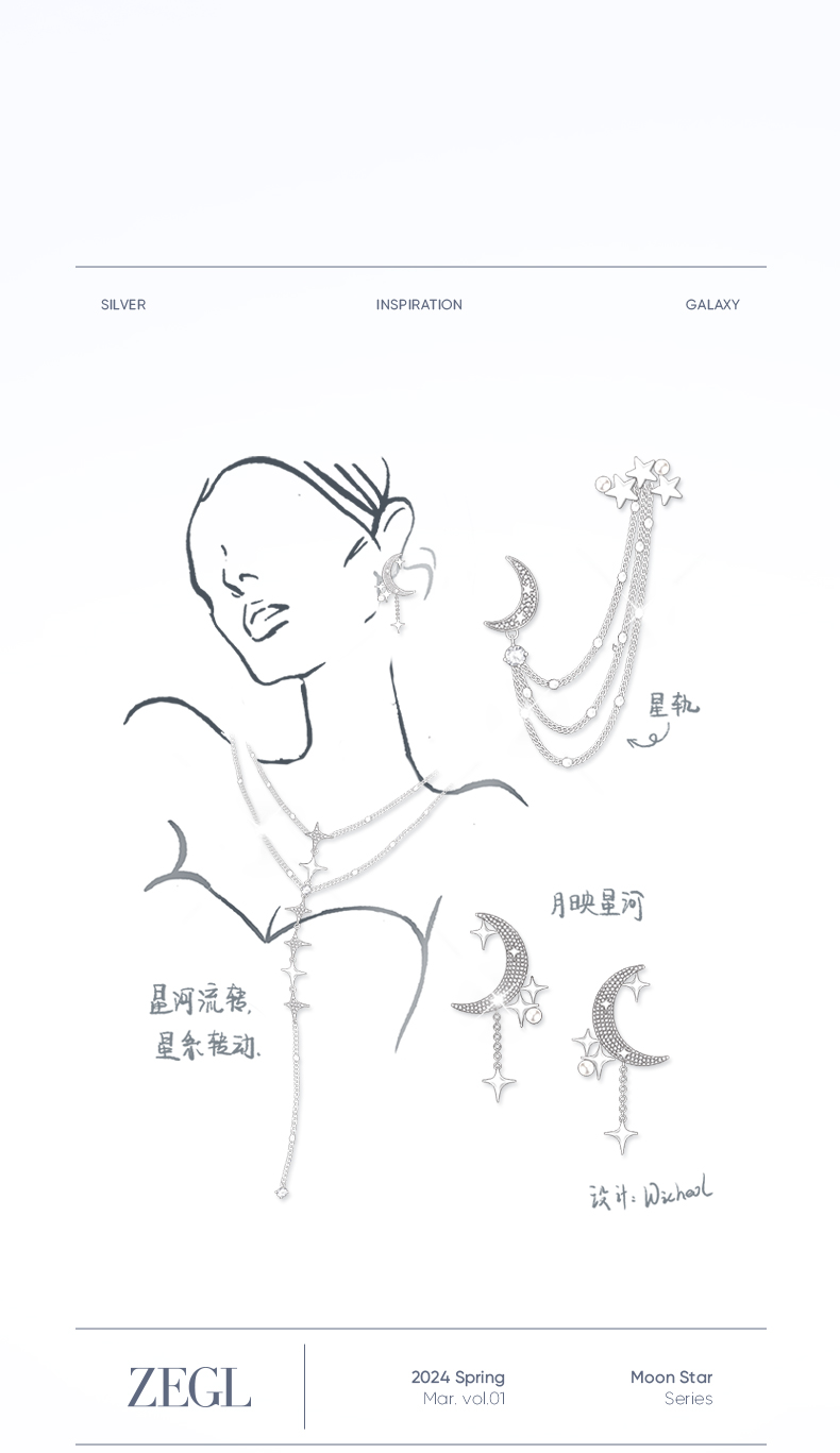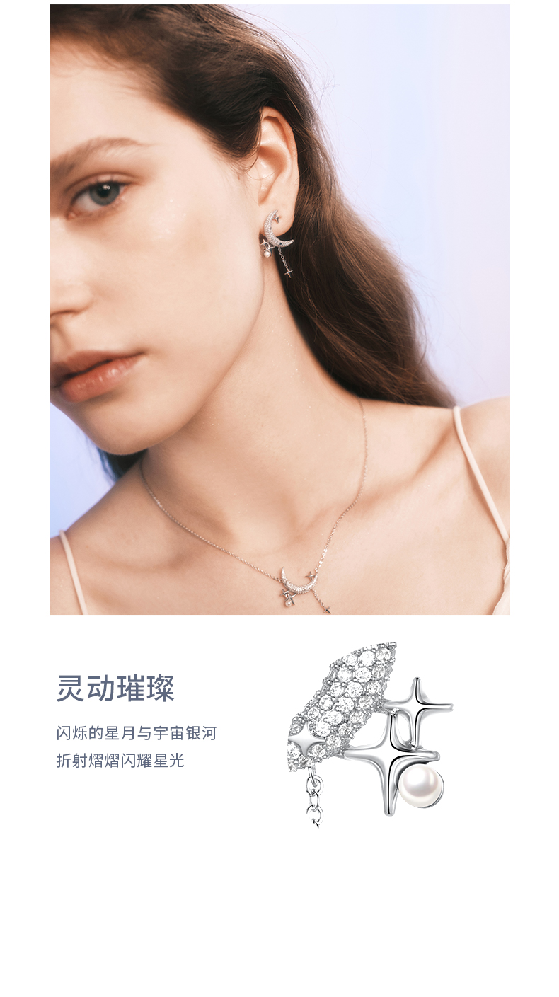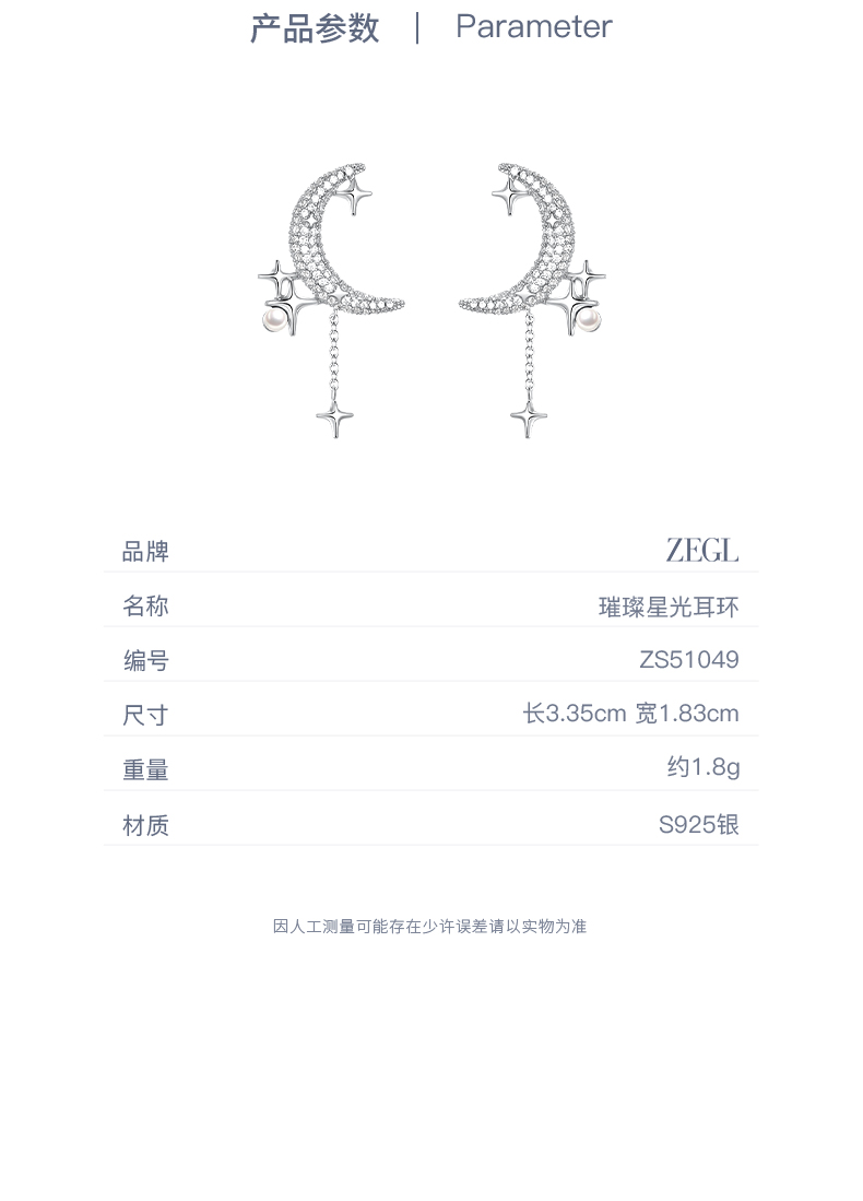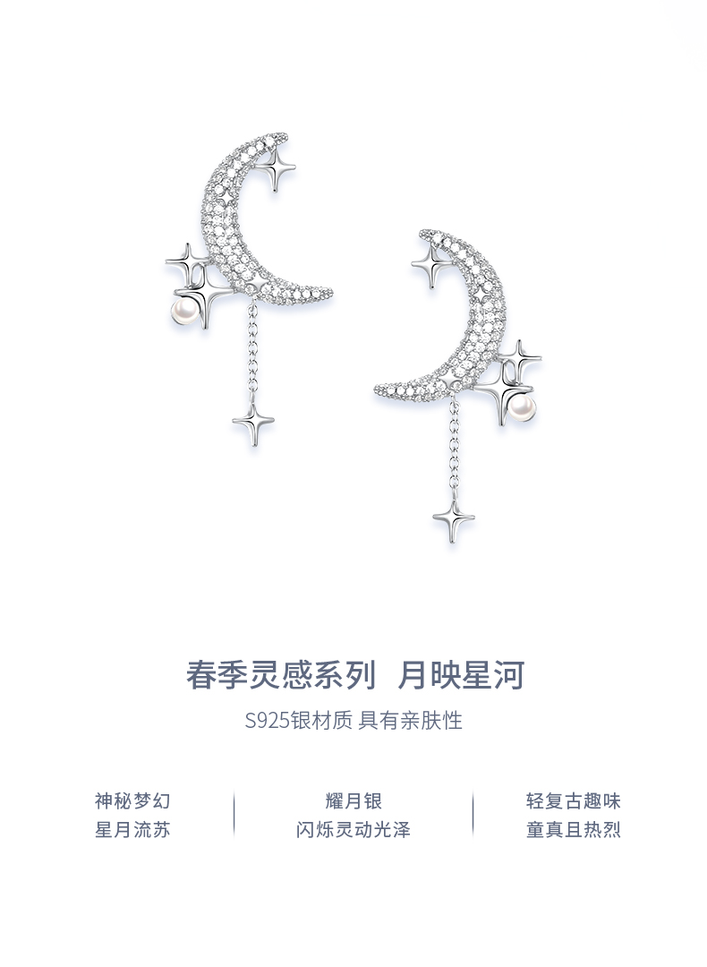 ZEGL设计师月映星河系列925银月亮耳环女2024新款星星耳钉耳饰品
