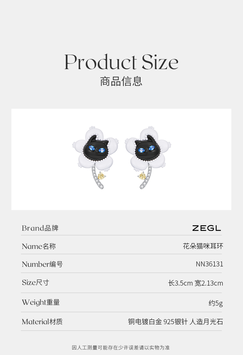 ZEGL设计师猫猫杂货铺系列花朵猫咪耳环