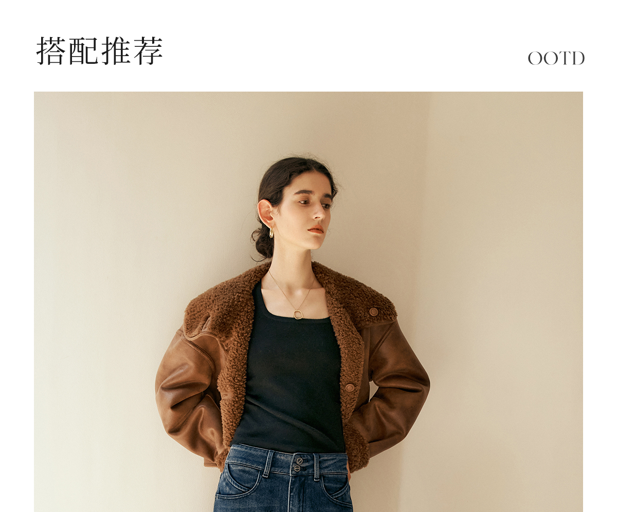 OLrain欧芮儿短款皮草外套女冬季2024年新款时尚保暖皮毛一体皮衣