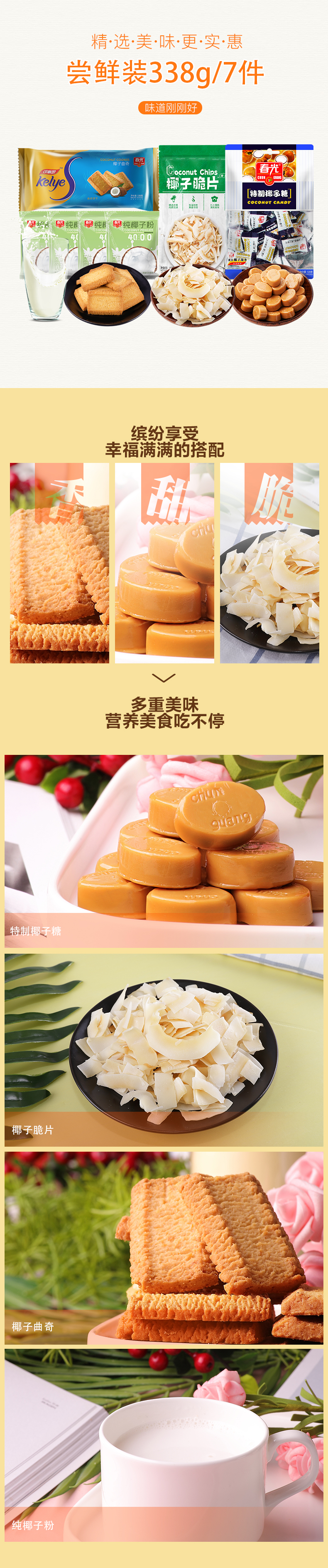 海南“著名手信品牌”春光食品,取材于海南椰子故乡,锁住北纬18°的新鲜美味。在这里,您能了解到春光食品旗舰店的最新优惠,享受优惠到不能说的价格。浓浓椰香,爱上春光!