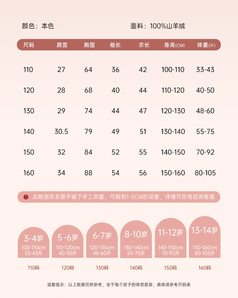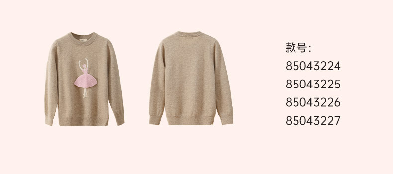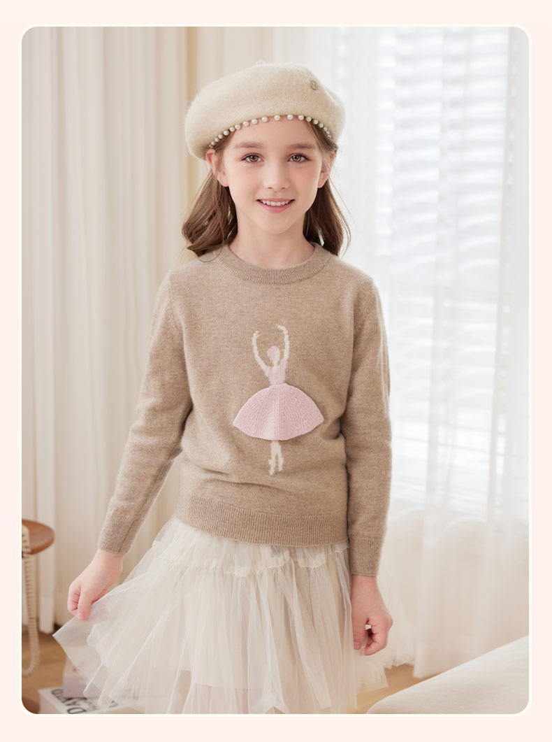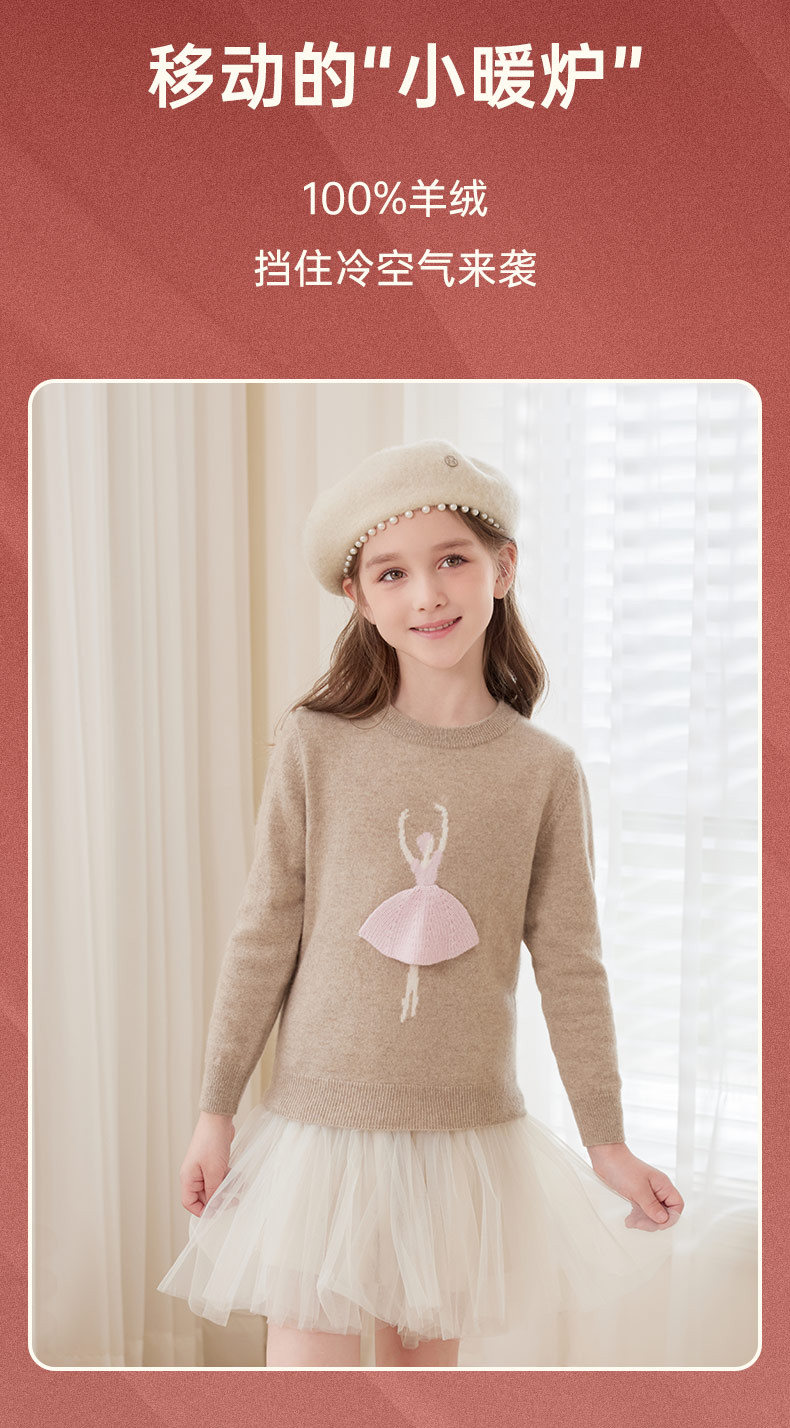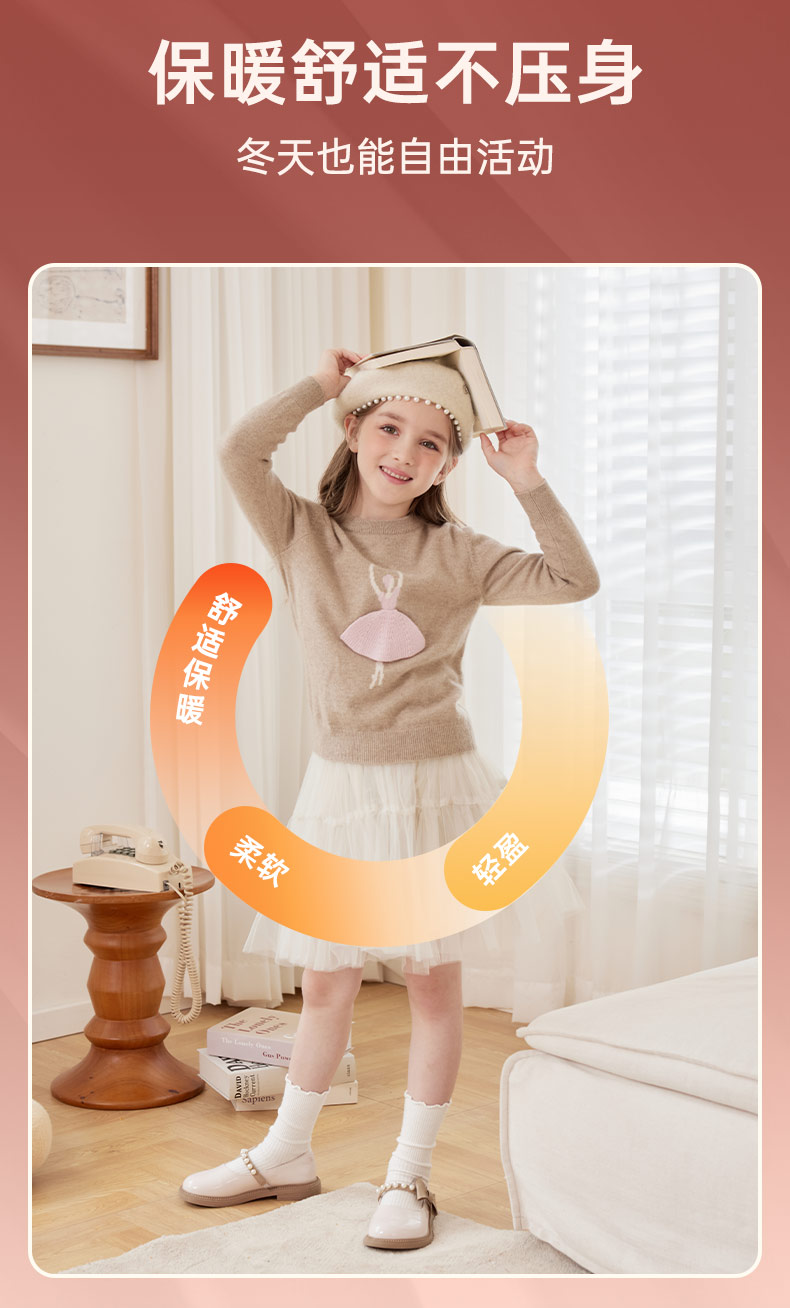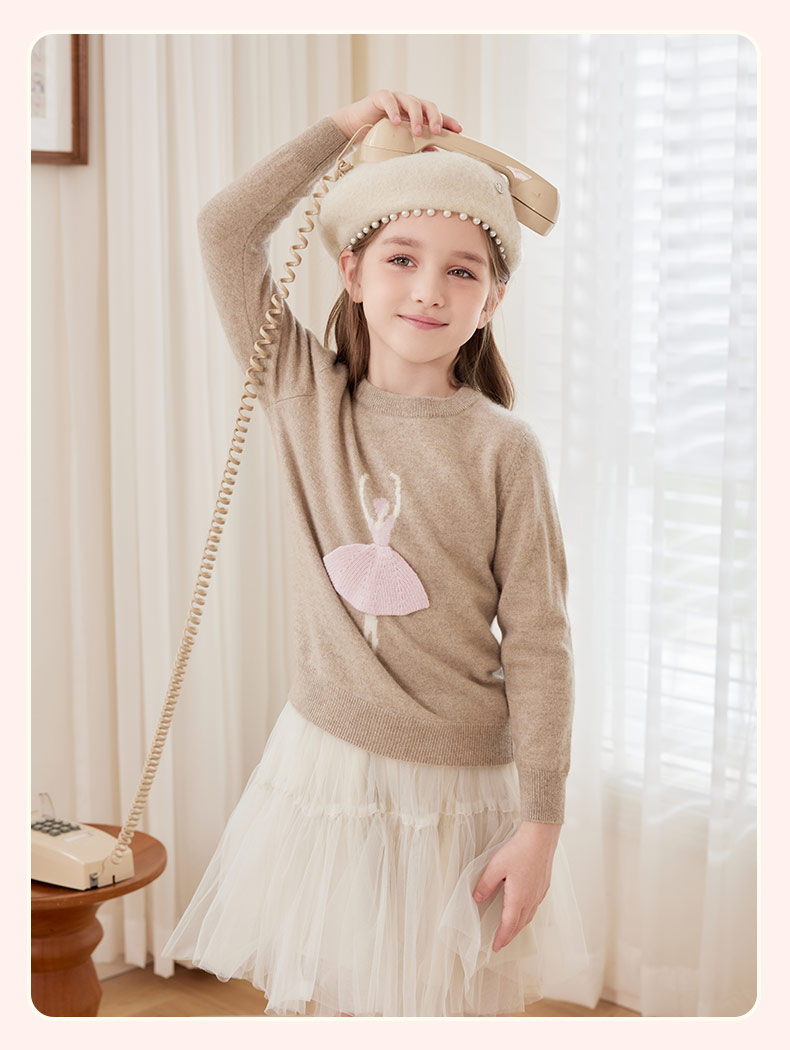 mettekids儿童100%羊绒衫2024秋季新款女童杏色毛衣甜美针织衫