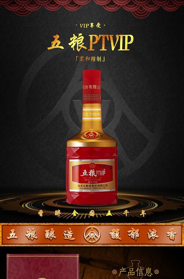 五粮PTVIP柔和精制52度纯粮白酒500mL