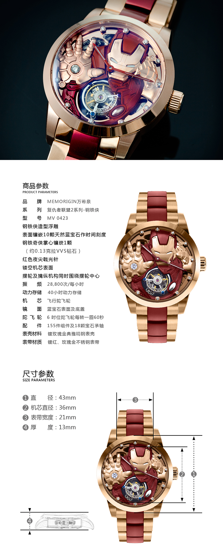 MEMORIGIN万希泉复仇者联盟陀飞轮机械腕表男钢铁侠美国队长手表