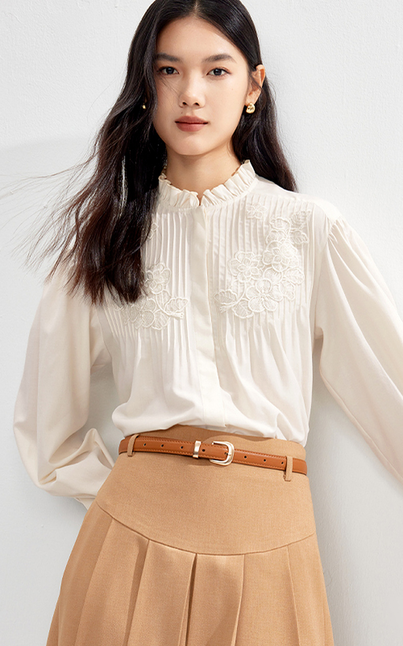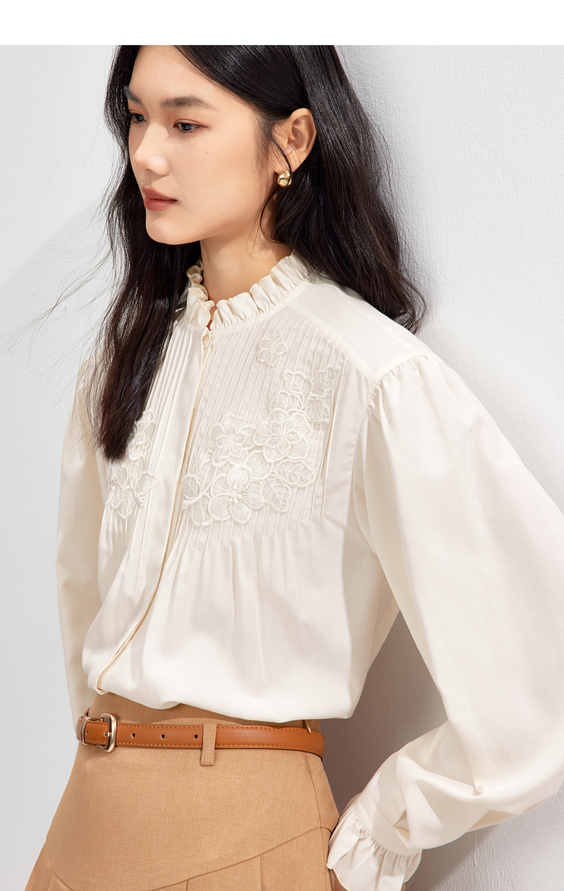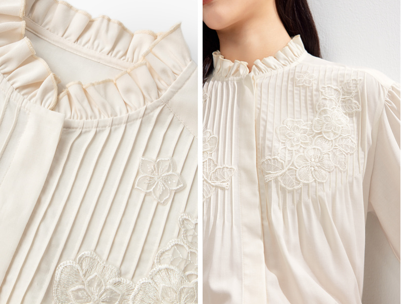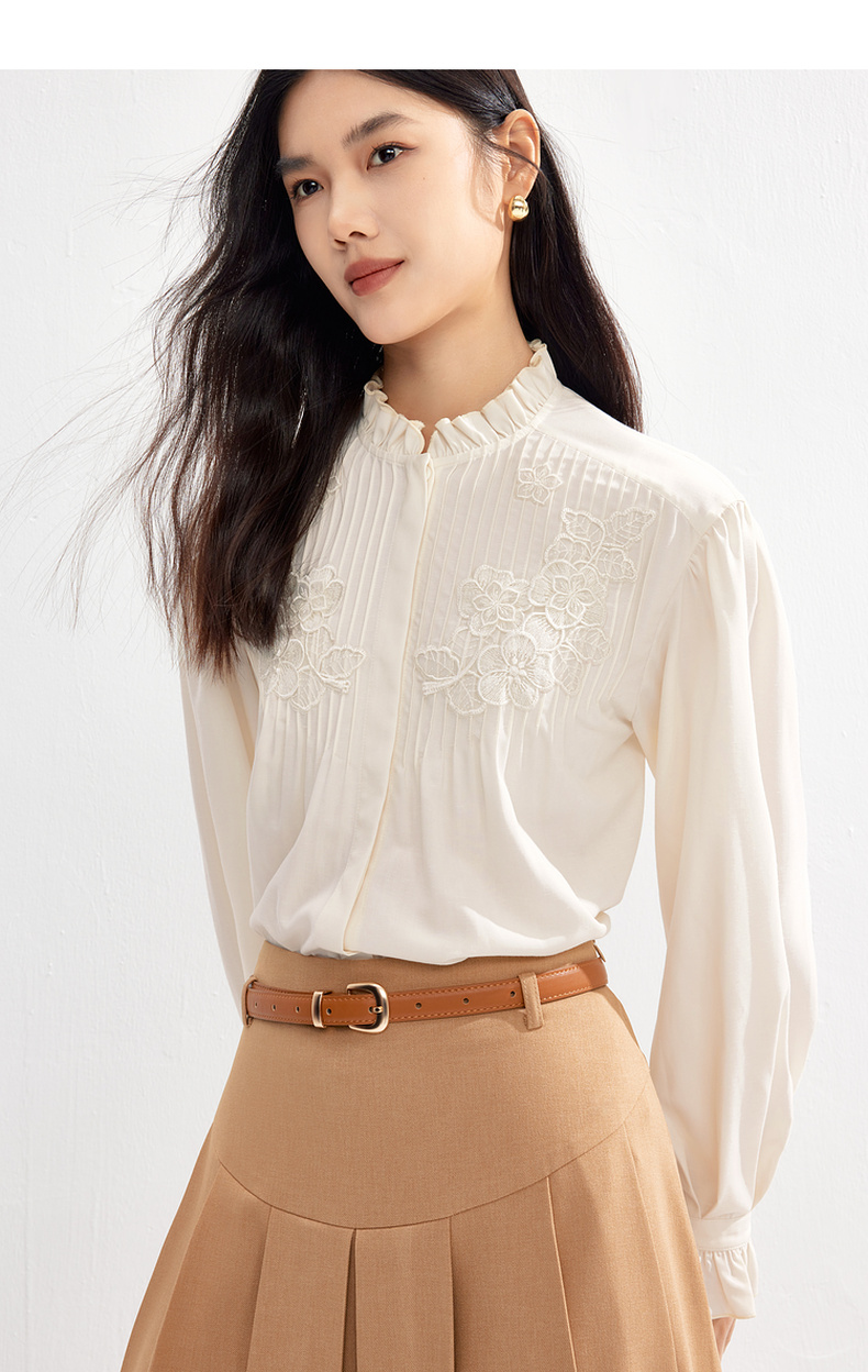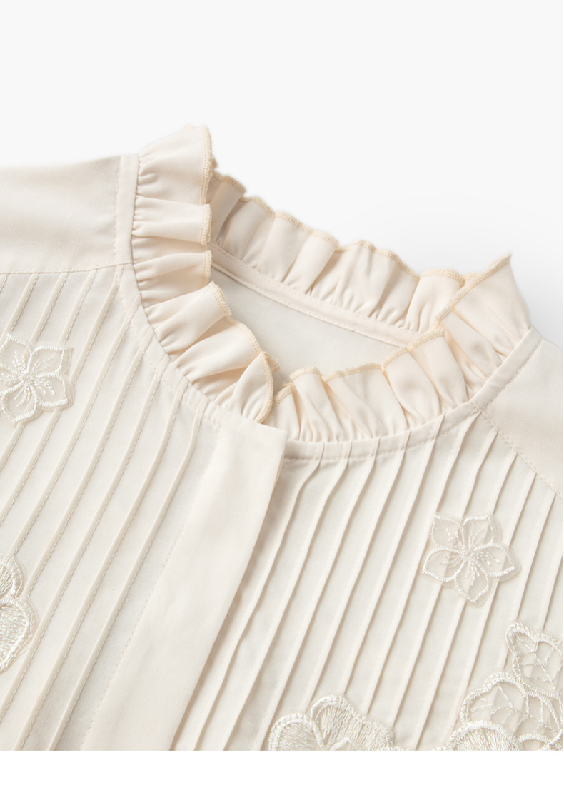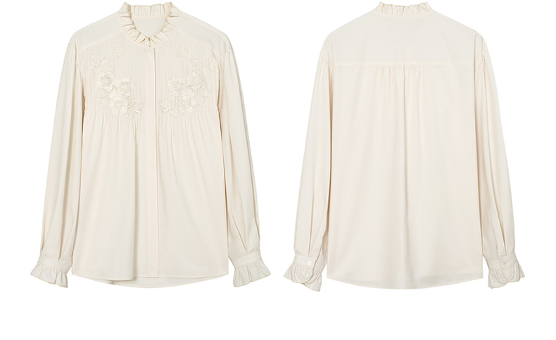 【严选】伊芙丽春优雅女性化精致蕾丝绣花立体化设计木耳边设计小上衣1F1921291