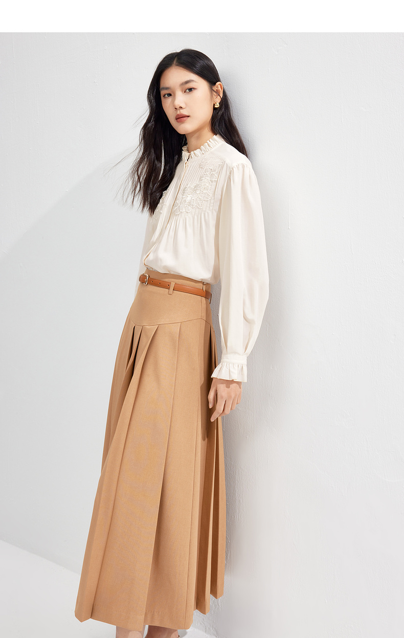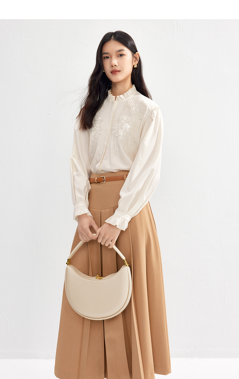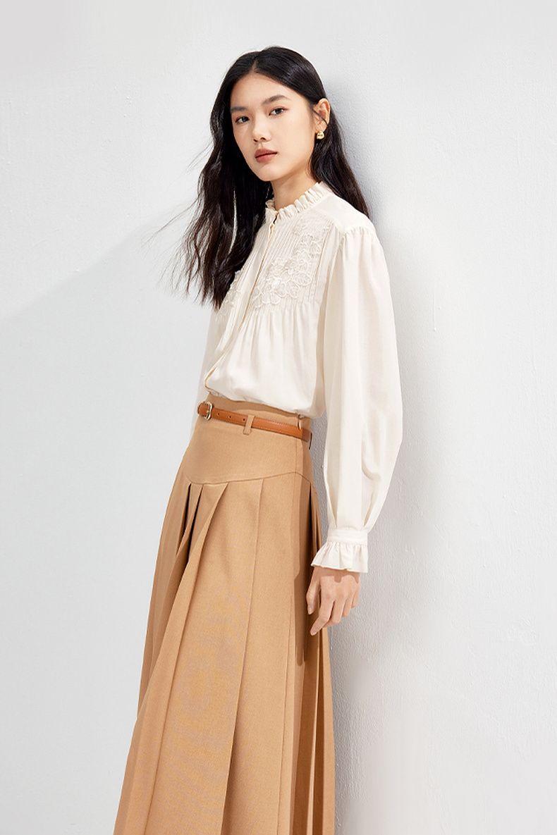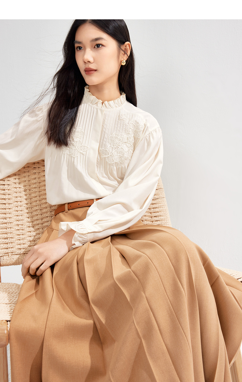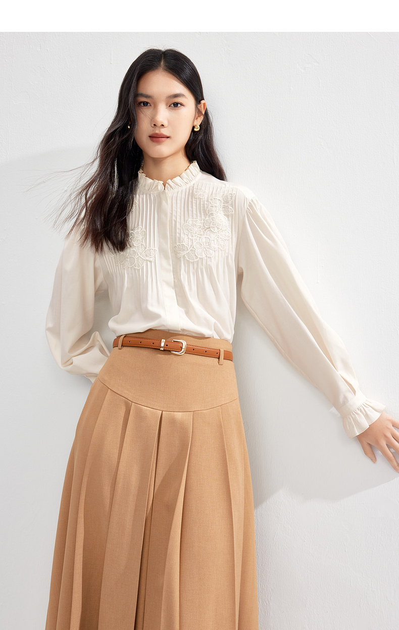 【严选】伊芙丽春优雅女性化精致蕾丝绣花立体化设计木耳边设计小上衣1F1921291