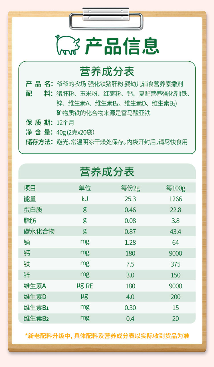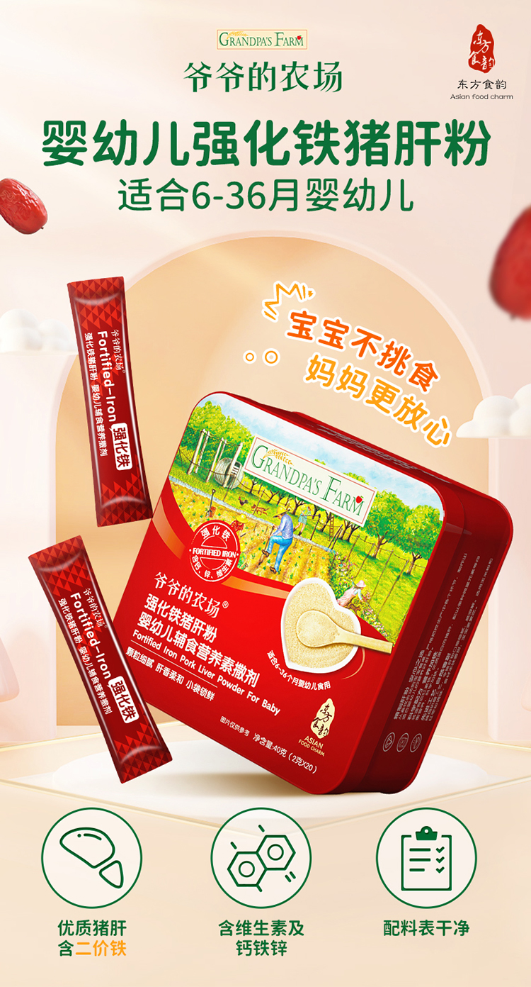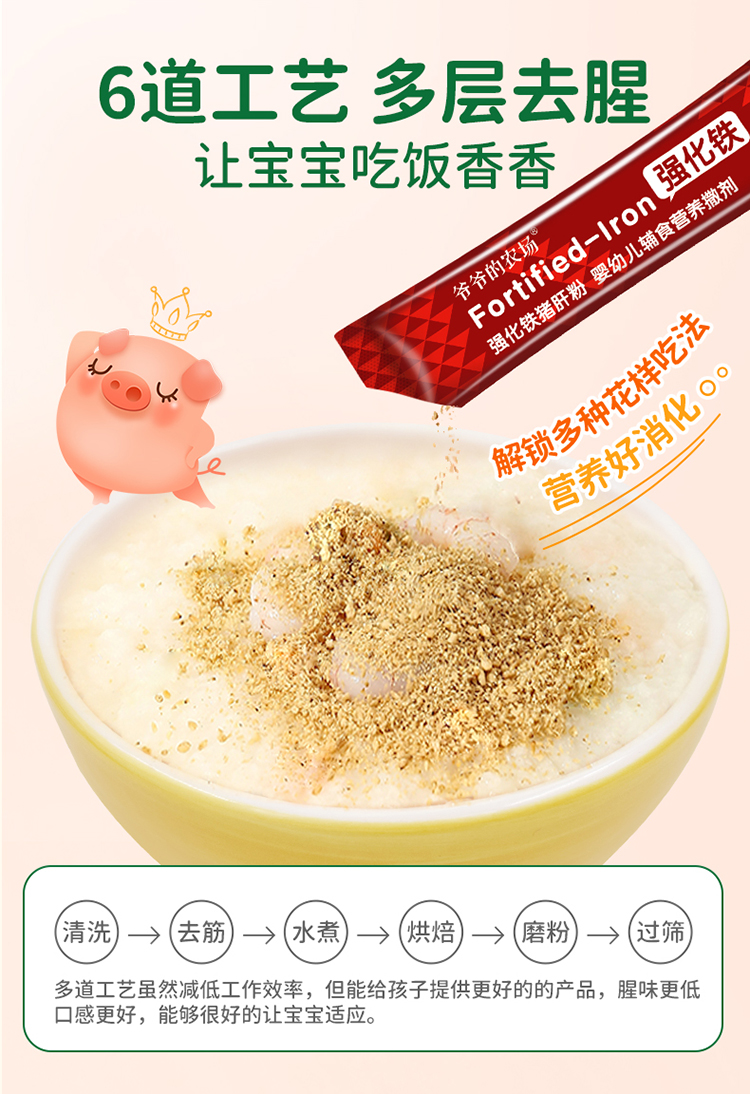 【7种营养】爷爷的农场婴幼儿强化铁猪肝粉40g+短面50g*2