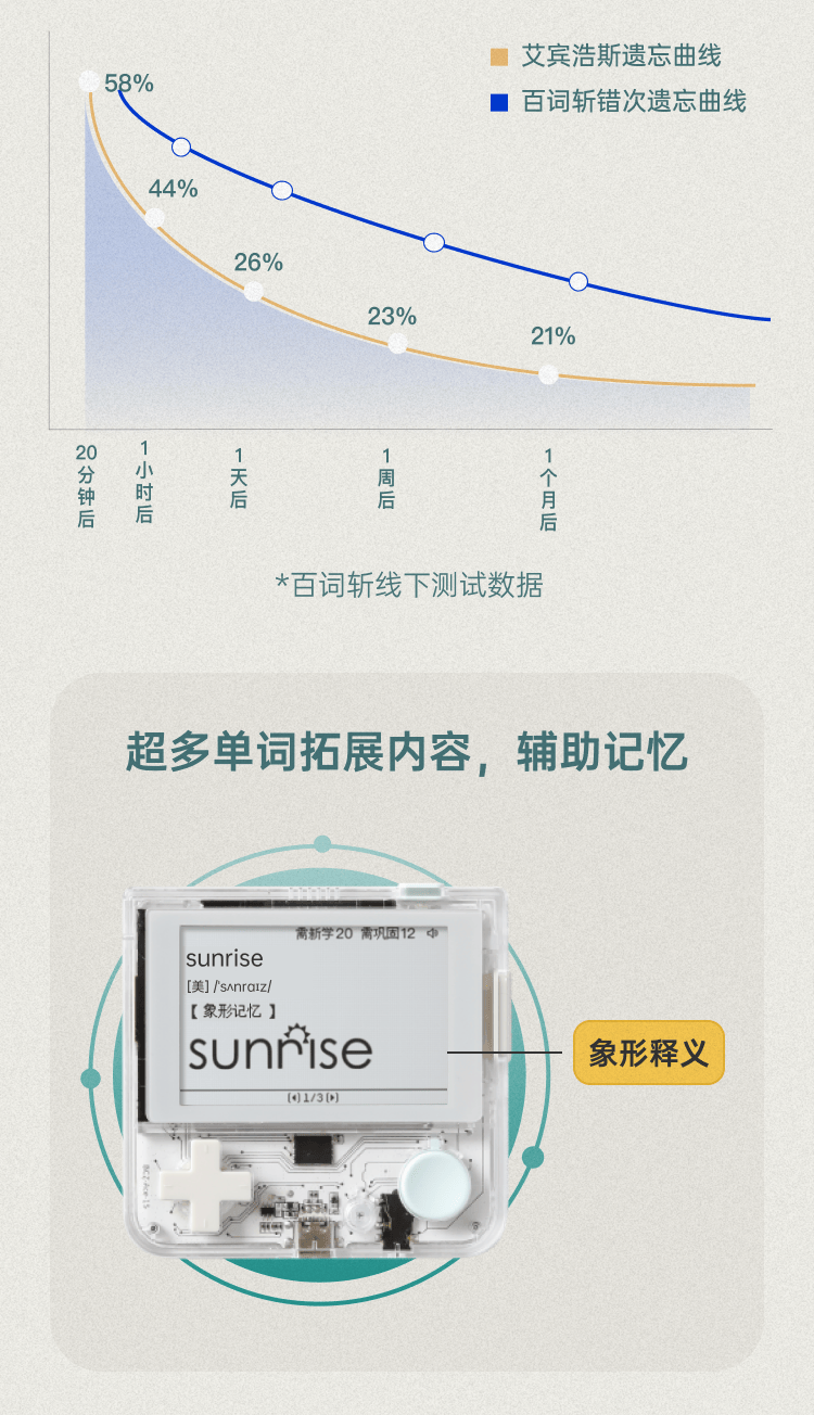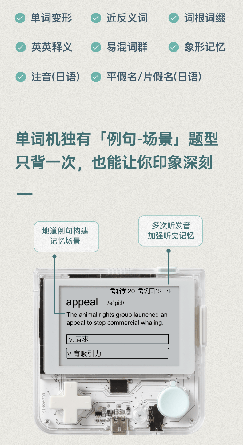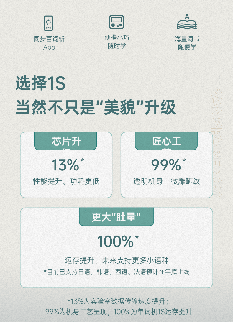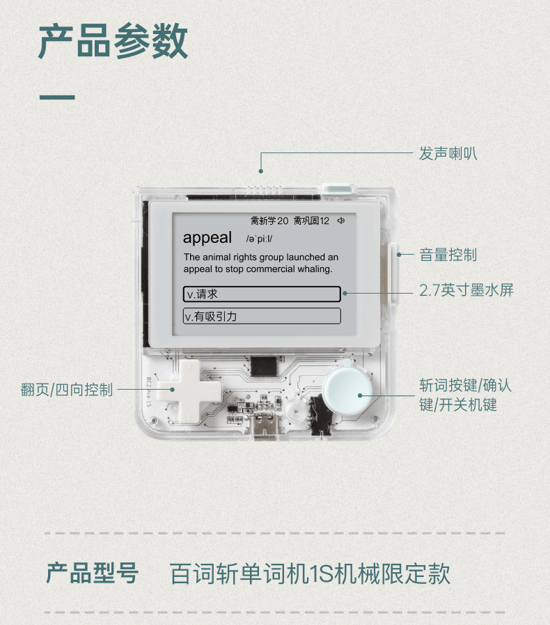 【百词斩单词机】机械款 1S口袋单词机便携式真人外教发音电子单词卡记背单词神器小初高英语日语单词机学习机礼物