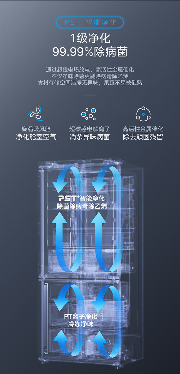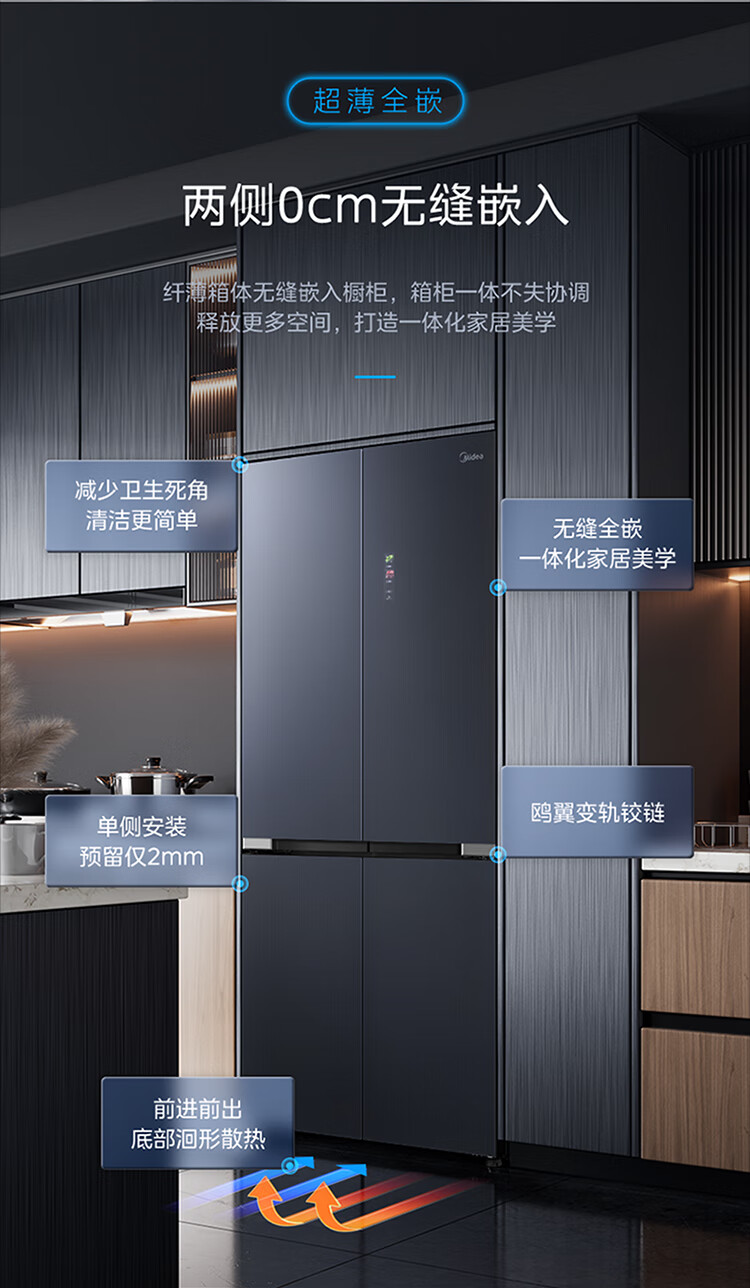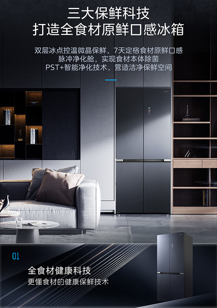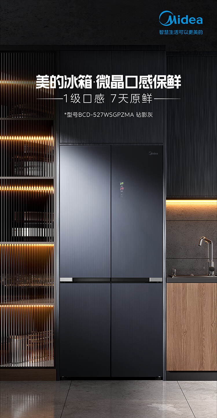 美的(Midea)527升十字四门一级能效冰箱保鲜净味除菌超薄家用电冰箱BCD-527WSGPZMA钻影灰