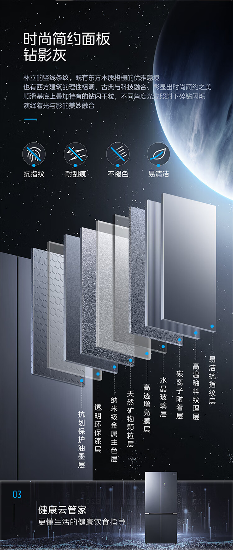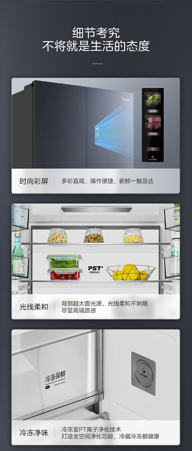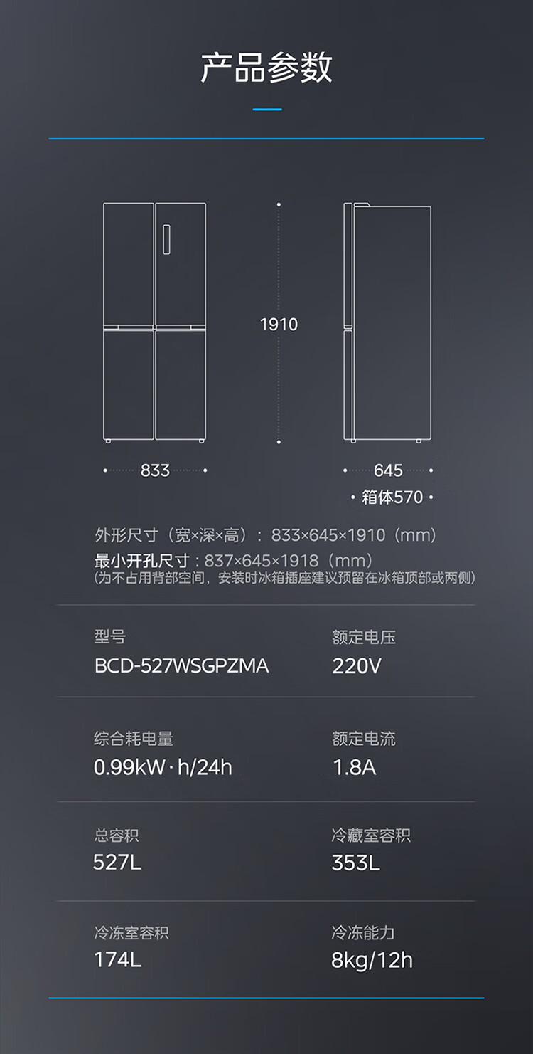 美的(Midea)527升十字四门一级能效冰箱保鲜净味除菌超薄家用电冰箱BCD-527WSGPZMA钻影灰