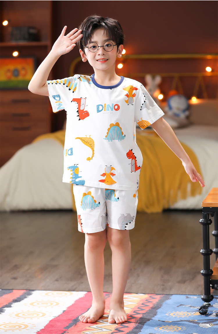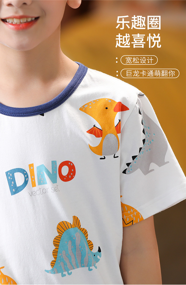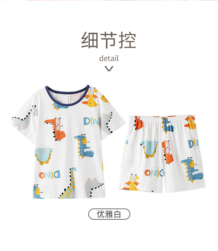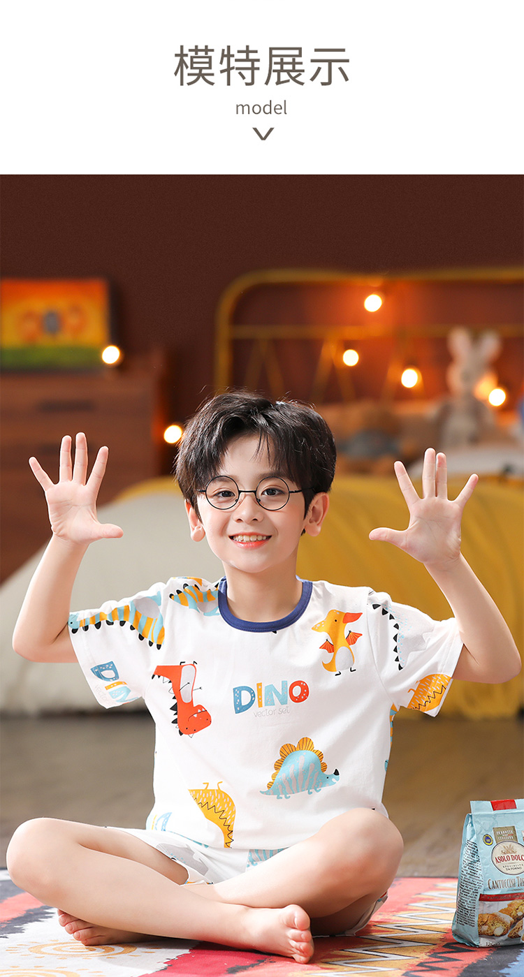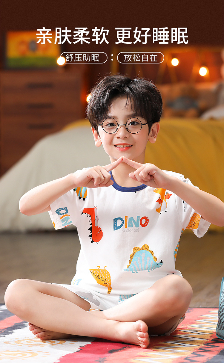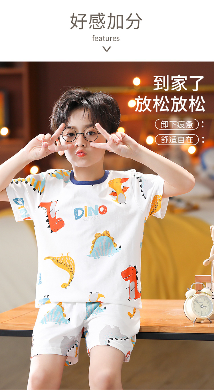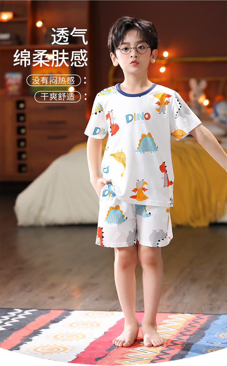 芬腾夏季男童睡衣短袖短裤宝宝纯棉薄款卡通儿童小男孩家居服套装
