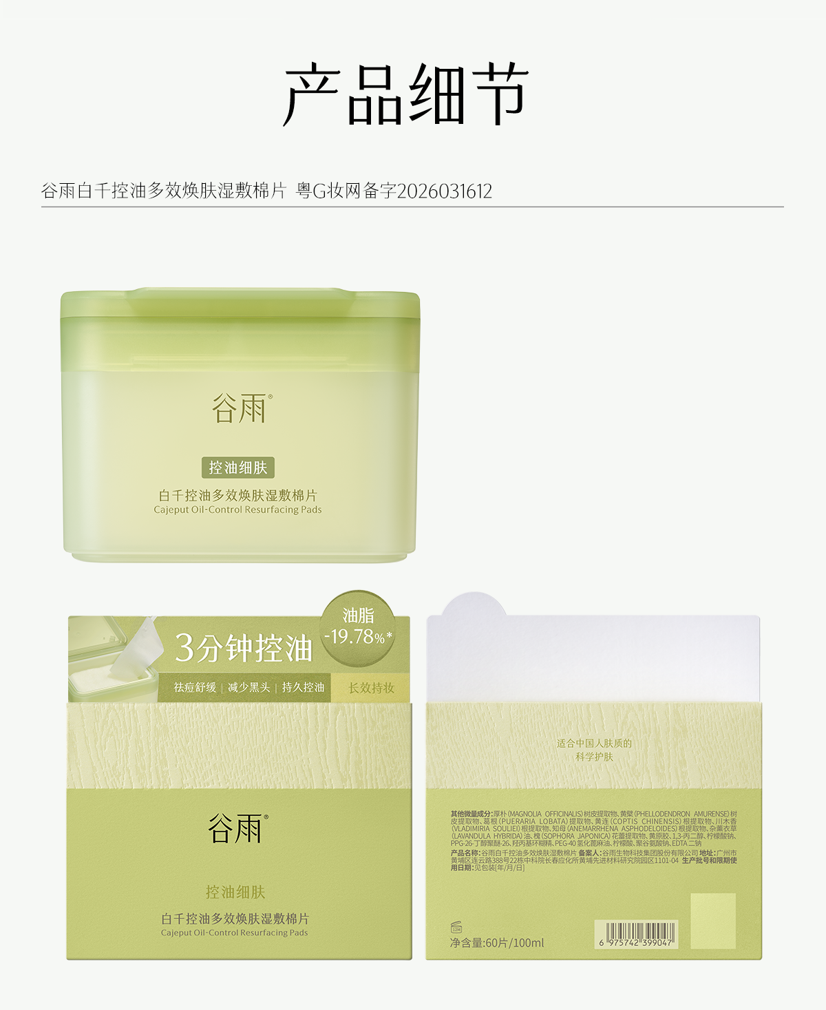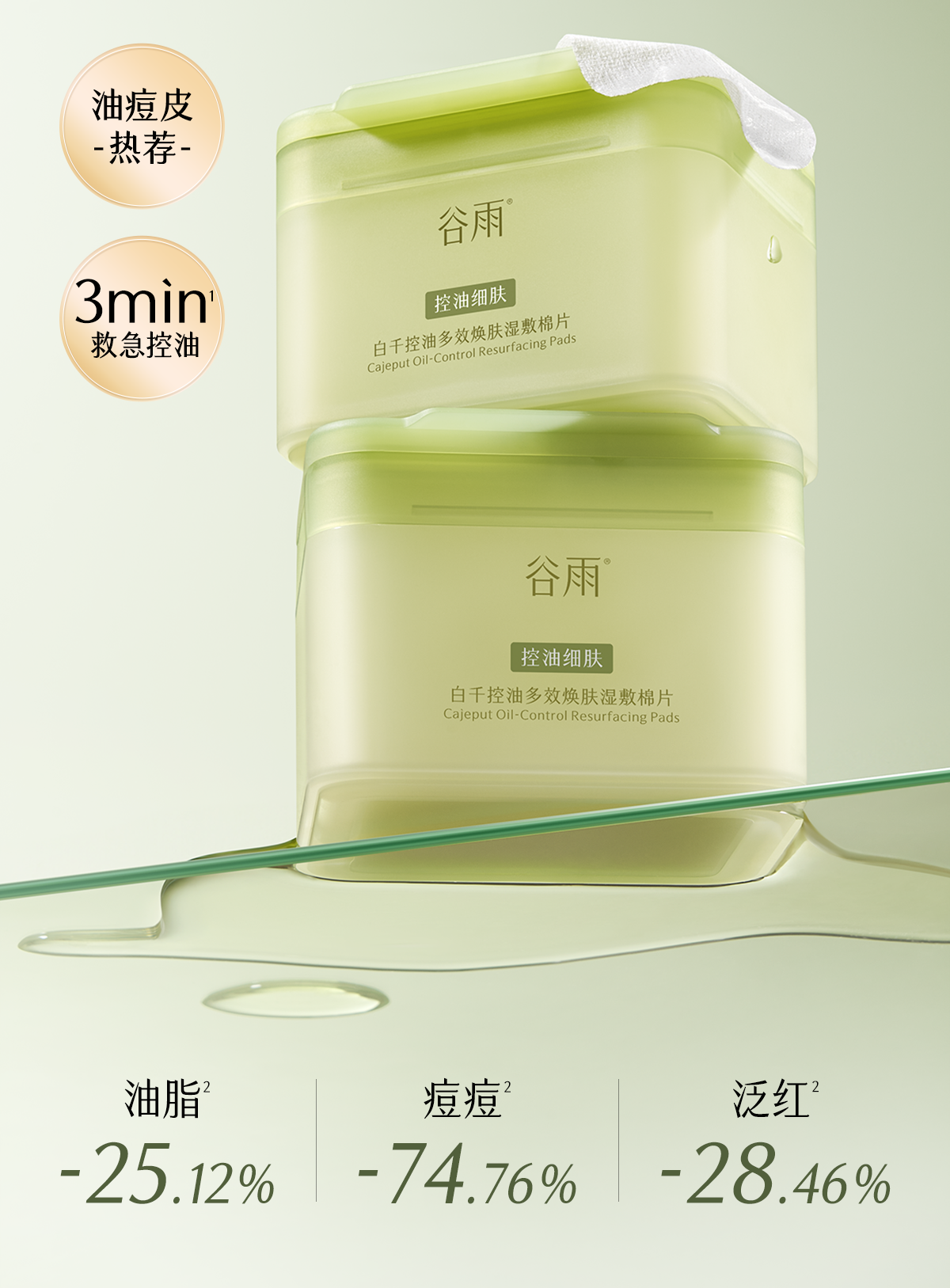 【十周年庆典】谷雨重磅星品净贴贴 白千控油多效焕肤湿敷棉片 痘肌适用