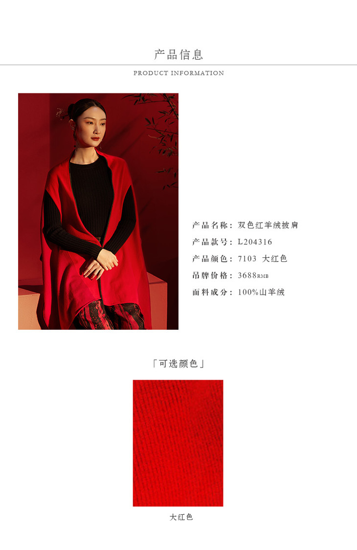 TANGY Collection/天意精品冬季新品新年特辑双色红羊绒披肩