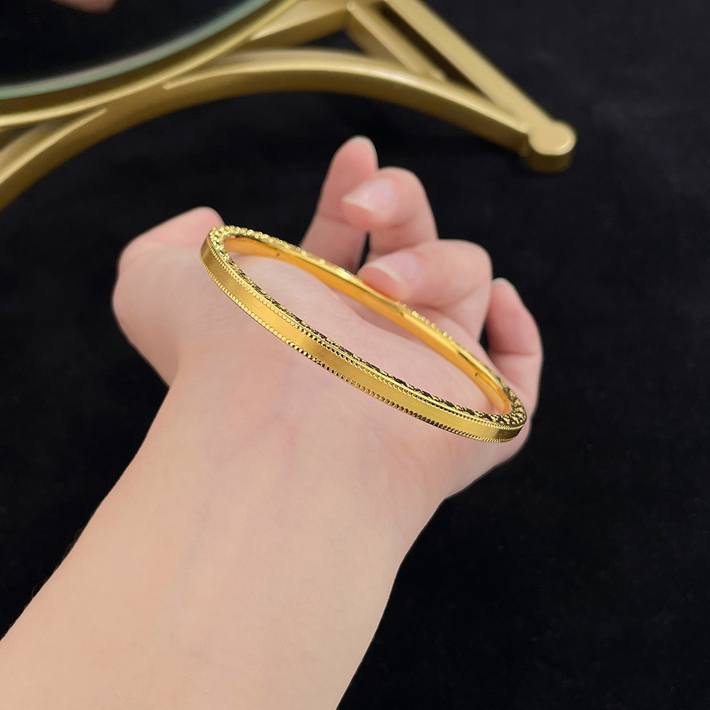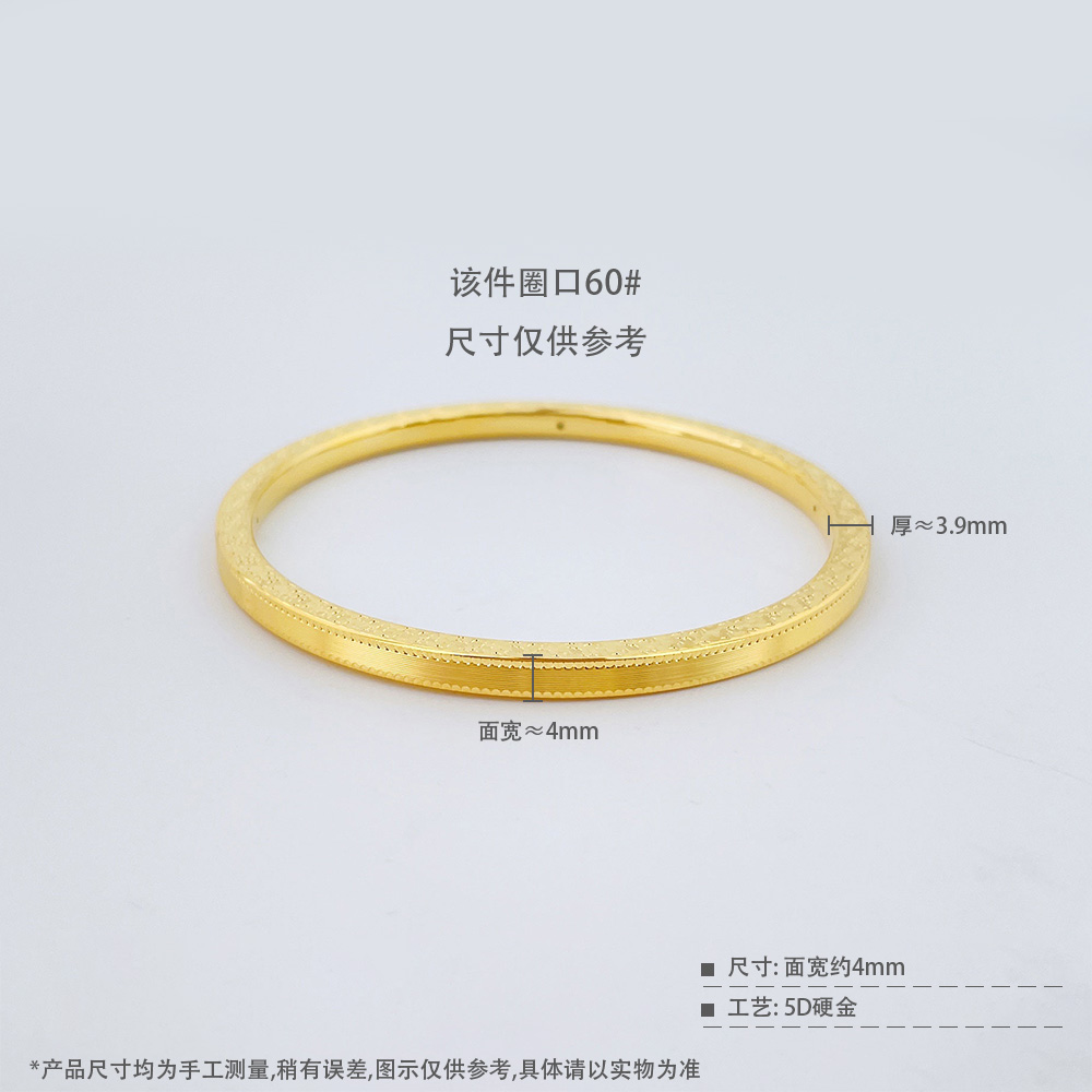 【限时克减150元】足金 #碎碎冰 无氰5D空心固口手镯双侧边CNC碎冰冰四方手镯(面宽约3.8-4.2mm)(AR5DSZ10005),(预售产品下单后不退款不退货不换货不补差价)