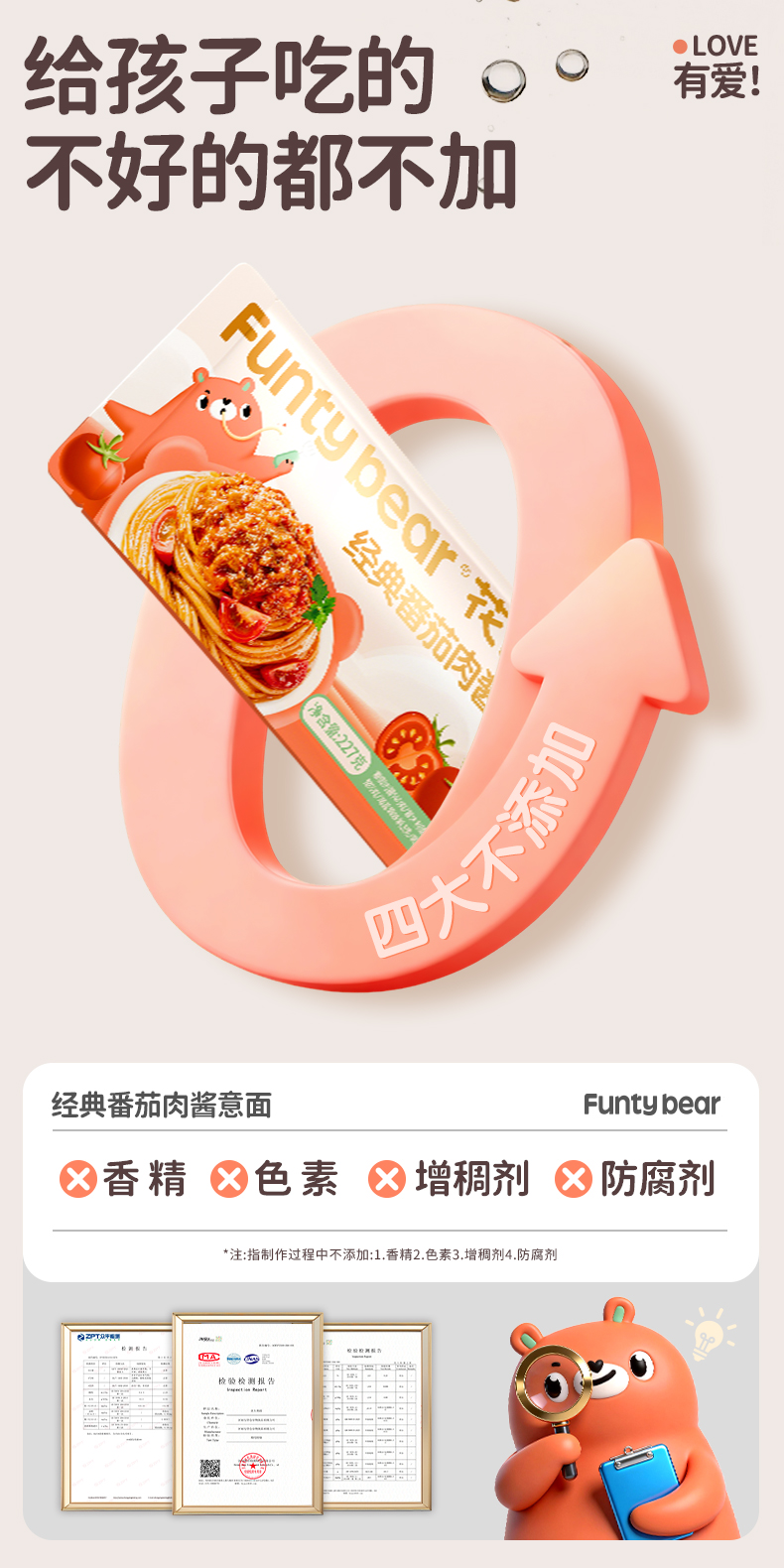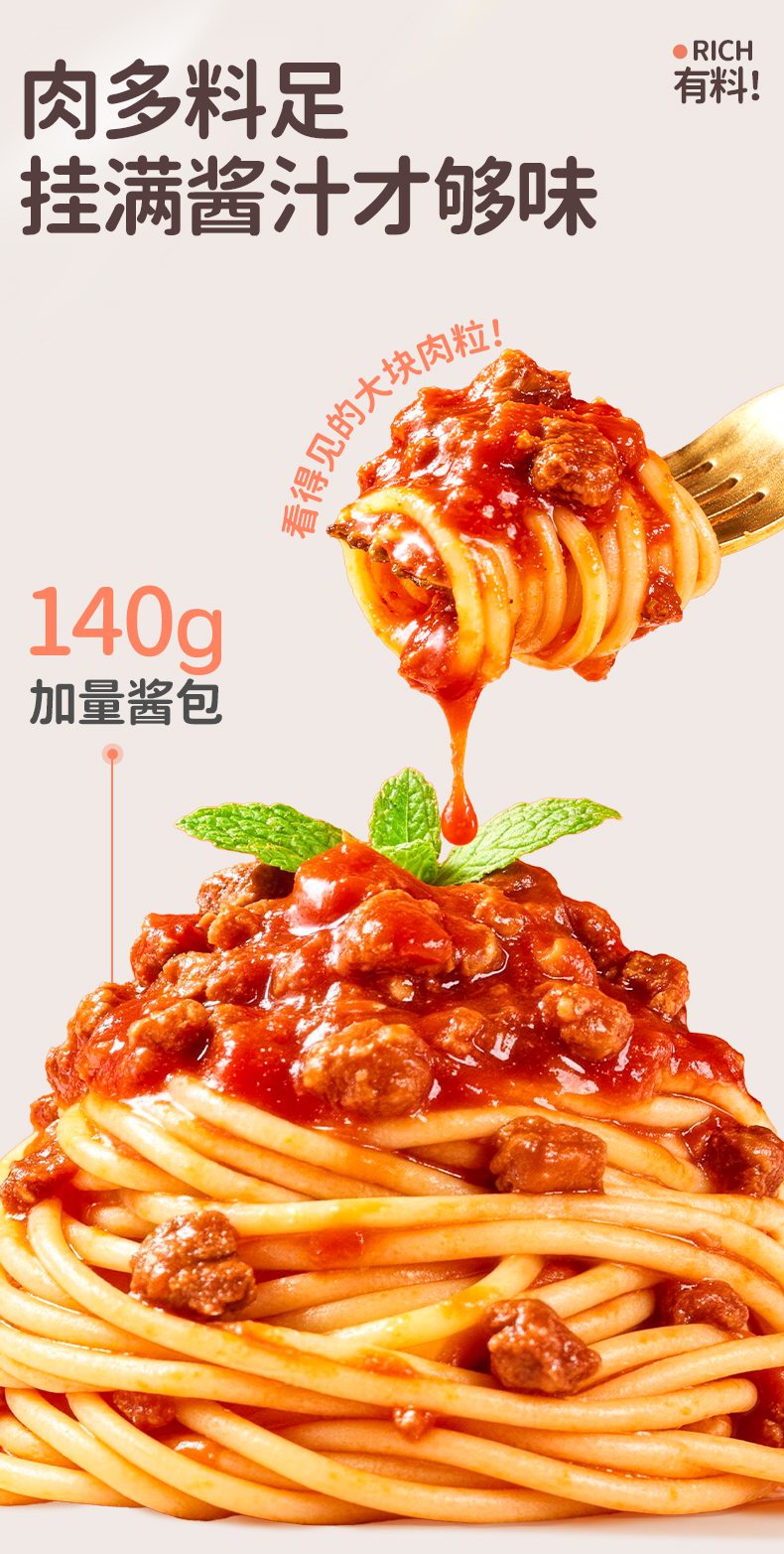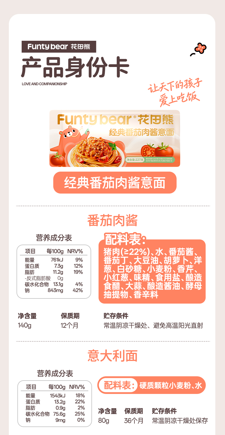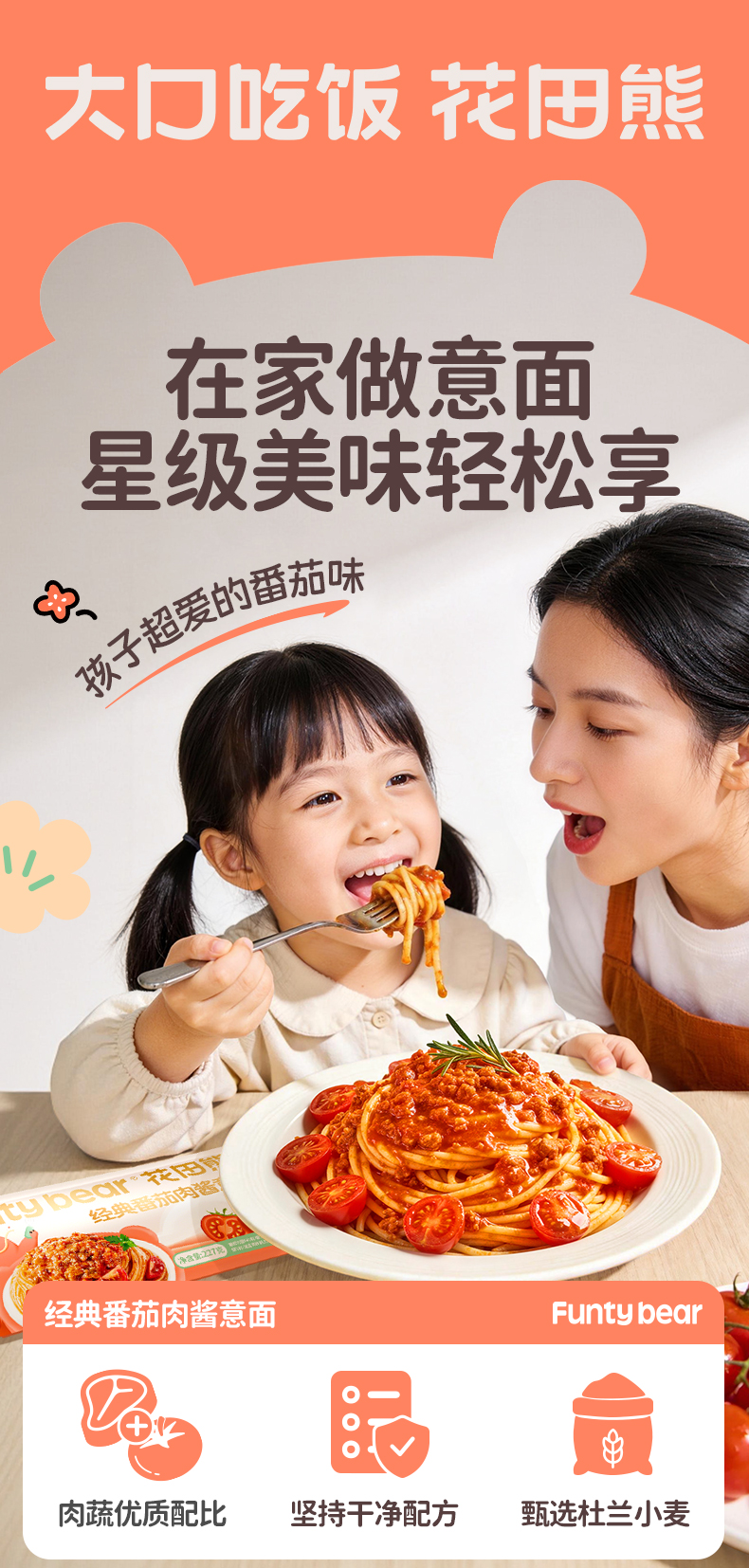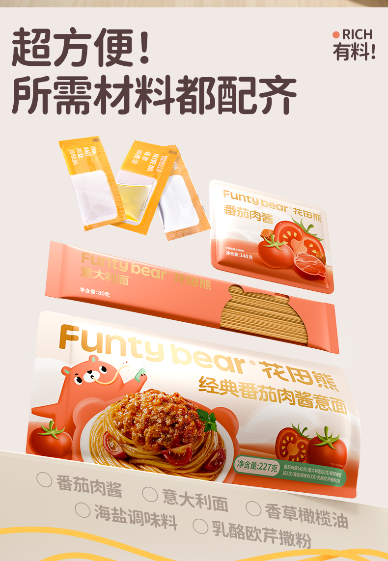 花田熊意大利面儿童经典番茄肉酱意面早餐速食意式面条fs