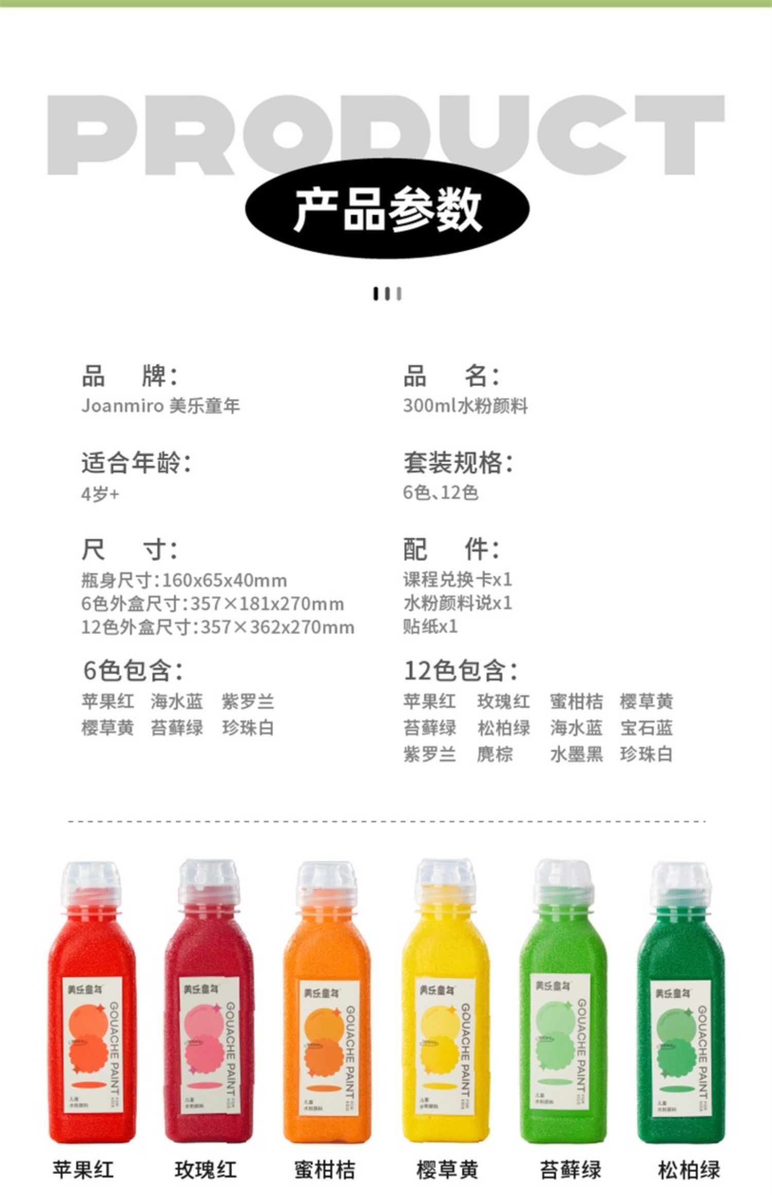【云优选】美乐童年水粉颜料儿童无毒水粉颜料套装美术生专用白色颜料色彩颜料可水洗水粉画工具套装画画颜料全套 4岁+