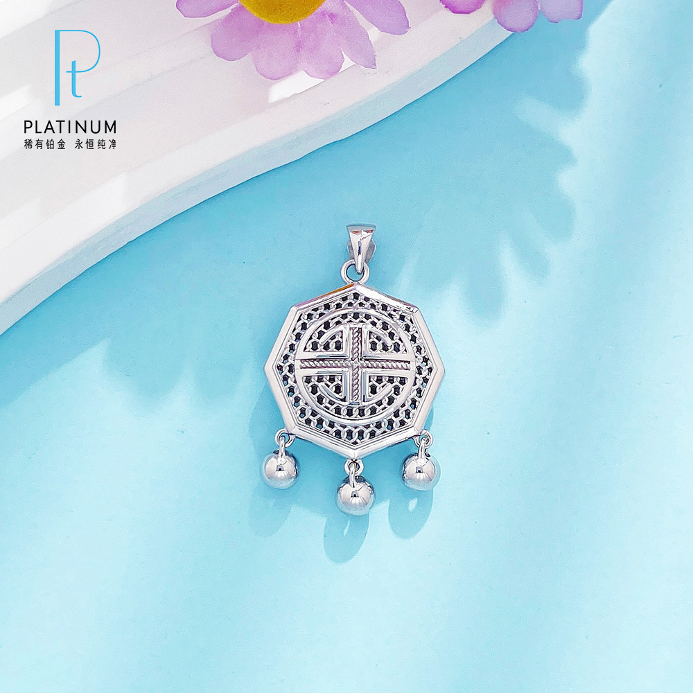 【限时8.8折】PT950 【国际铂金协会】铂金镂空铃铛流苏十字八角锁包吊坠(ACPTDZ00033)预售产品下单后不退款不退货不换货不补差价)预售产品下单后不退款不退货不换货不补差价