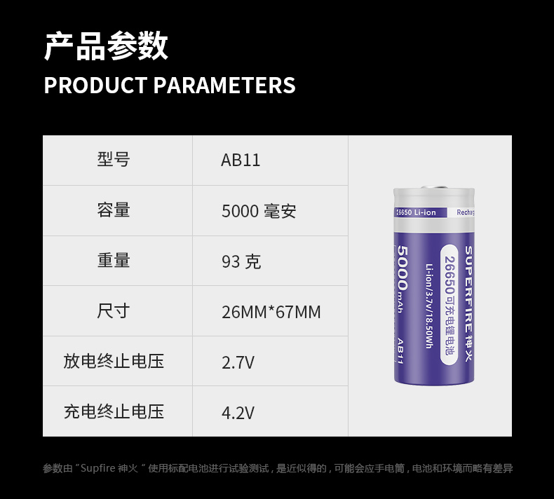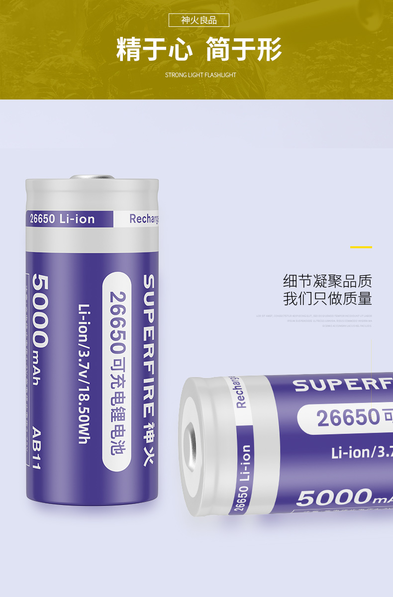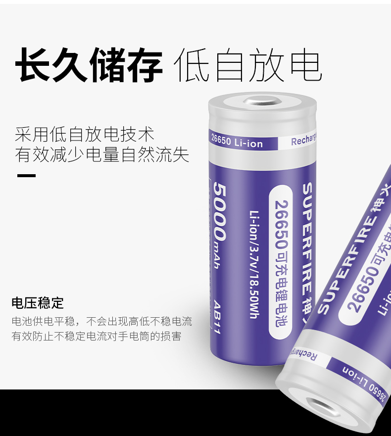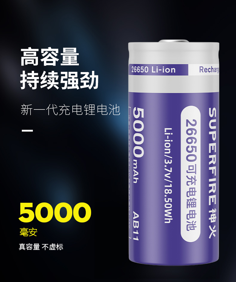 SUPERFIRE神火AB11锂电池原装正品26650锂电池3.7v强光手电筒充电电池